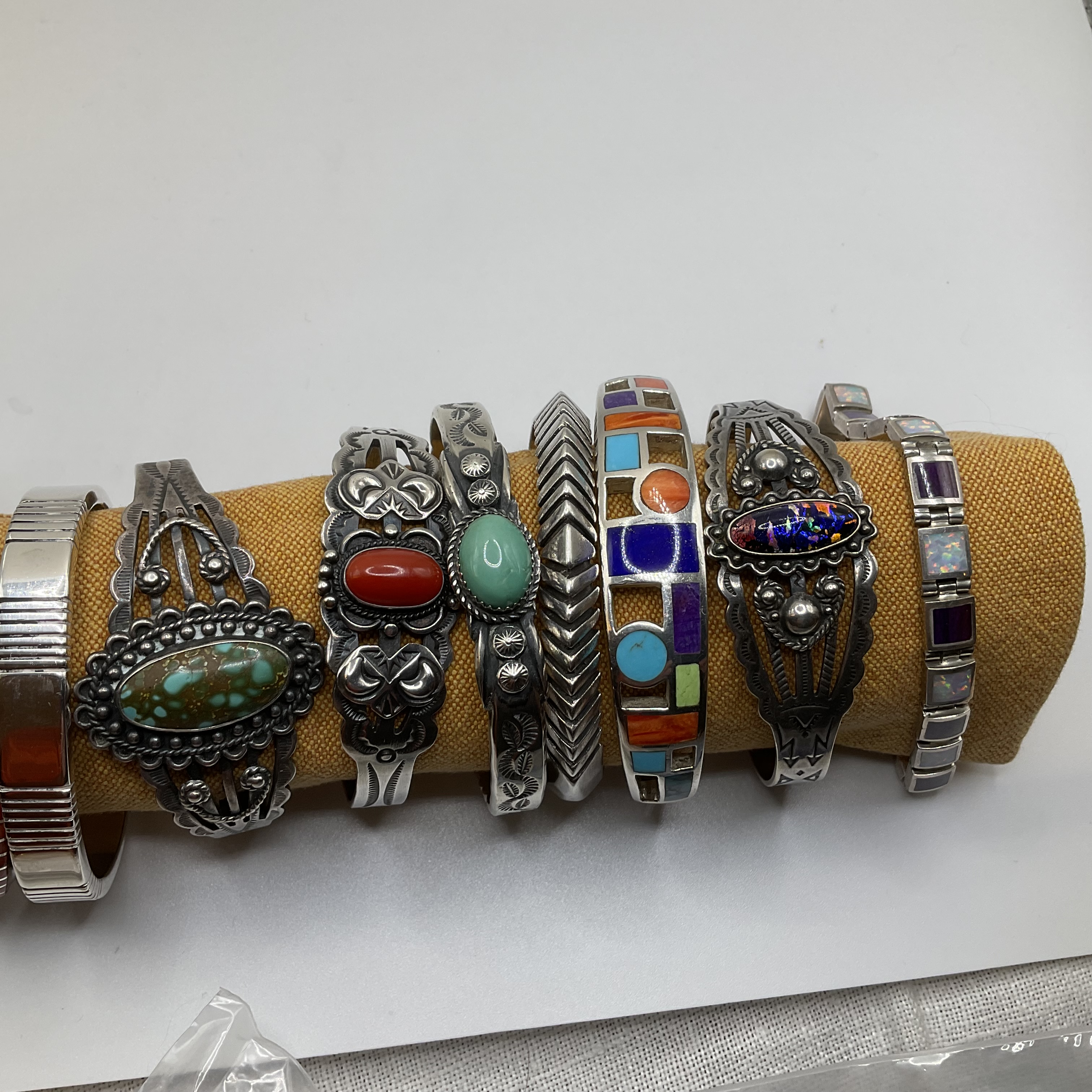 I must’ve tried on about 10 of Lyle Secatero’s bracelets at the Indian Market before I settled on one.