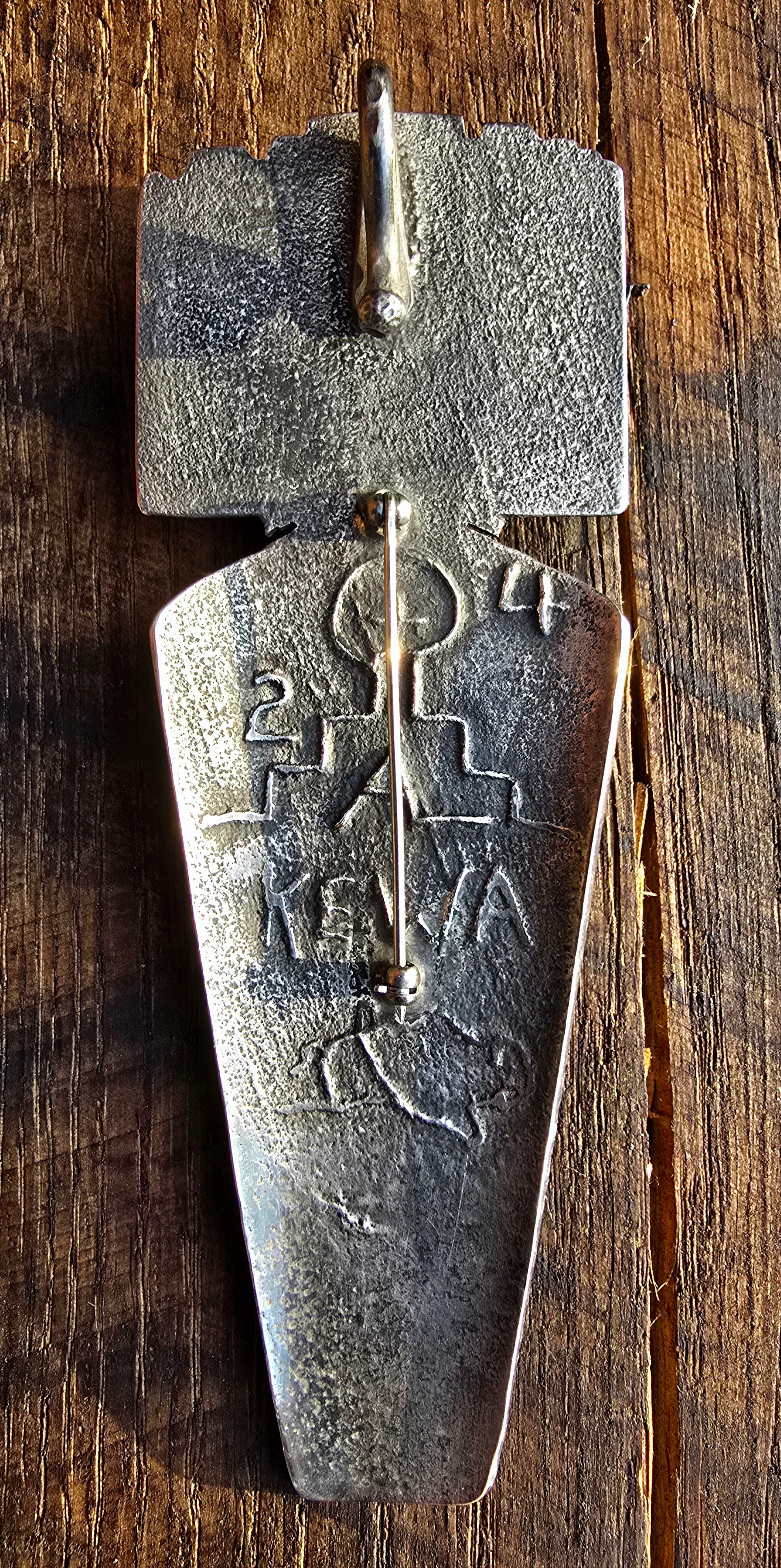I am an admirer of the Lovato’s work, and had a different Maiden pendant by Joel Pajarito (Mary Lovato’s grandson and Anthony Lovato’s son) picked out, but I recently found this pin/pendant and think it’s quite fitting for her first one. She has a beautiful set of Robert Johnson beads that she’ll be able to hang it from.