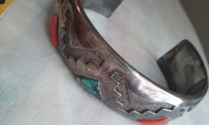 This is a Navajo bracelet. If we had this piece it would retail around $180 - $220. Hope this information helps and thank you for sharing.