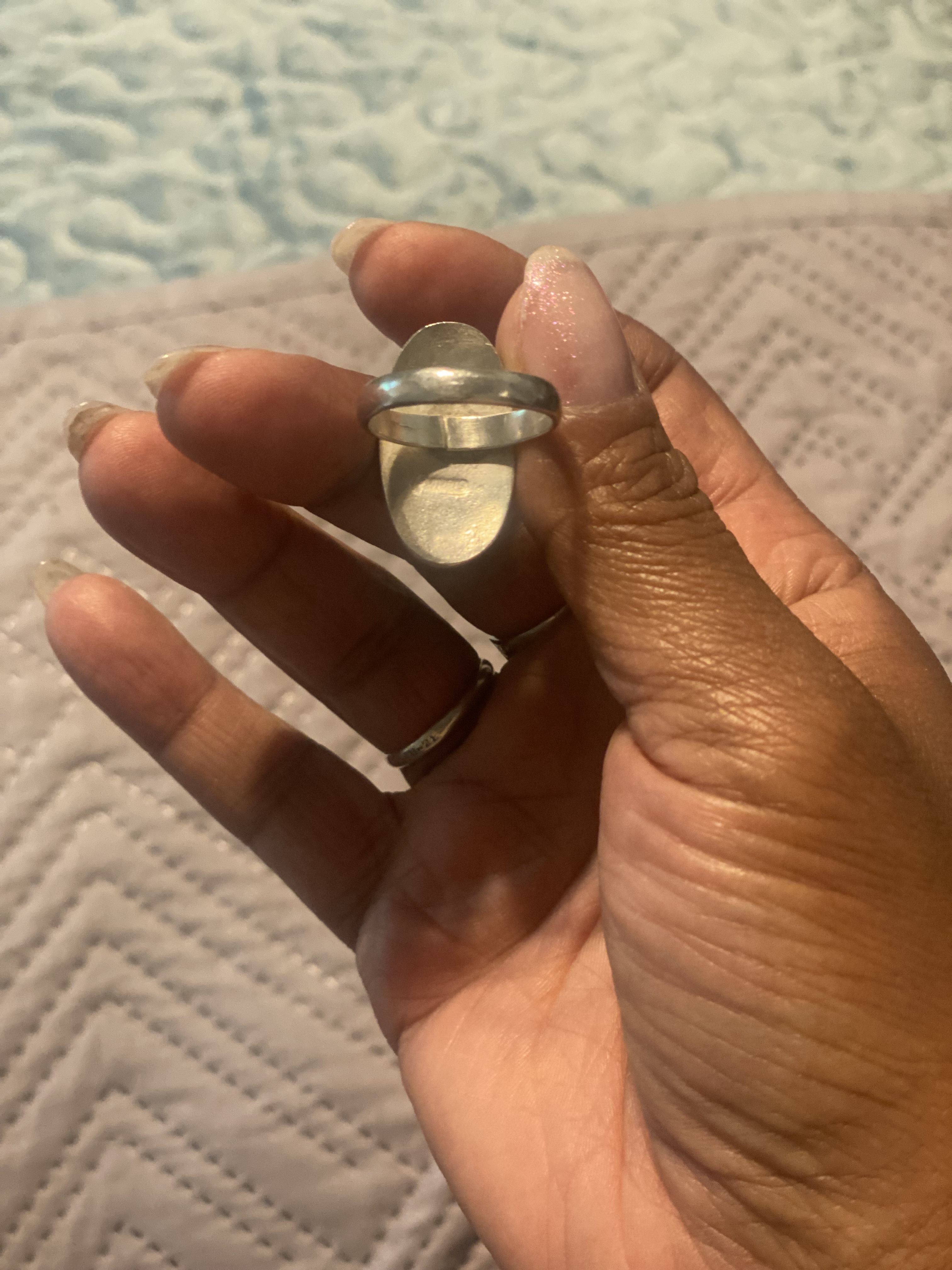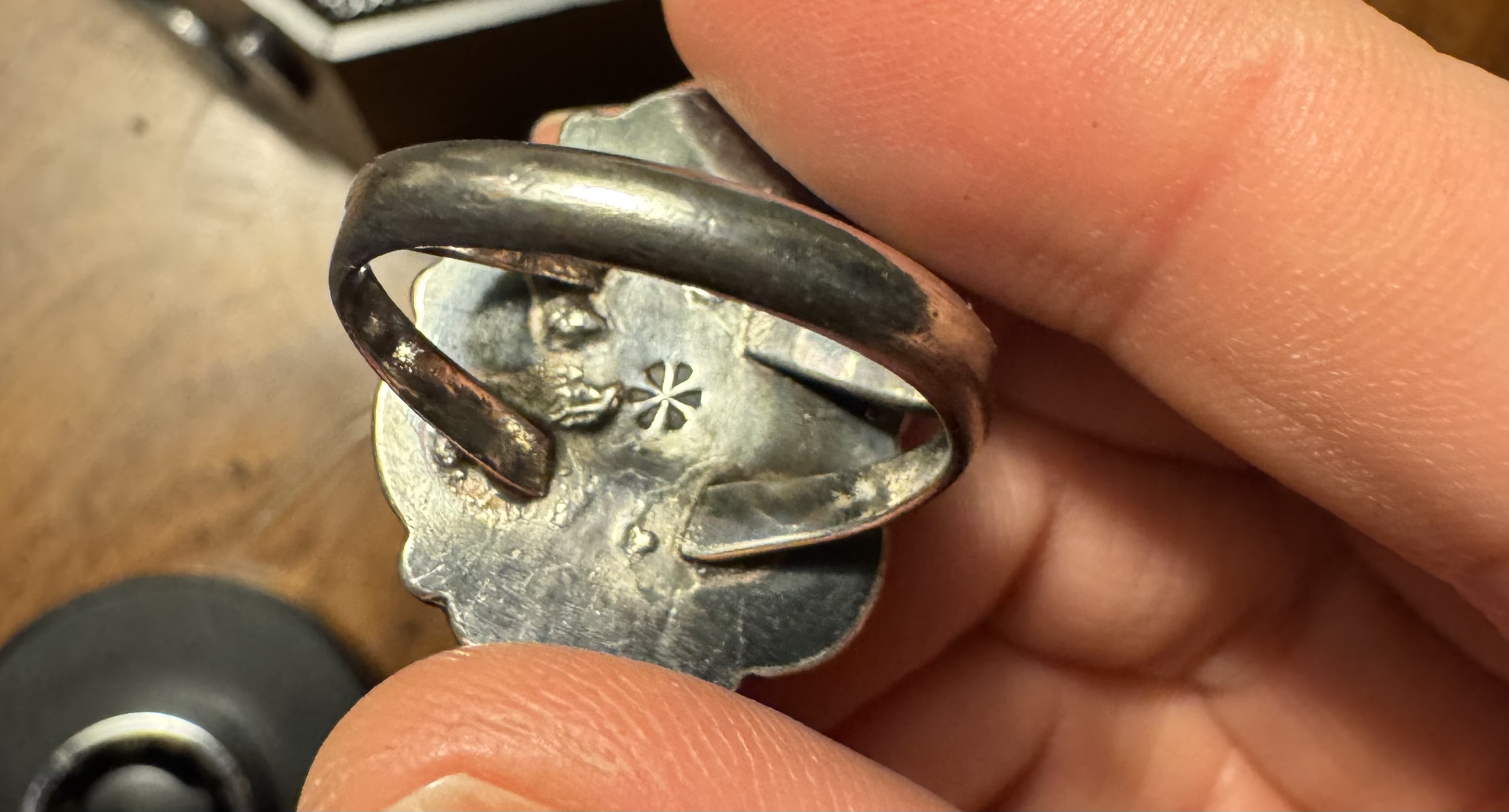 If you can, please try to include a clear photo of the hallmark on the inside of the ring band – not the .925 part, but the initials. Good luck, I know it can be tricky to photograph!