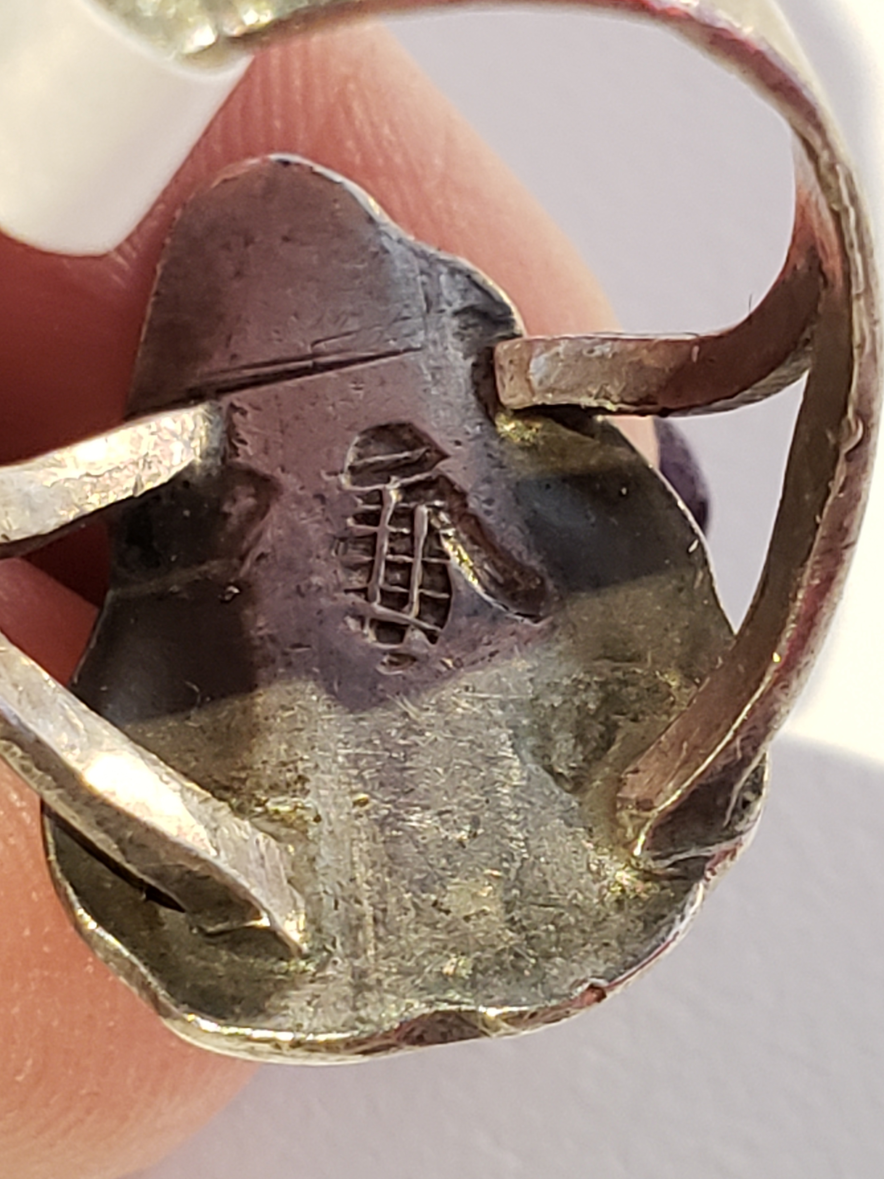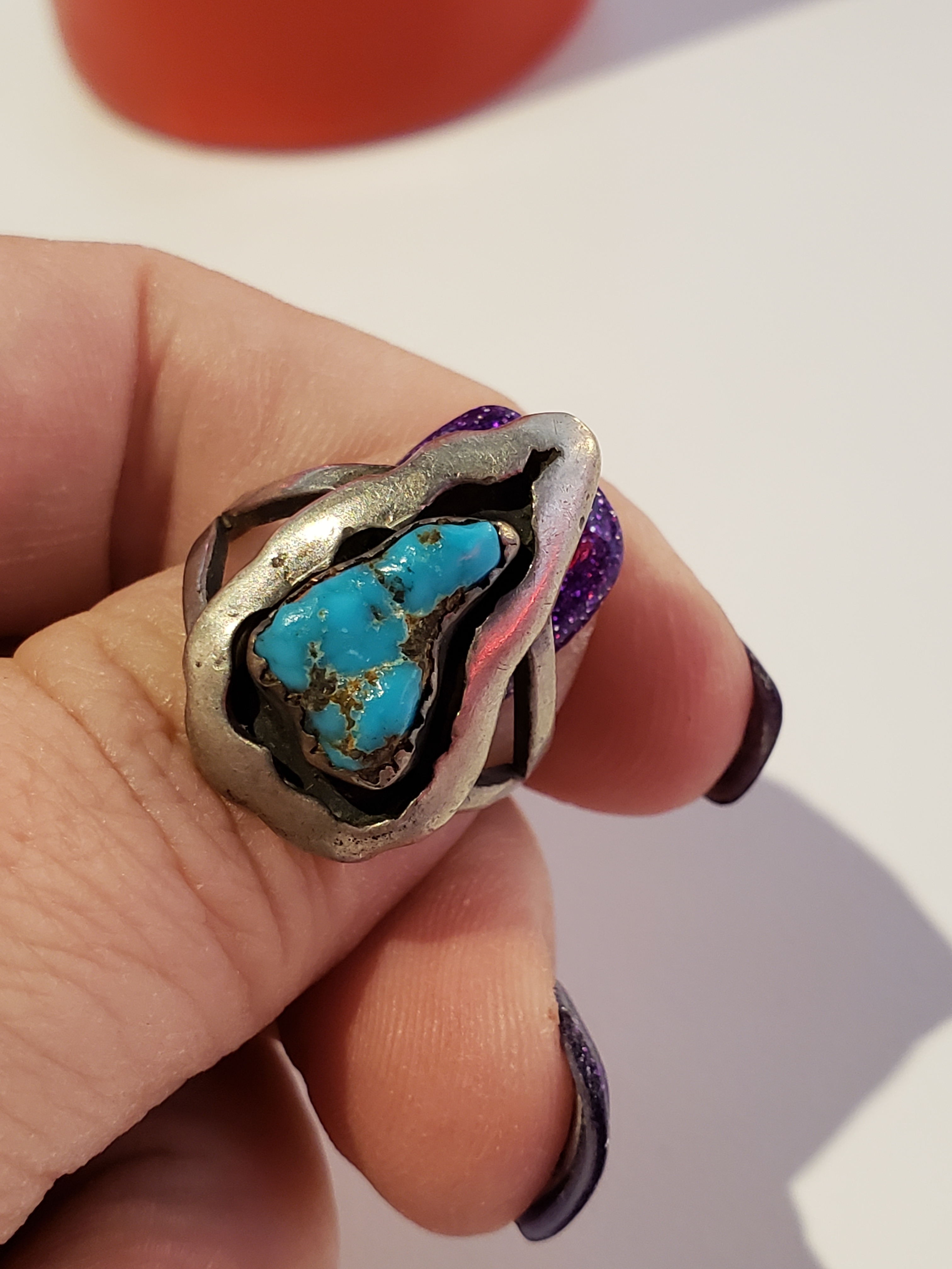 That brings me to this ring, that I affectionately call “shark tooth”. I can find plenty of turquoise cuffs by Pooyouma, but rings I only see the overlays.