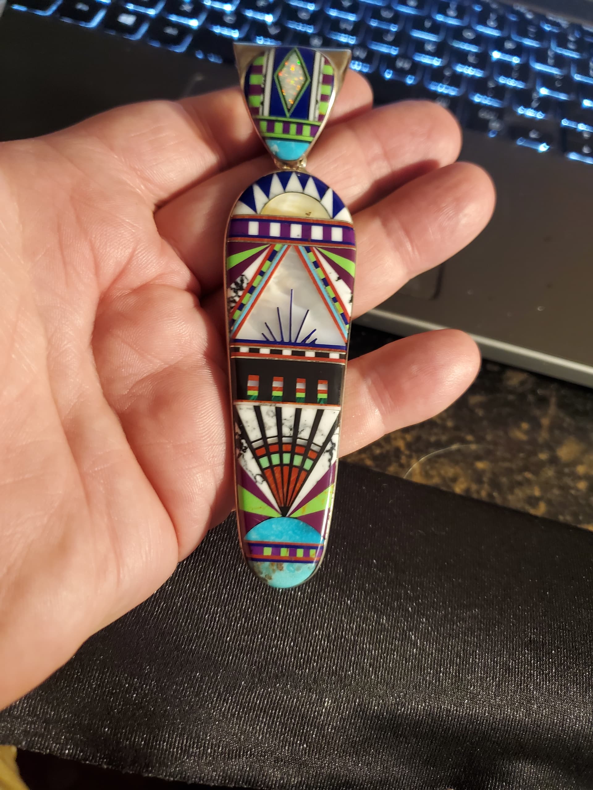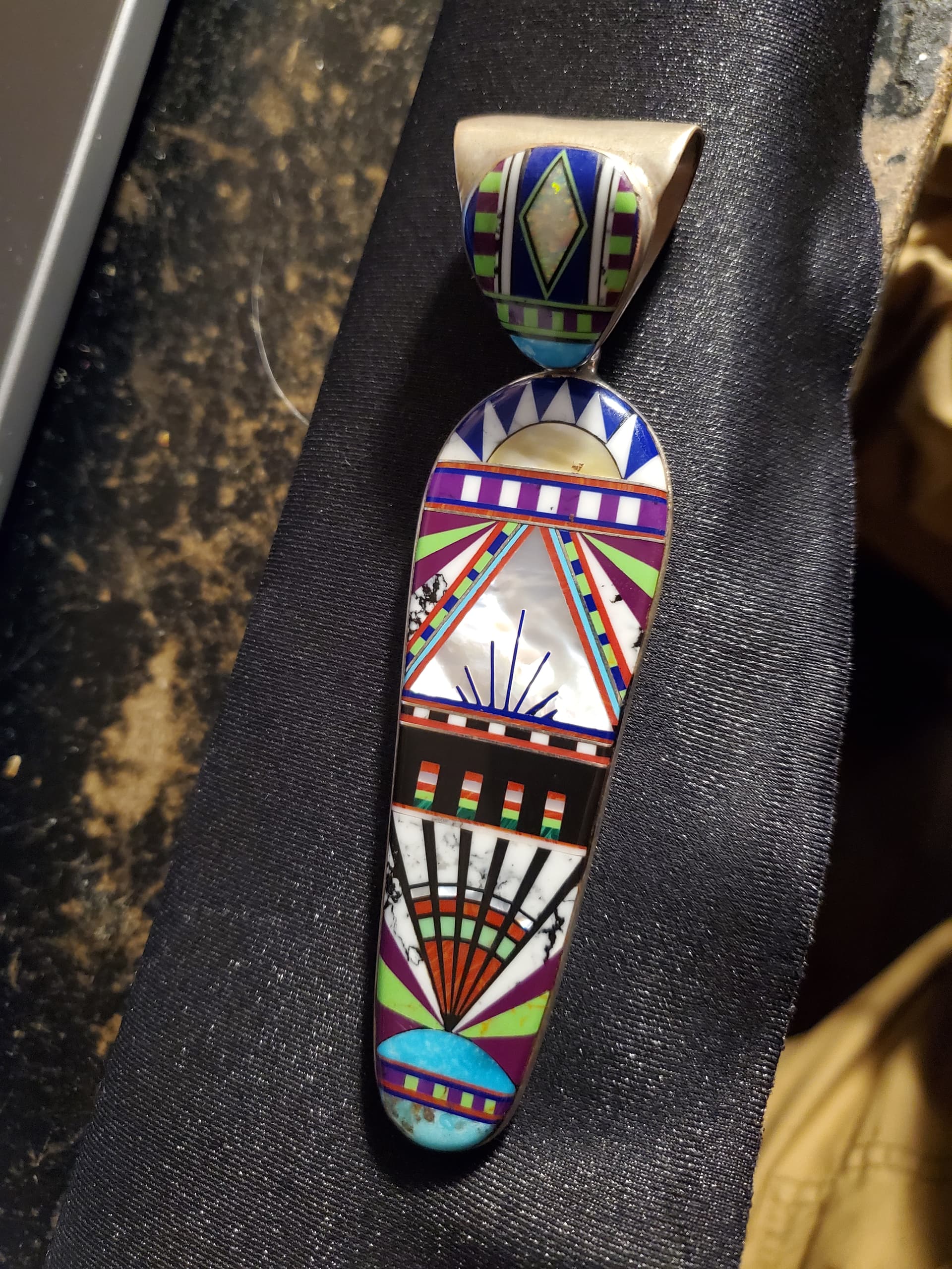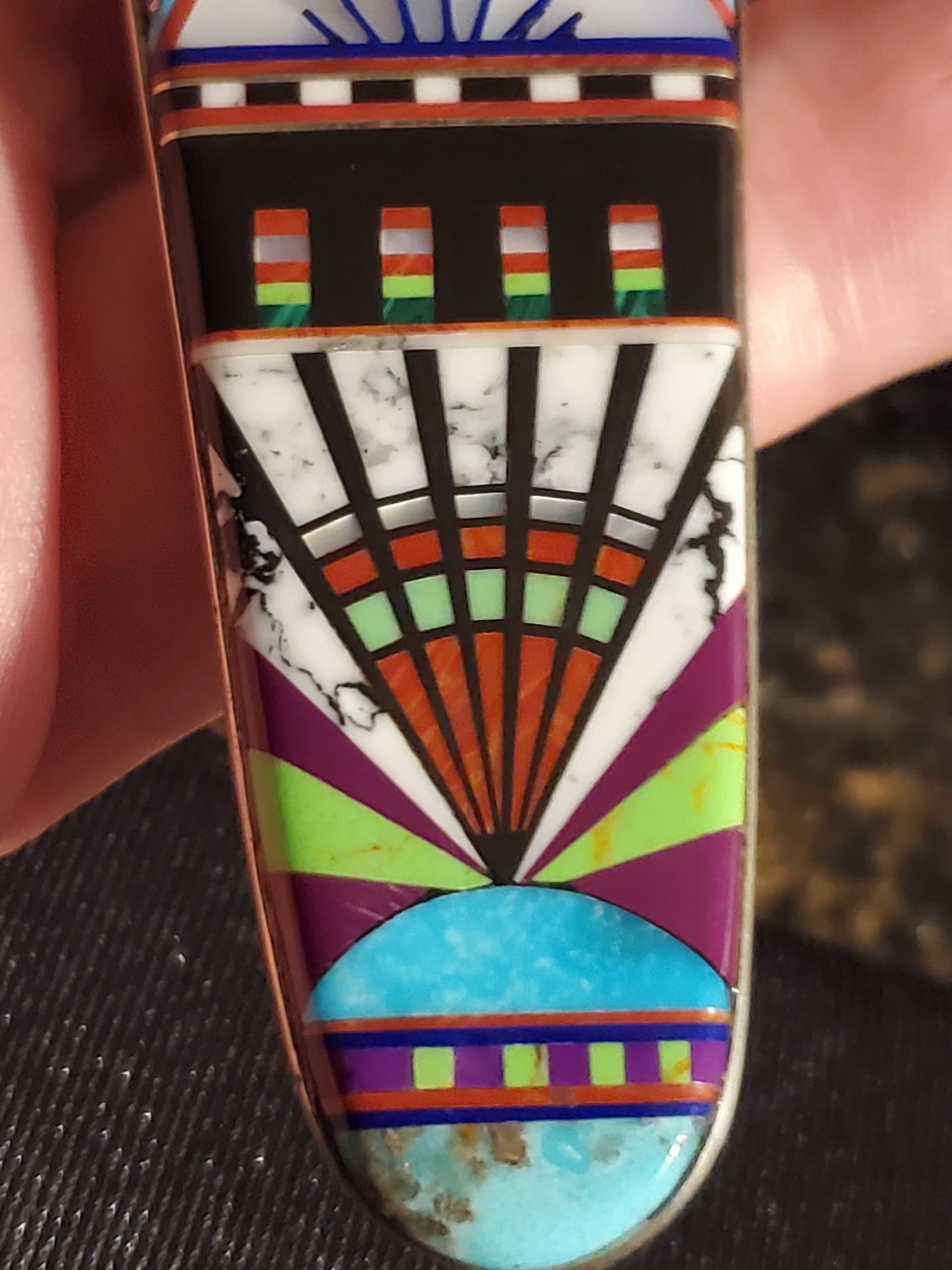 Kay Johnson is not Native and HE and his son make the southwestern style jewelry. They seem to do quality work but I’ve never seen this type of inlay attributed to them.