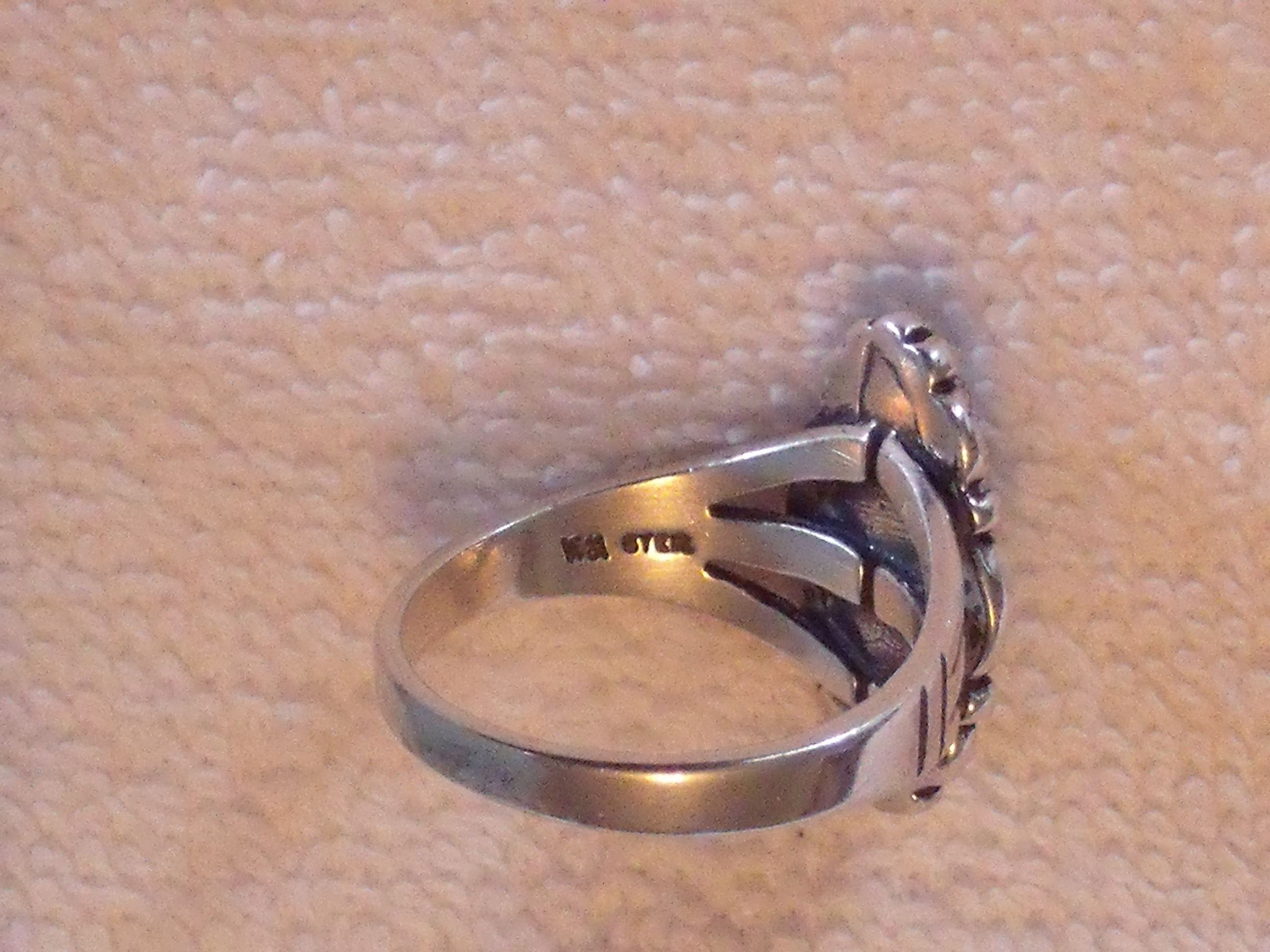 Thanks BDL, I believe your on to something there. Makes sense if A Maisel was a âWâ Maisel and marked his goods WM (and this ring looks like a little higher detail than most others like it.). Sis said use mag. glass so what better than a 40X loupe? You can actually see the white mist (past the reflection). Does this help ID the stone or make a difference in the price? Do I look for an appraisal here or go to the other category? Thanks everyone.