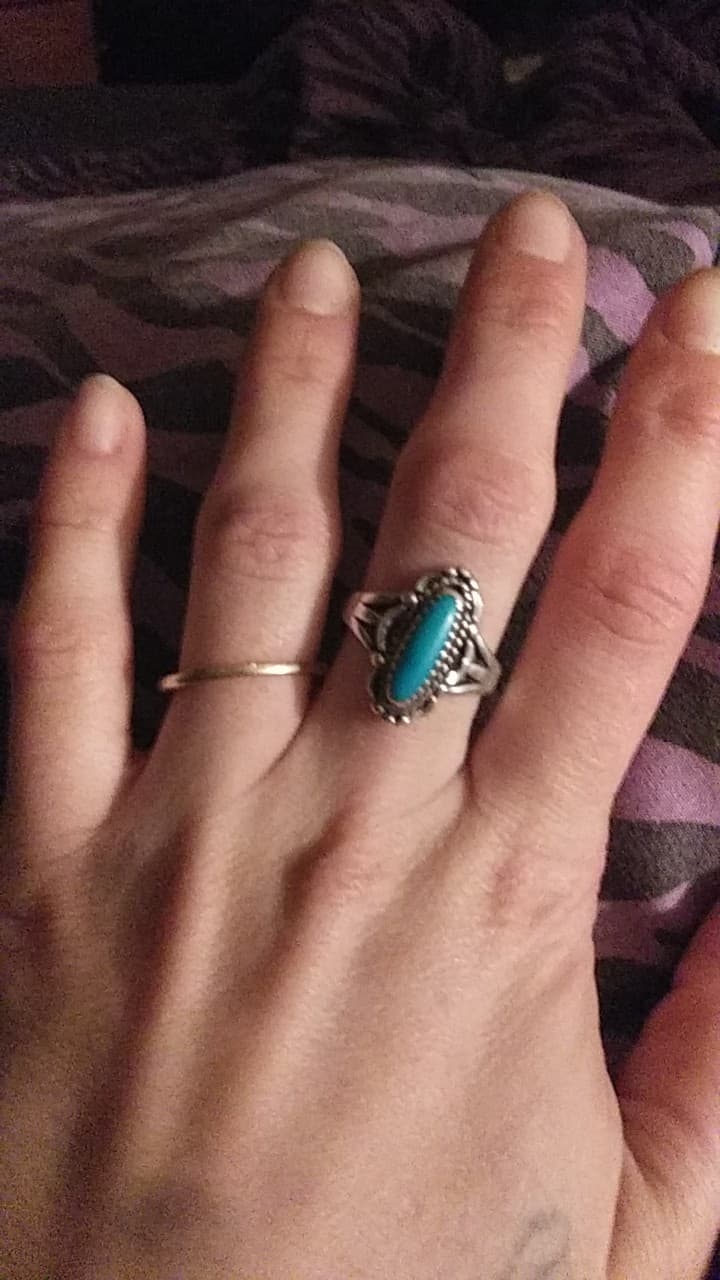 Thank you for noticing, tempted to wear it myself! The other jewelry in this lot came from were between the 30âs and 70âs. I didnât have a clue when or who this was from. Wish I could get a deeper pic look into the turquoise, there is the most beautiful misty white cloud that seems to float in it. Iâll try some kind of magnification (OH Yeah! My sis has a Masters in Photography, I bet she could help. Iâll be back. Thank you. Jim