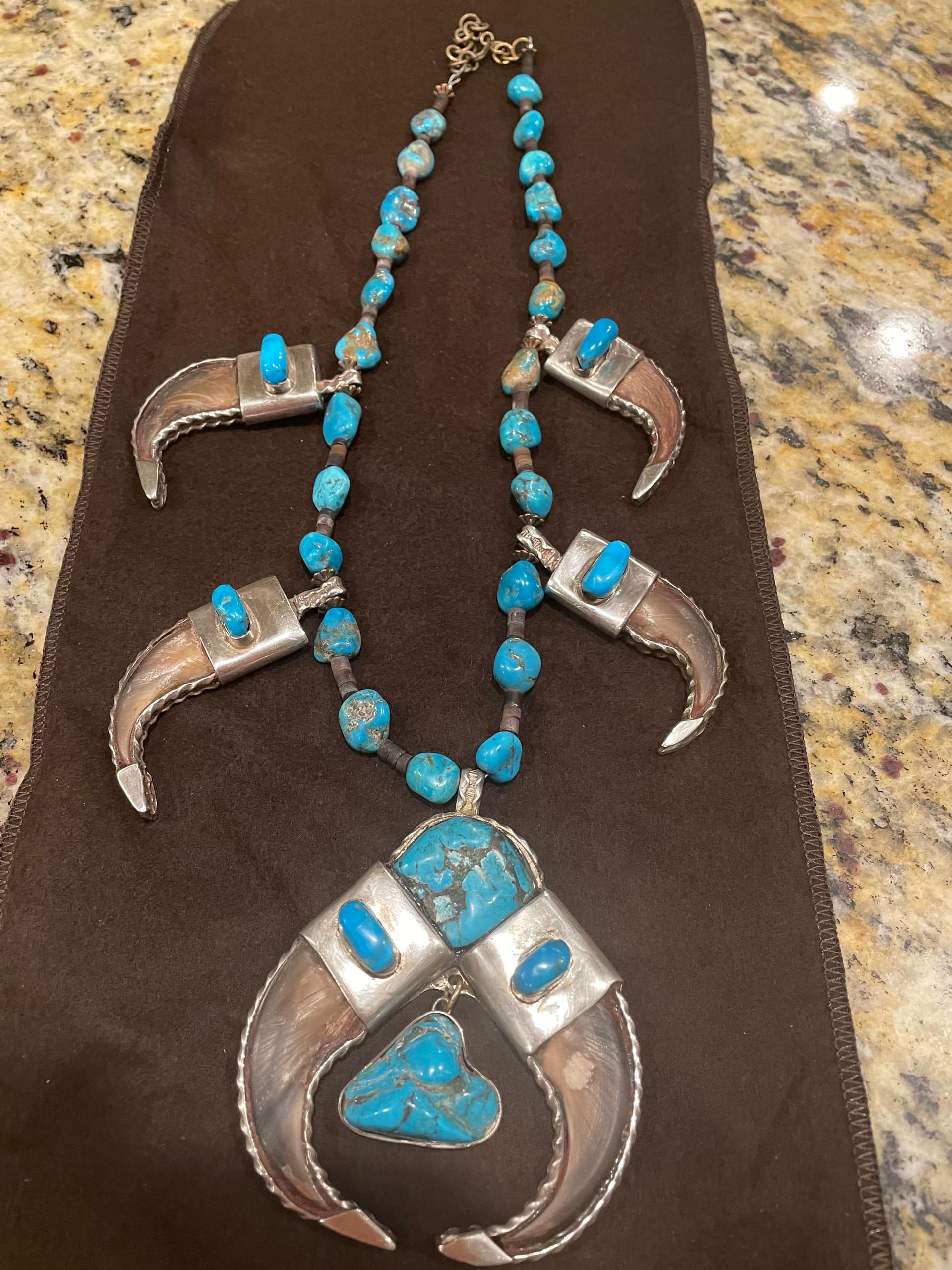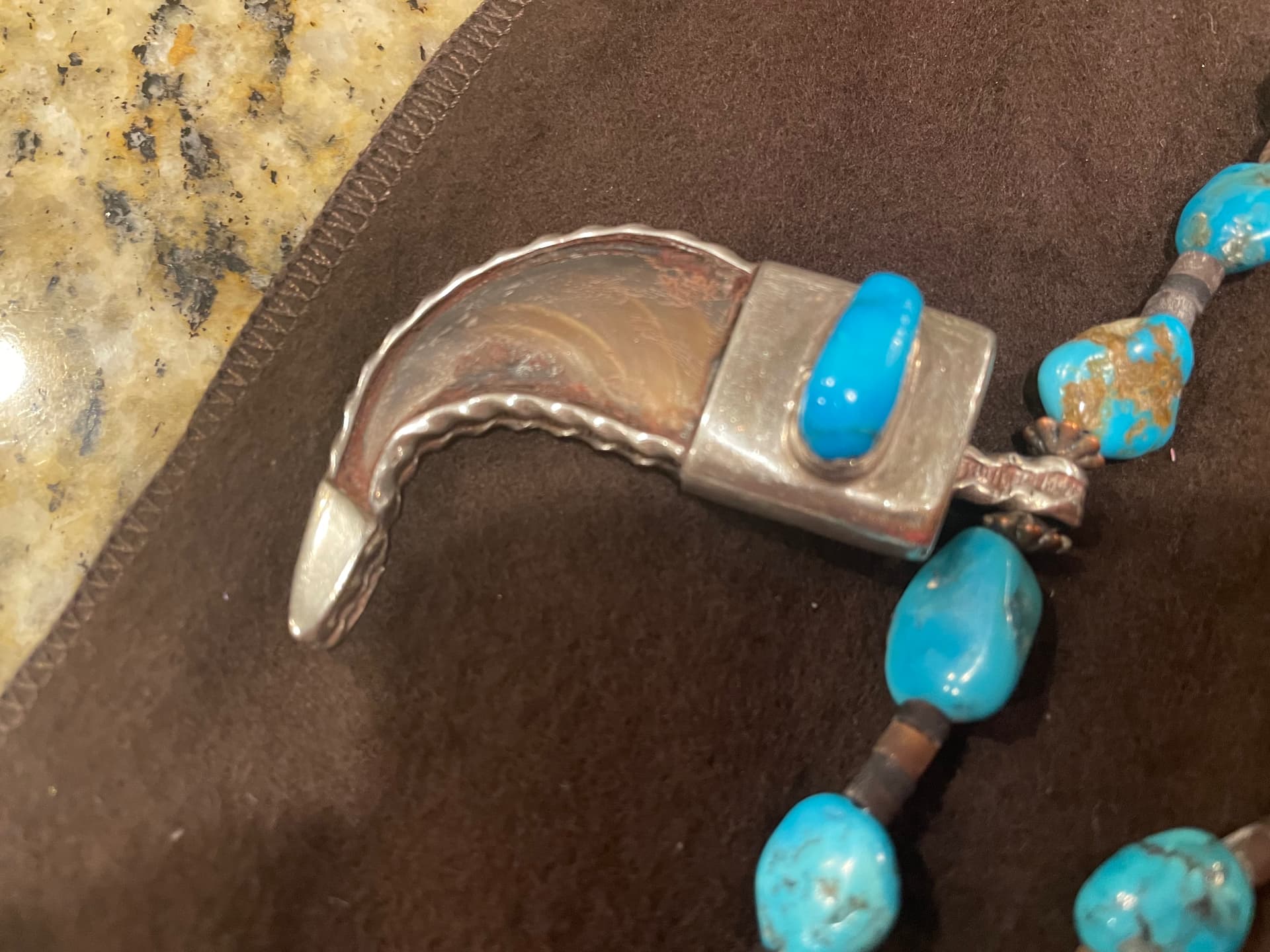 Anyone give me info on this necklace unmarked what are the brown beads and what kind of turquoise . Thanks