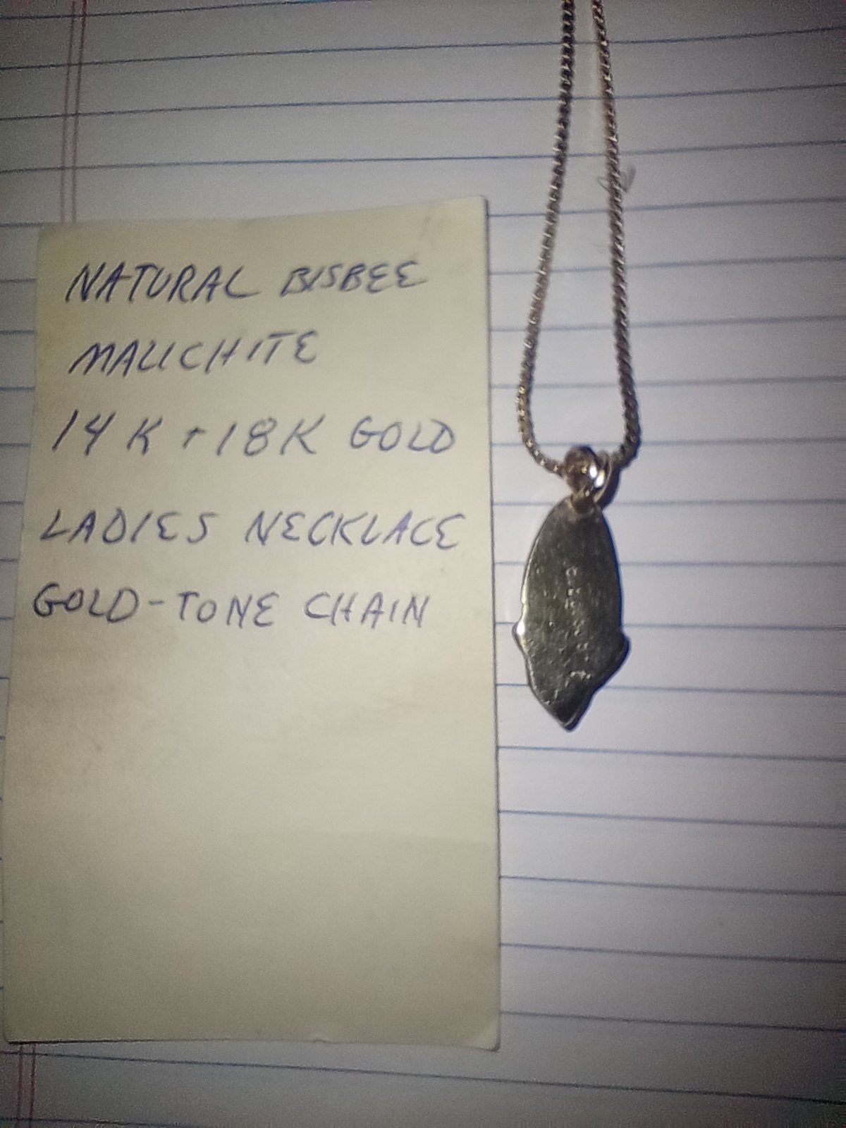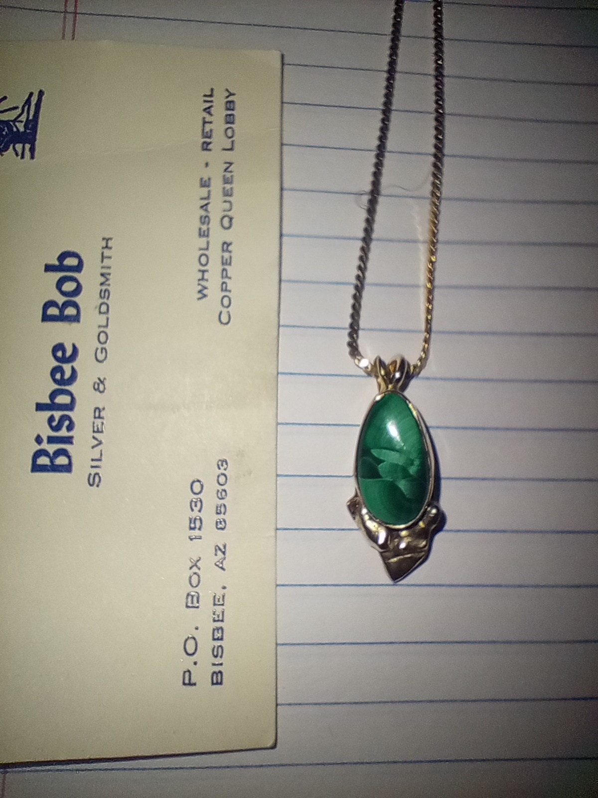 Trying to research Bisbee Bob and came upon this thread…I see a lot of turquoise and sterling pieces. But I was gifted from my grandmother’s estate this malachite and gold pendant