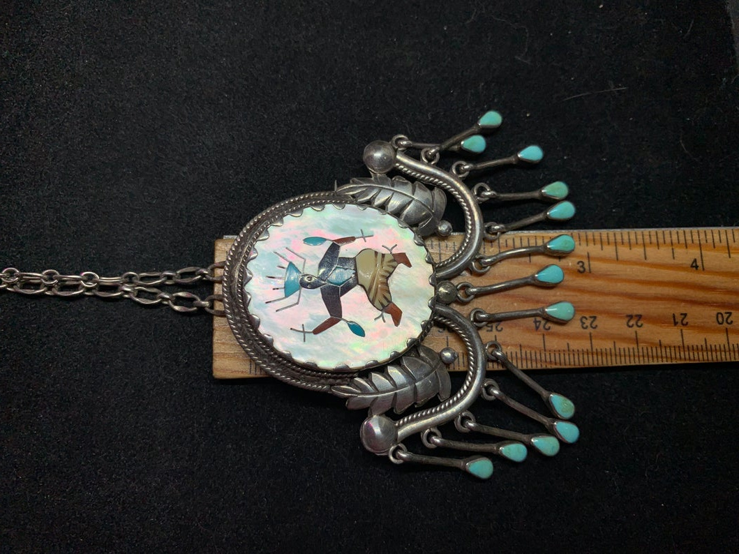 Here is another one I’m excited about. It’s from member @Christibo aka Estimated Profit on Etsy. I don’t expect to have possession of it until next week. It’s a pendant by Leonard & Edith Lonjose. I’m borrowing a few of Chris’ pics until I can take some of my own. It weighs 45 g. with the chain. I was just excited and had to show someone, even though it’s the middle of the night.