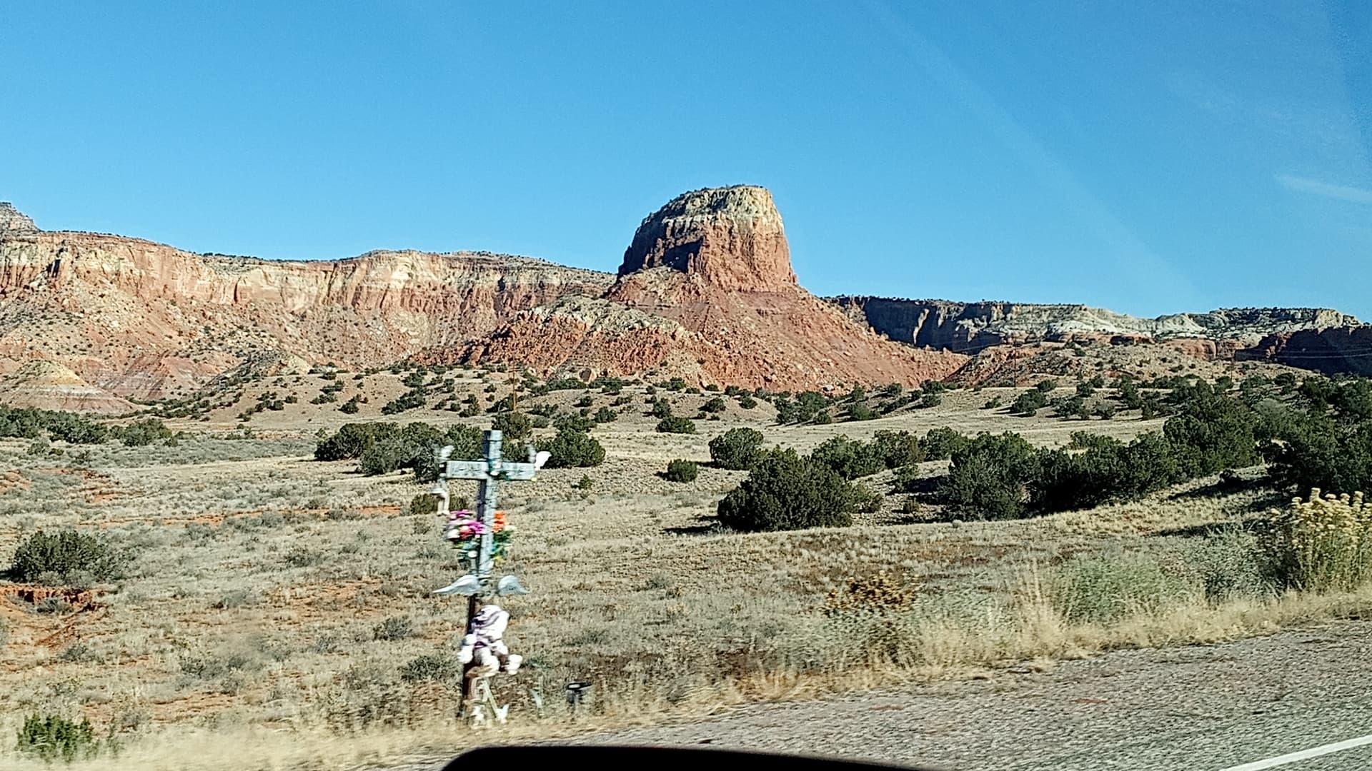 Descansos (roadside memorials) are all over NM. Lots of car fatalities, unfortunately.