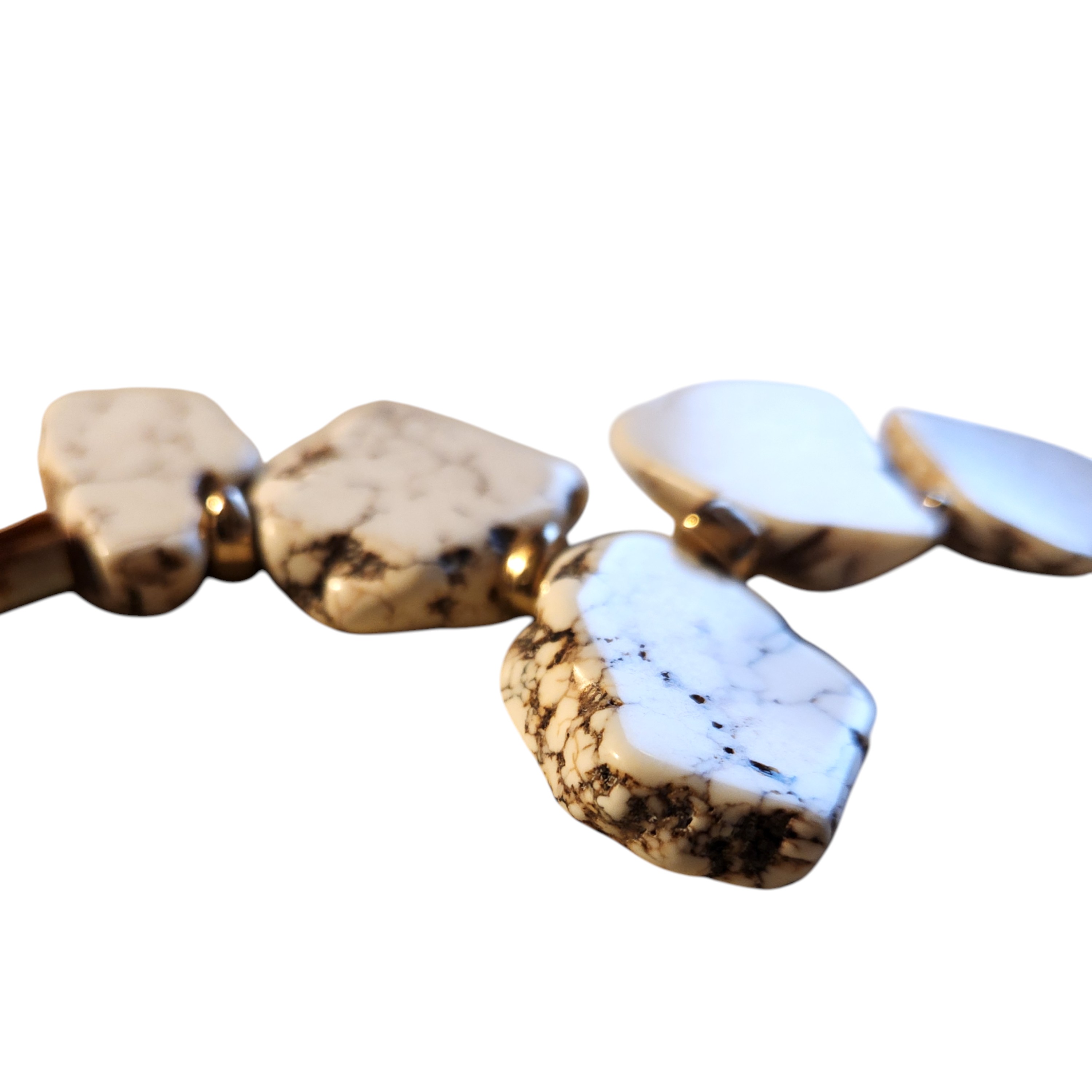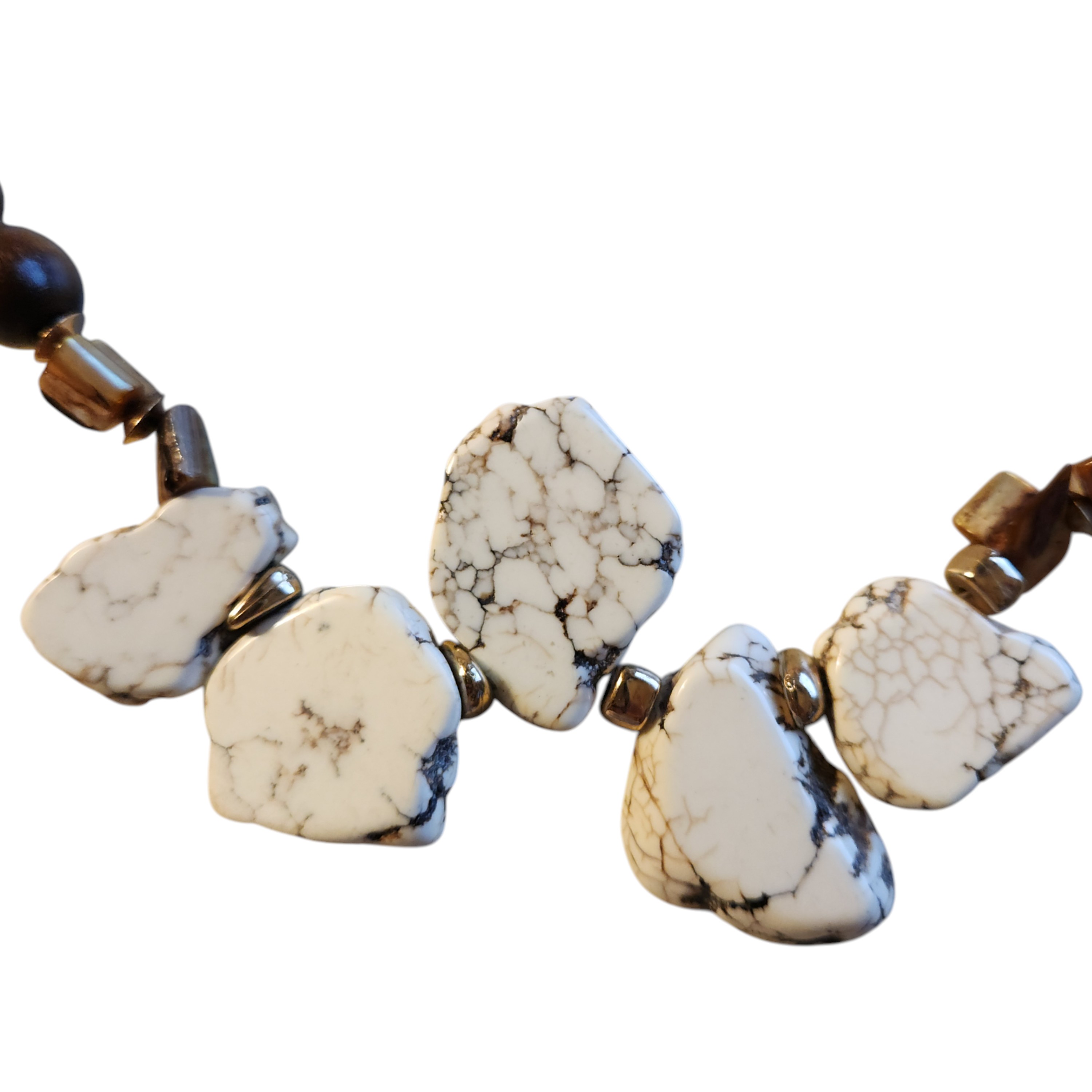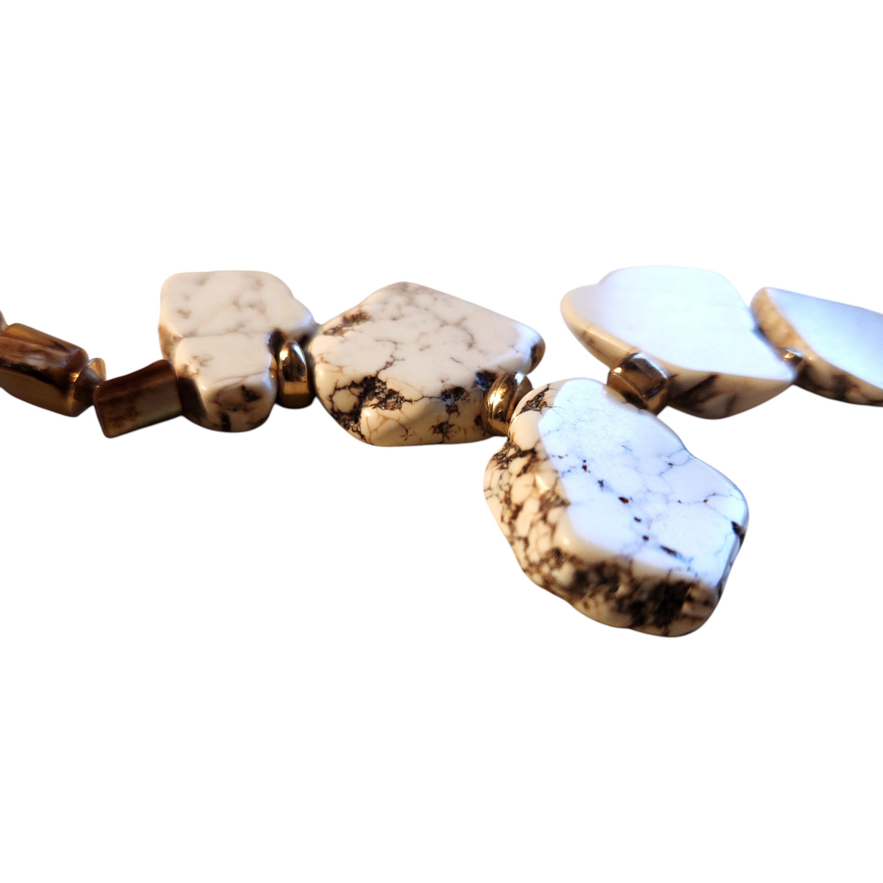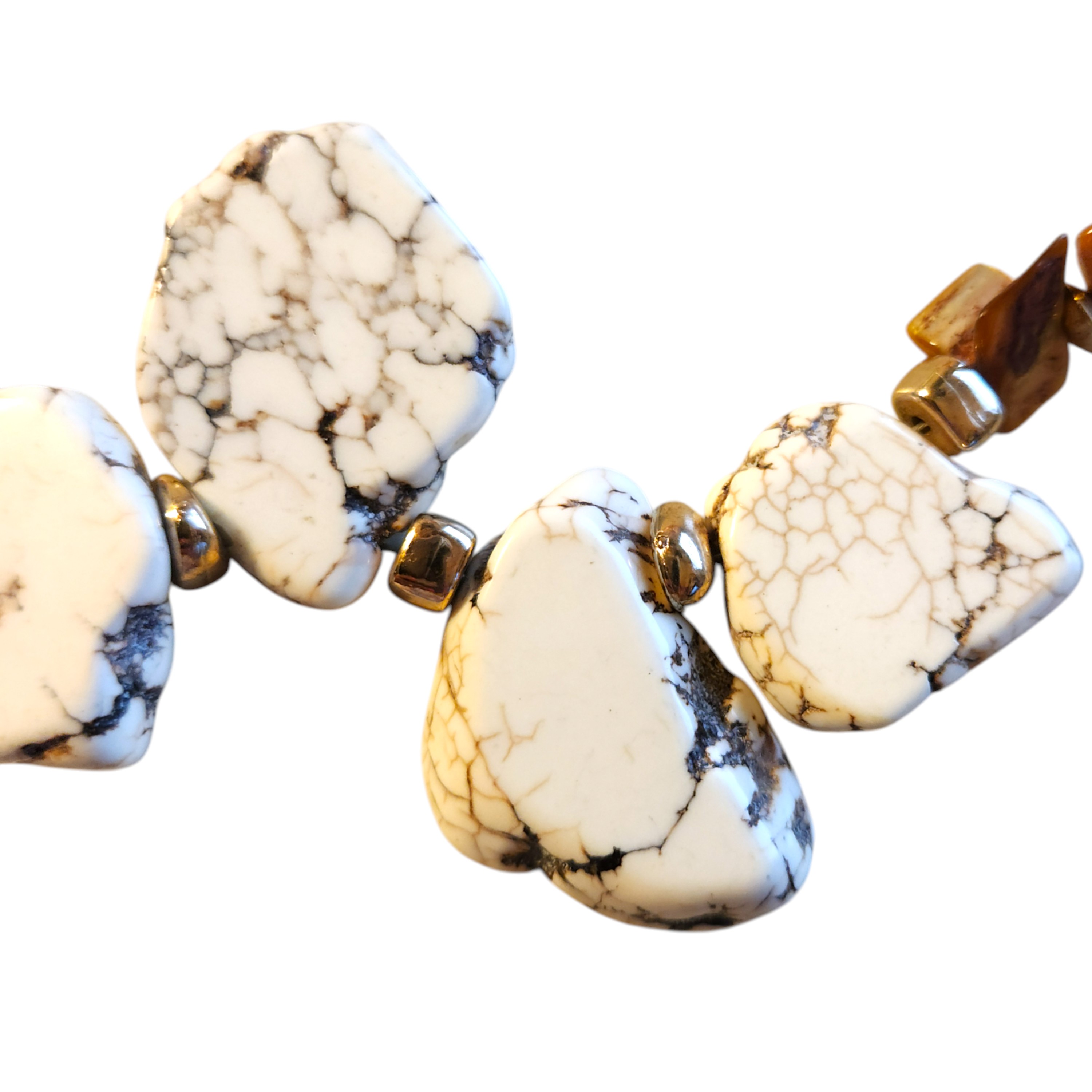 that’s most likely howlite. “White Buffalo” from the Ottesons has a very different look and form, frequently chunkier or heavier black ribbon matrix. Wild horse magnesite is sometimes called white turquoise, but often has more brownish matrix.