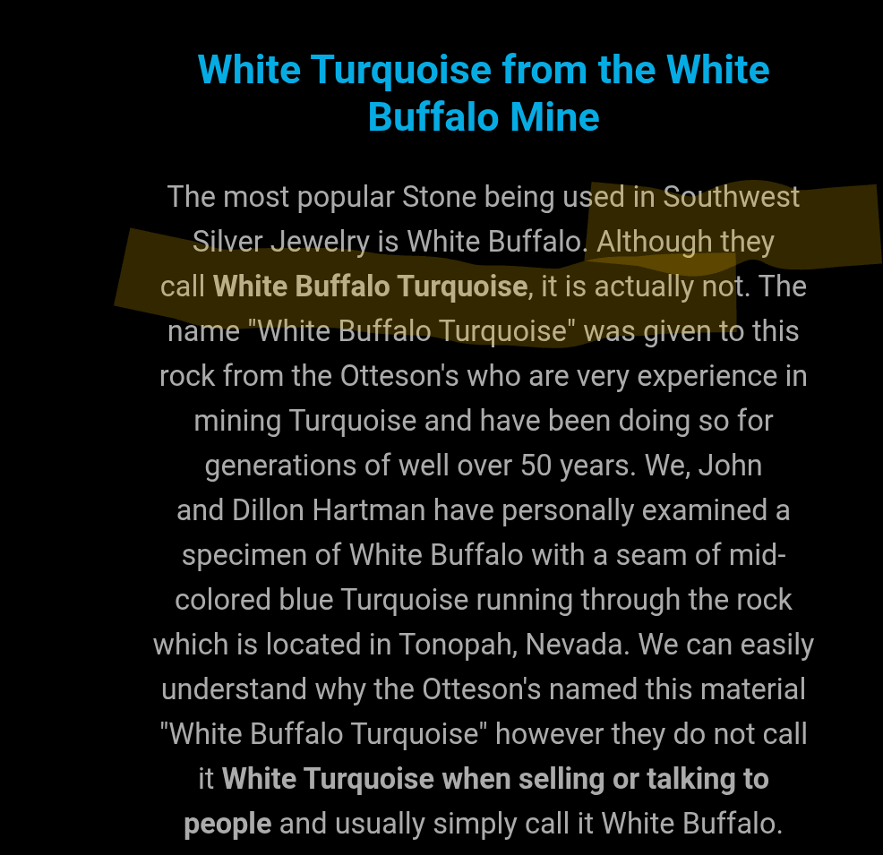 Edit: after reading the below article, apparently there are legit sellers that may refer to it as White Buffalo turquoise, and don’t mean it wrongly, but I still find it misleading.