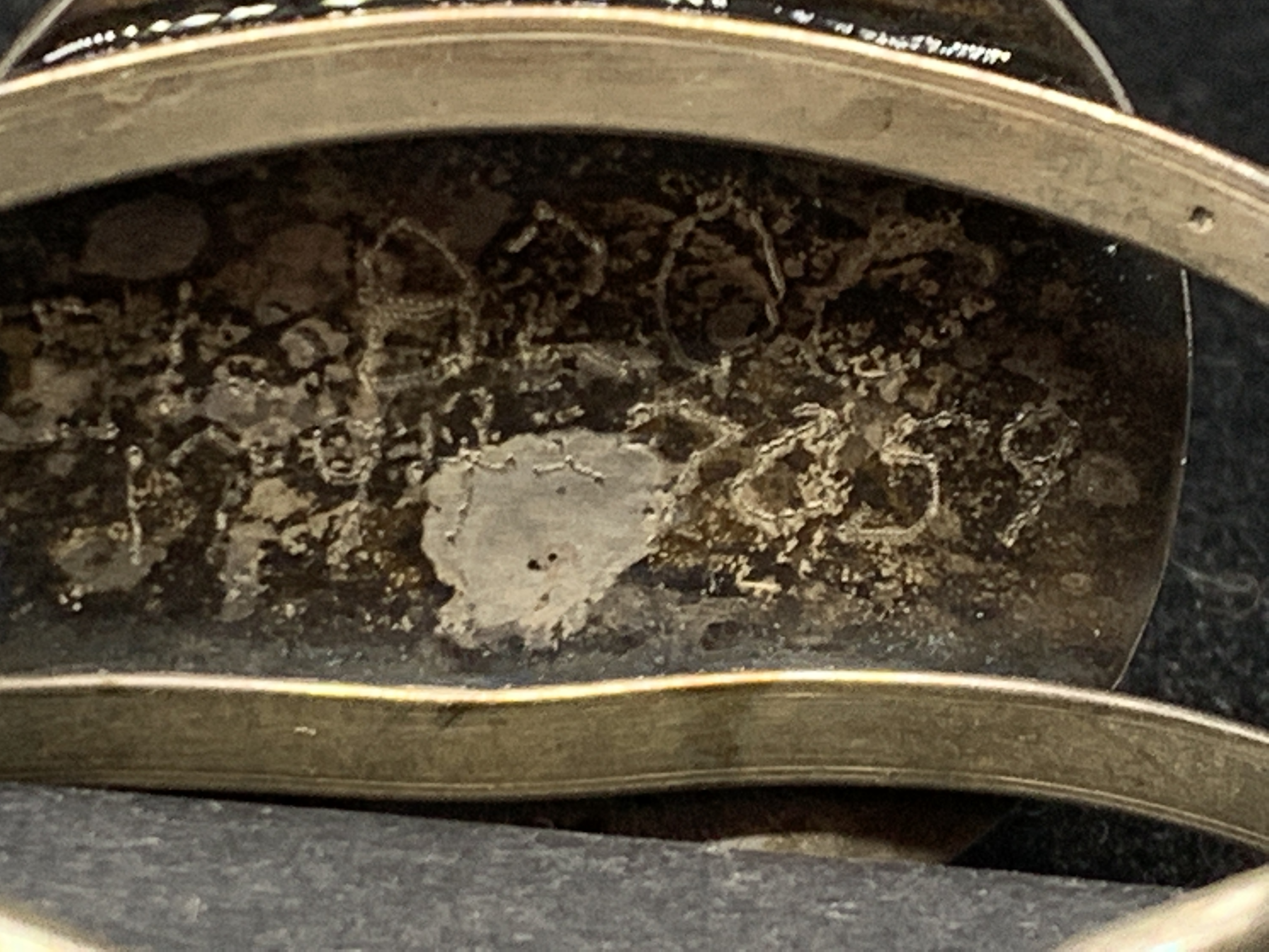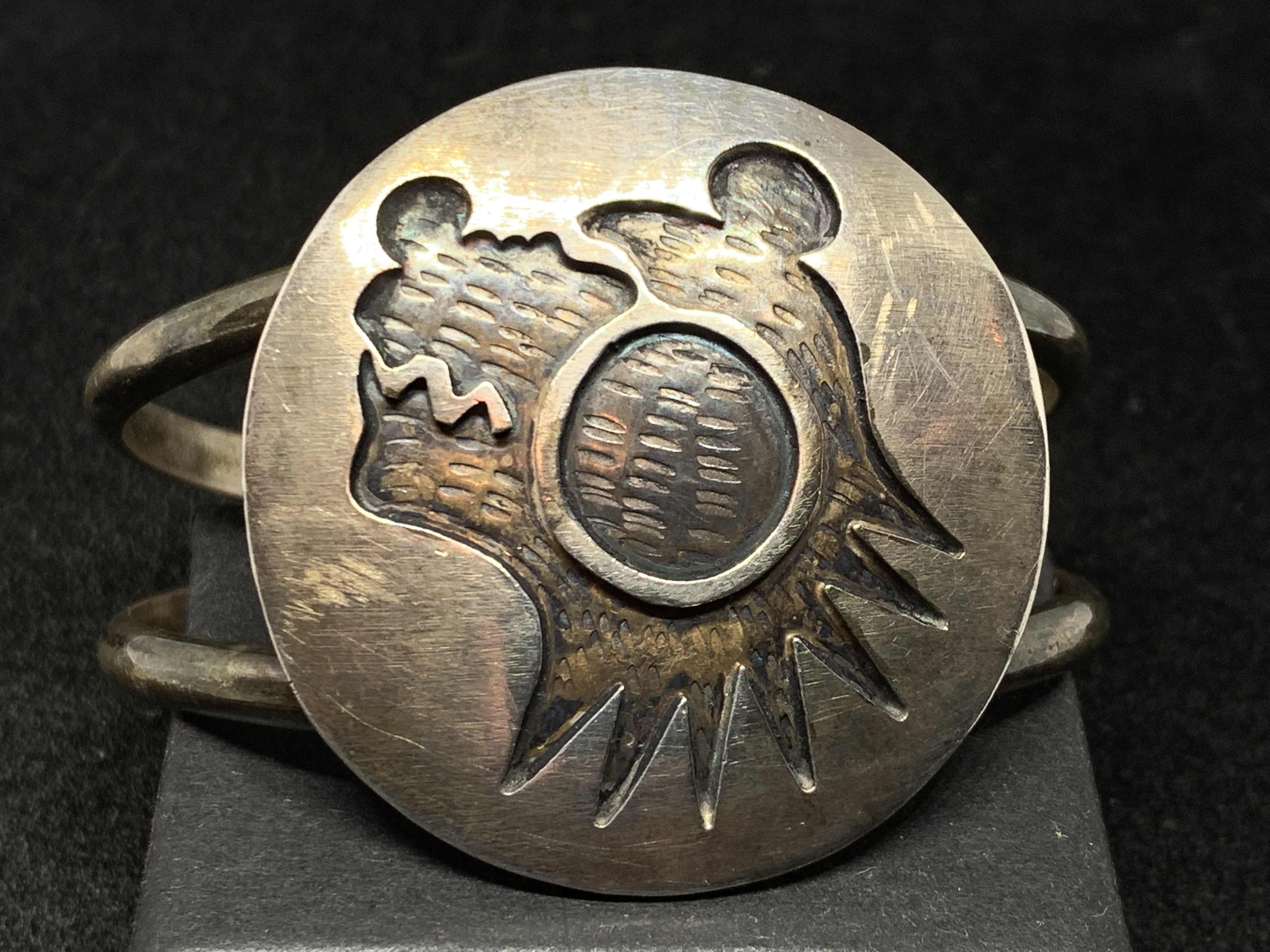 I need a bit of help with this cuff. The image is one I am unfamiliar with. Is it Navajo or Zuni?? Is it a bear or something else? Any help would be much appreciated!