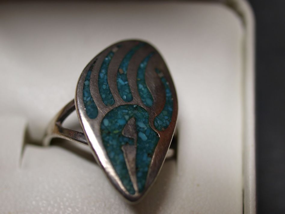 A handful of artist use a JP hallmark. This is a Navajo ring and the style is chip inlay. Most likely it is from the 1980s. So, I will give you the Navajo names to research.
