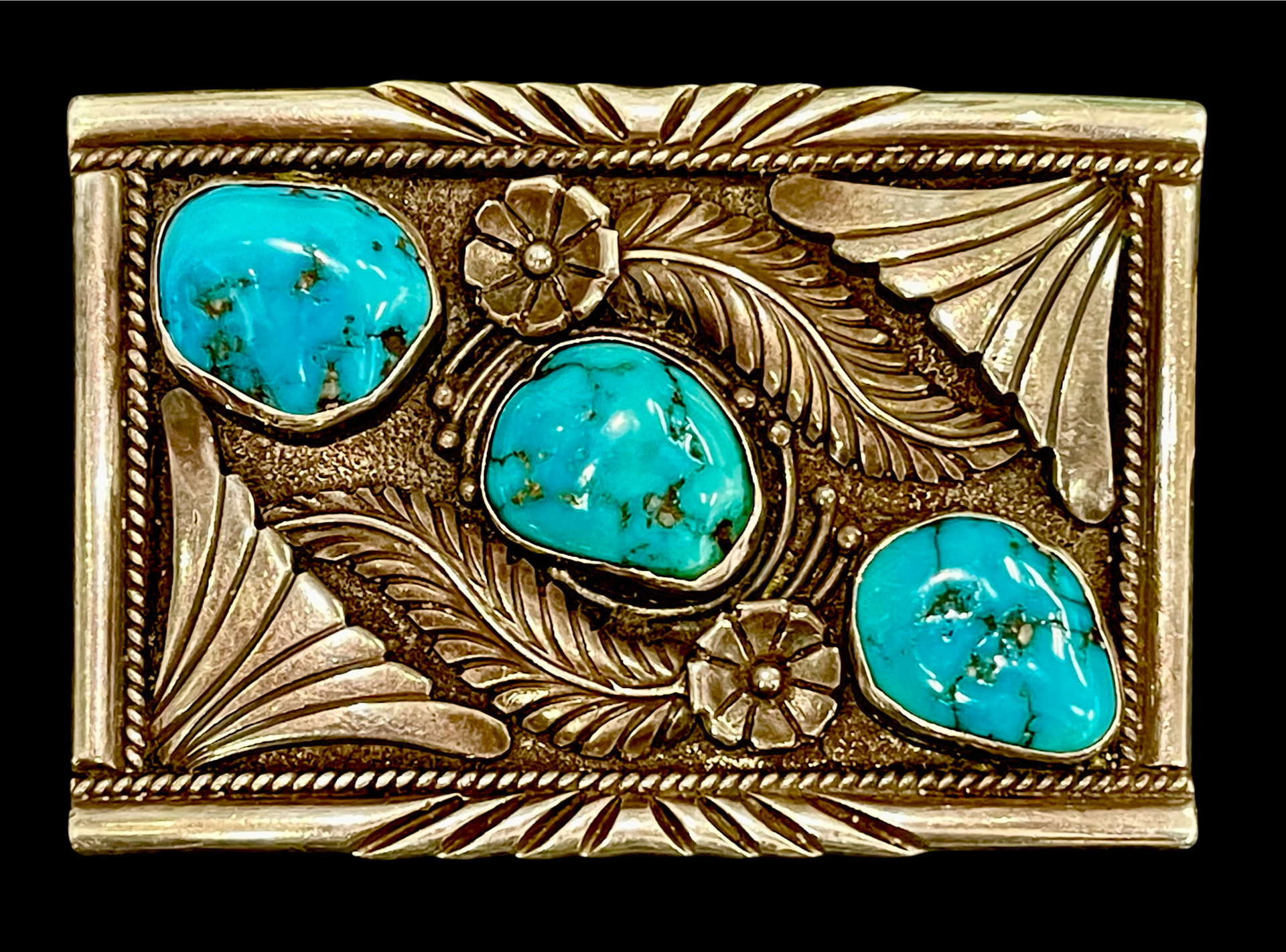 @chamekke This is a super nice belt buckle and it appears to be well-crafted. I especially like the balanced design. The turquoise stones look good, too. I live in a turquoise desert also so I’m happy for you in finding this terrific buckle!