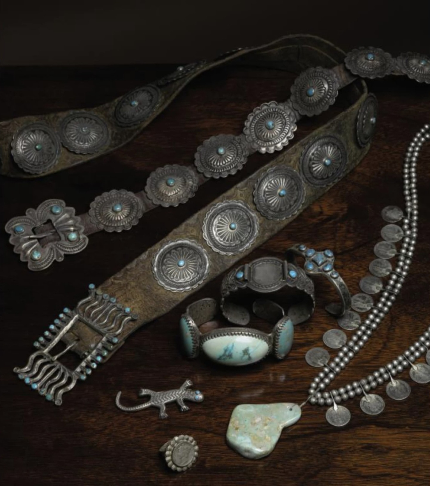 These are great, Aaron. I especially like the rectangular buckle with what looks like beautifully cut natural Persian or (or possibly Kingman) cabs.