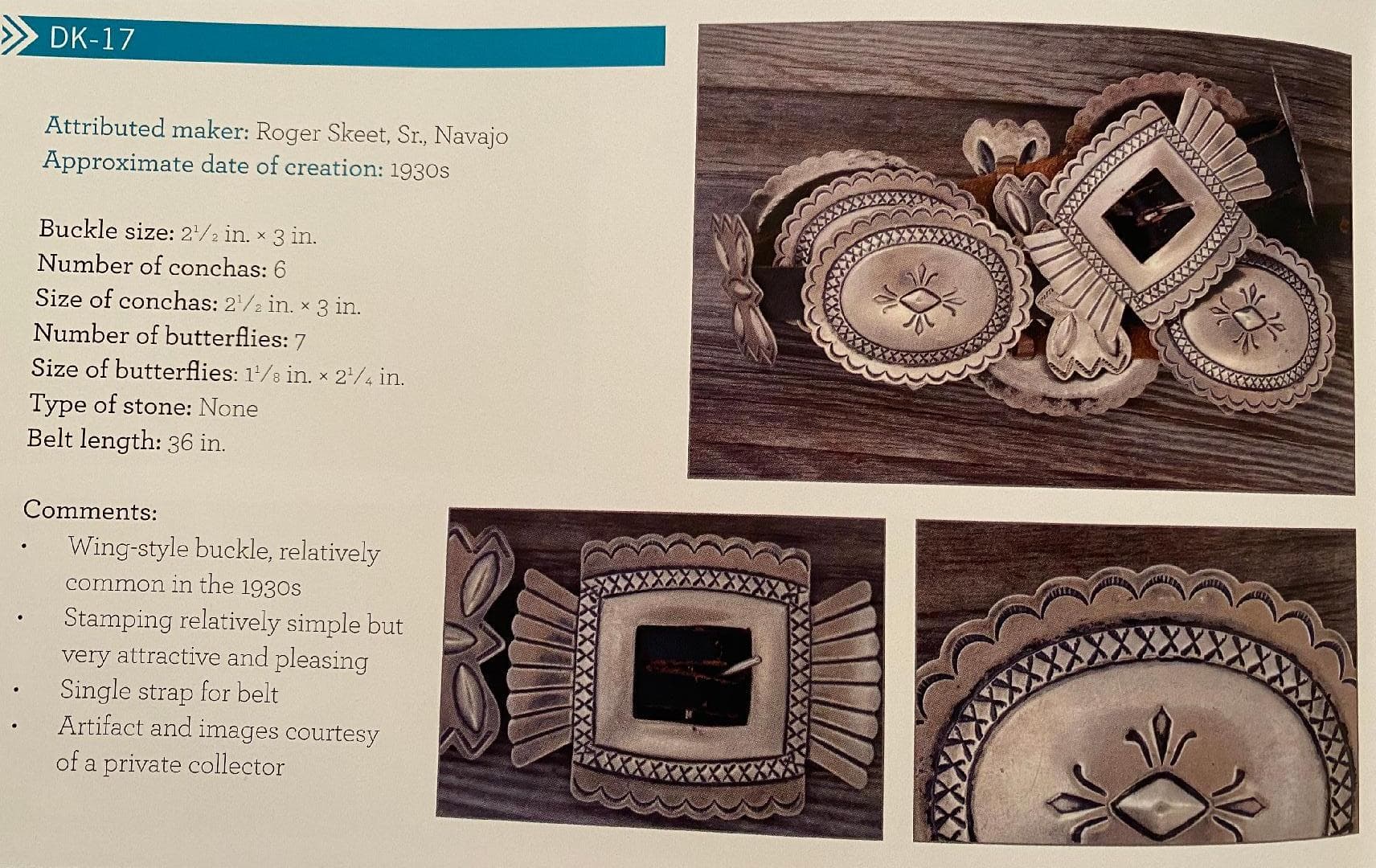 Thanks @TAH! Some time ago when I tried to research the belt, I saw one with the wing-style buckle similar to the one in the book. My buckle is more simple, but you are right about the similarities in the conchos… and the butterfly’s are also quite similar! Fun stuff; thanks again!