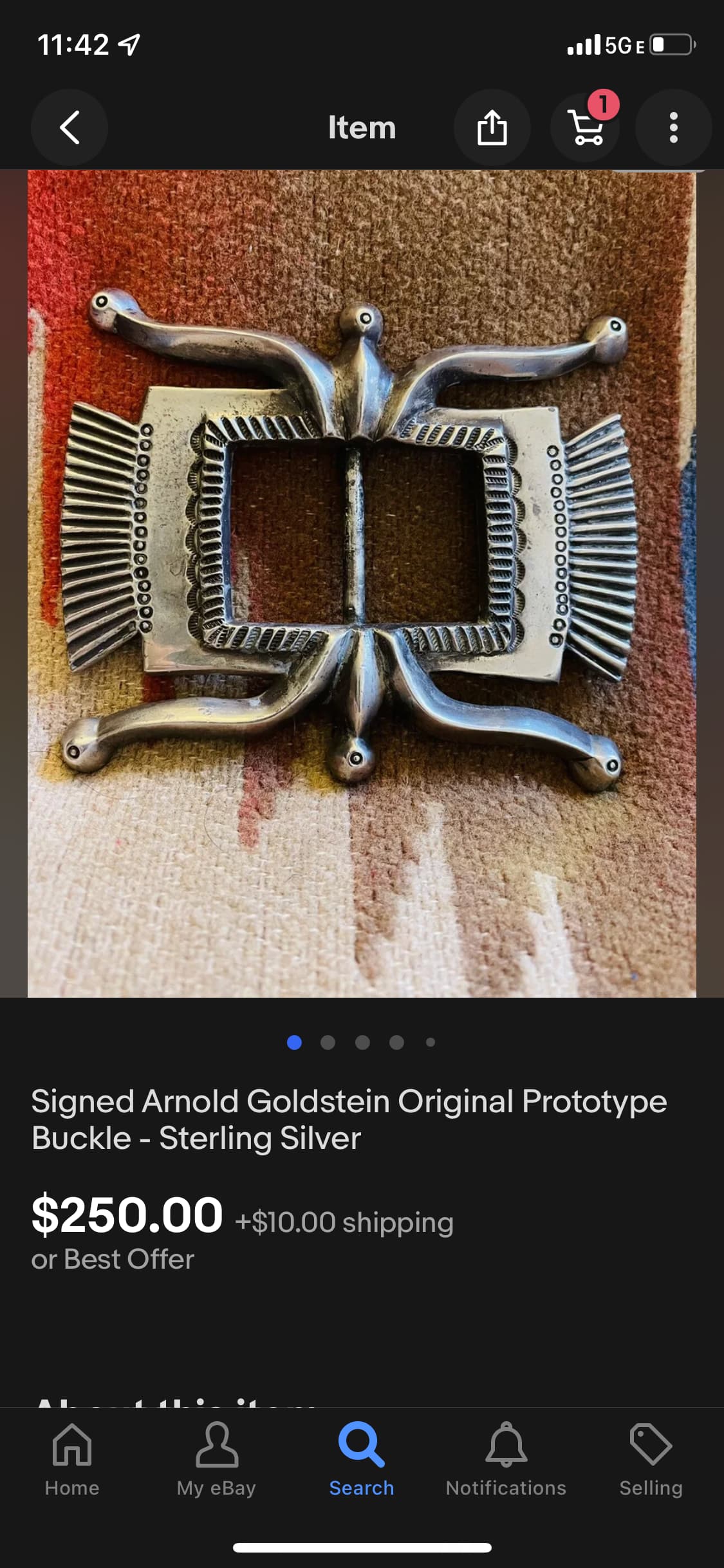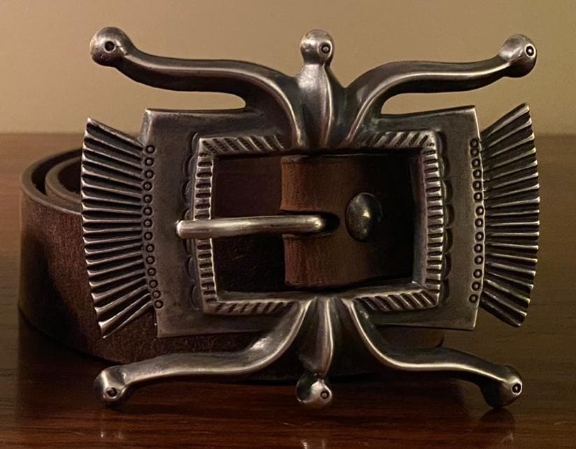 To add to the mystery; a sterling replica by Arnold Goldstein recently surfaced on eBay. I wonder if Ralph’s buckle is a replica, since Arnold made jewelry for him for decades, or if that buckle was cast from Ralph’s original piece!
