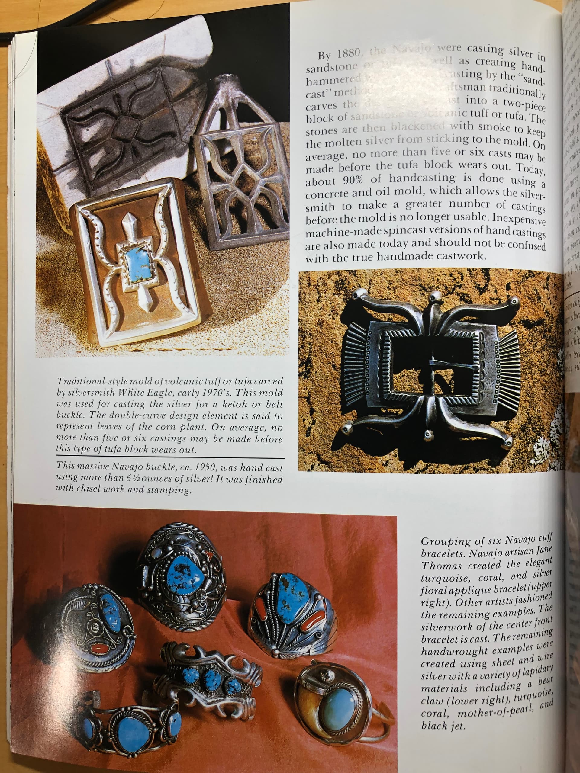 I’m curious, it looks like @TAH, the Heard Museum, and I all share sibling tufa buckles - to add, I’ve seen pictures of Ralph Lauren (the designer himself) with the same buckle. See in the next post an interesting entry in Indian Jewelry of the American Southwest by Turnbaugh featuring yet another identical buckle, but dating it to the 1950s! Perhaps the Heard Museum is… incorrect on dating this to the early 1900s?