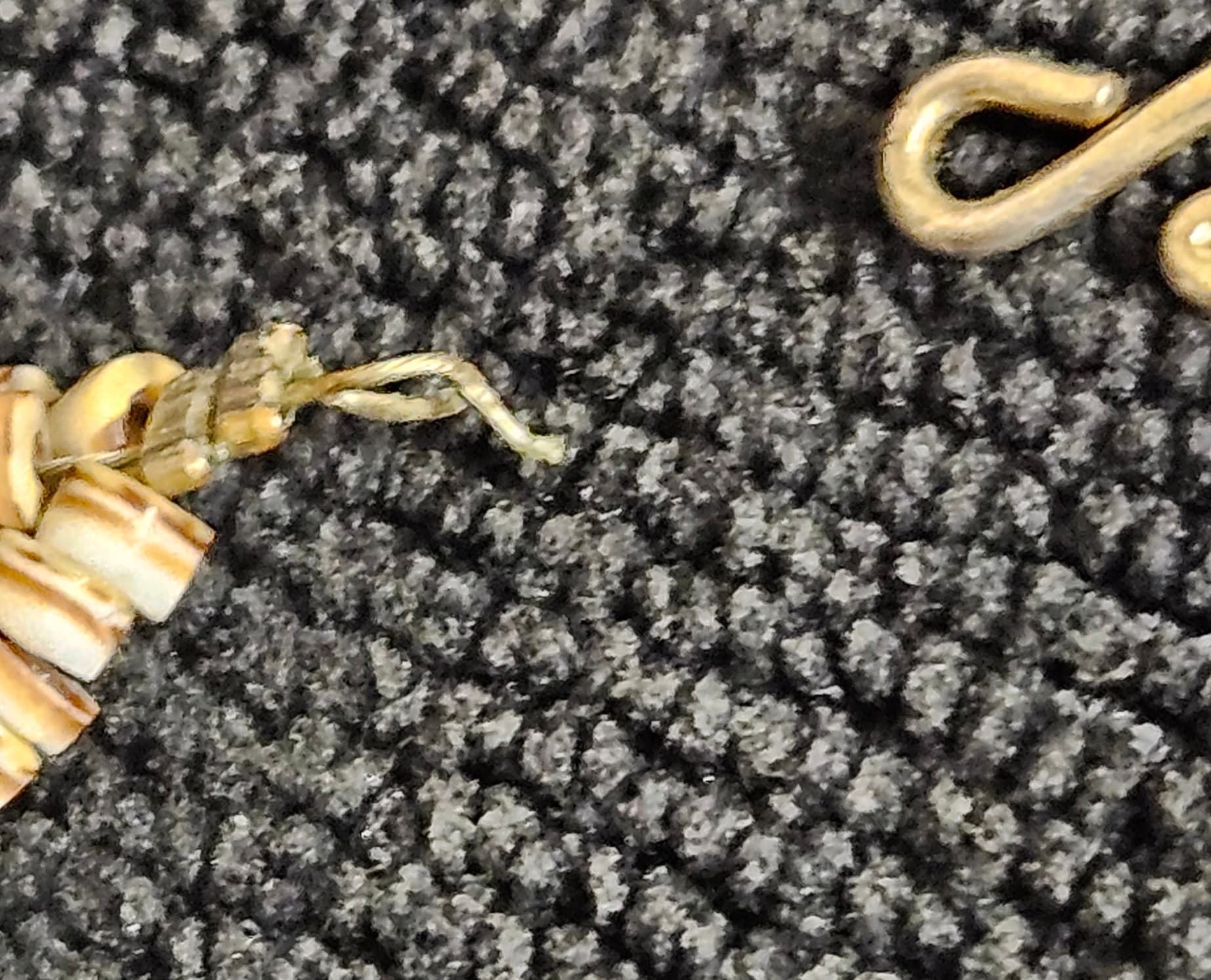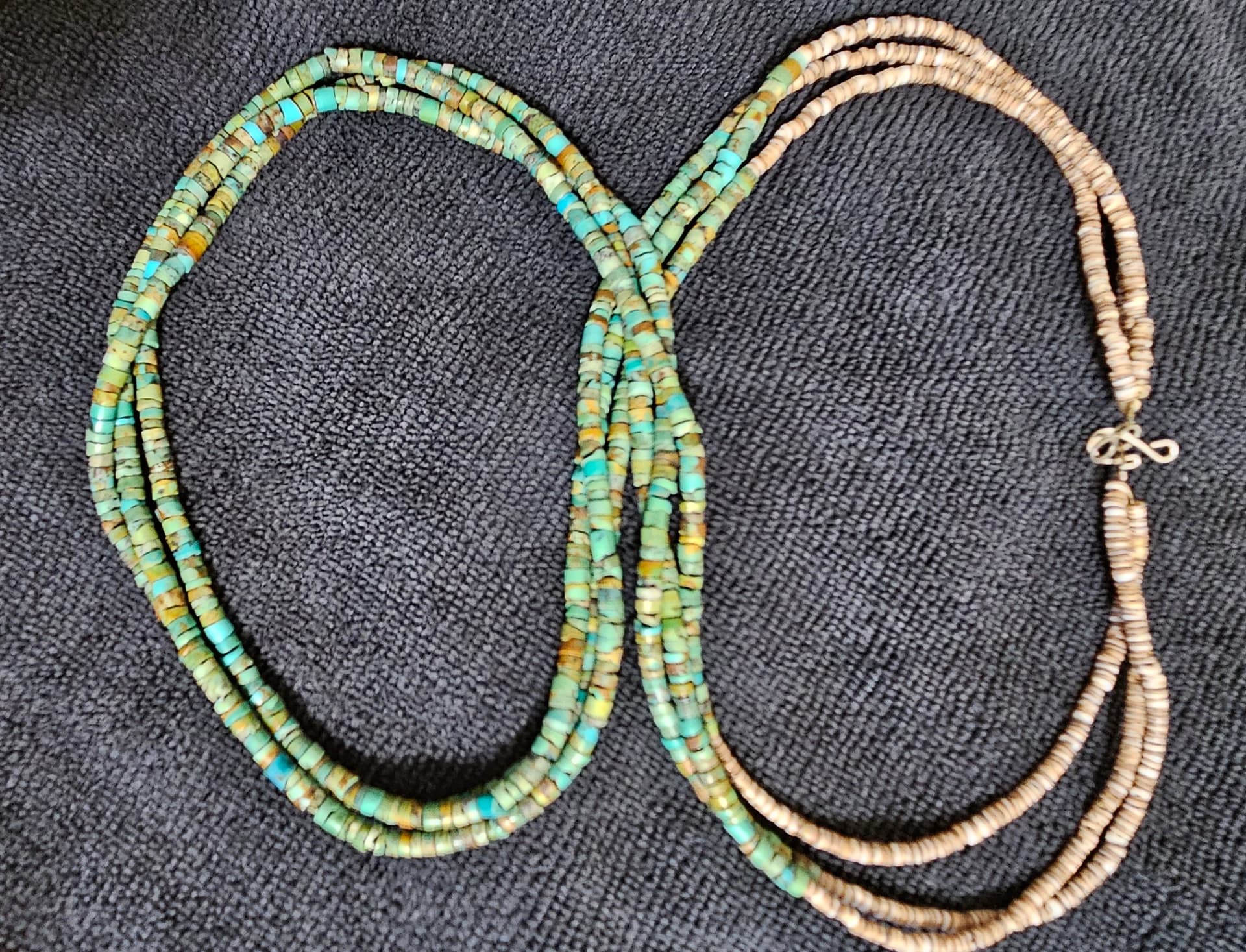 I purchased this string from a woman at Santo Domingo many years ago, and it’s one of those pieces I wear all the time. The hook was connected with wire that recently broke. The beads/heishi are on string. I’d be OK with a different type of closure as this one tends to come loose. Any input appreciated!