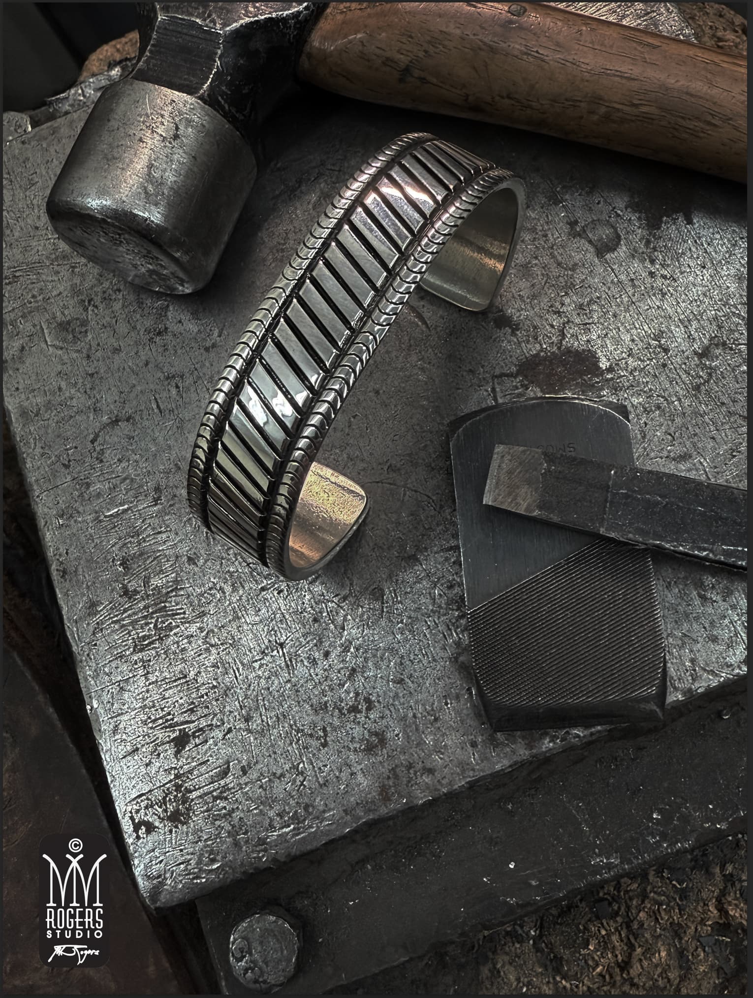 Hadn’t thought about it, @Stracci, but it does have an industrial feel to it. I wanted a simple versatile, uncomplicated masculine look and feel, and it certainly has it. Interestingly, it photographs differently (flatter) than its actual look and feel. The bracelet is made from 10 gauge milled sterling sheet which is quite heavy, and the stamping is intentionally very deep.