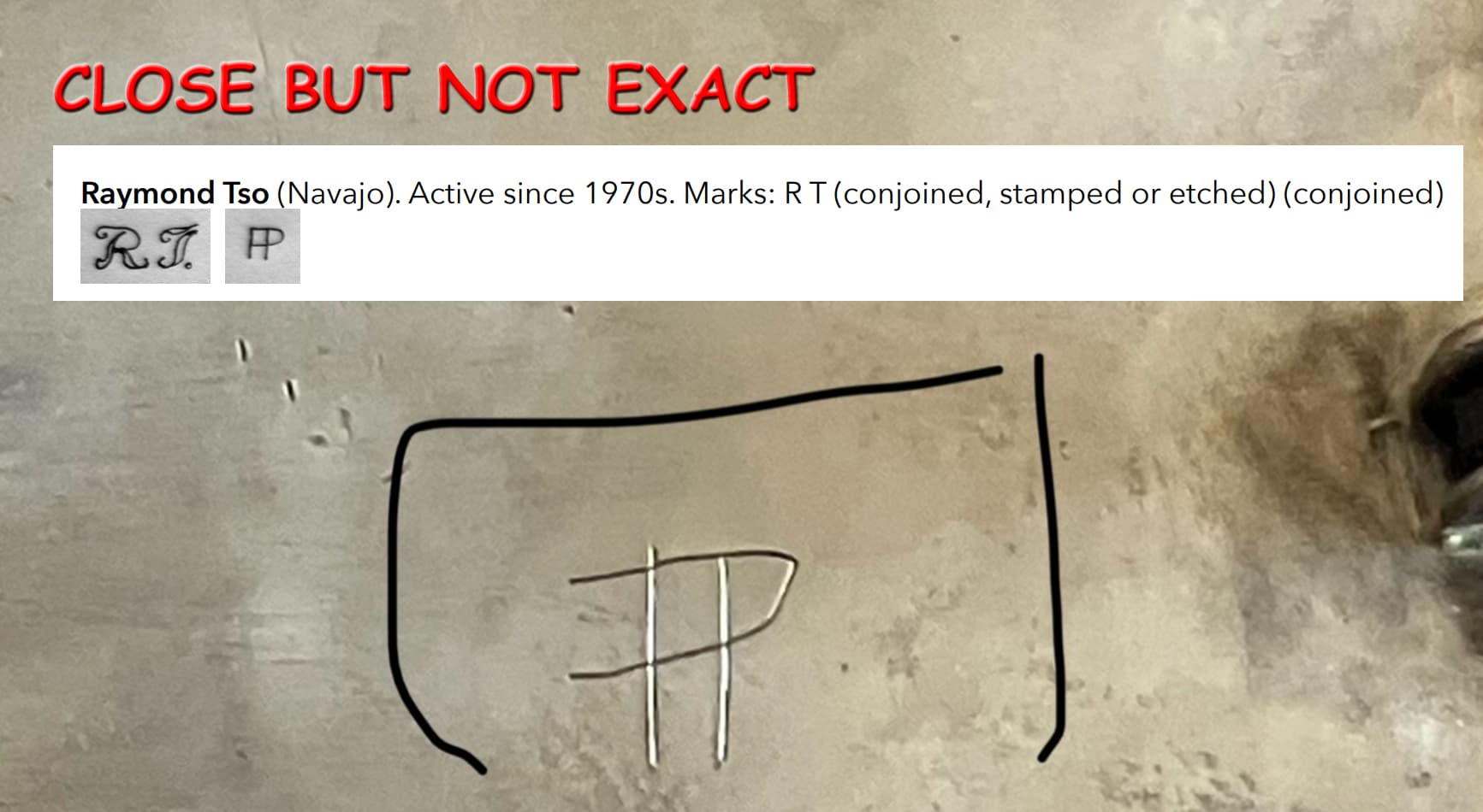 One needs to bear in mind as well that the level of fraud, fakery, and misdirection in the ‘Native American jewelry’ space is unparalleled in virtually any other area of commerce. Third parties marking pieces after the fact to enhance perceived value is a fairly common practice, especially for pieces that without attribution are worth no more than the cost of materials, as is the case here.