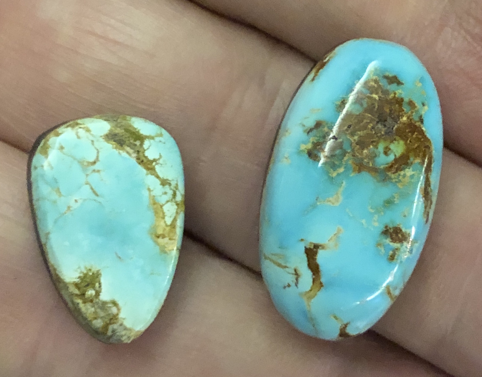 I purchased these because I liked the lighter colors and recognized the mines. The smaller one is supposed to be Royston and the larger one Blue Gem. I’m pretty new to turquoise so hope I did ok with my limited budget. I would love to have these set into a ring and cuff bracelet. Does anyone have advice on having jewelry made?