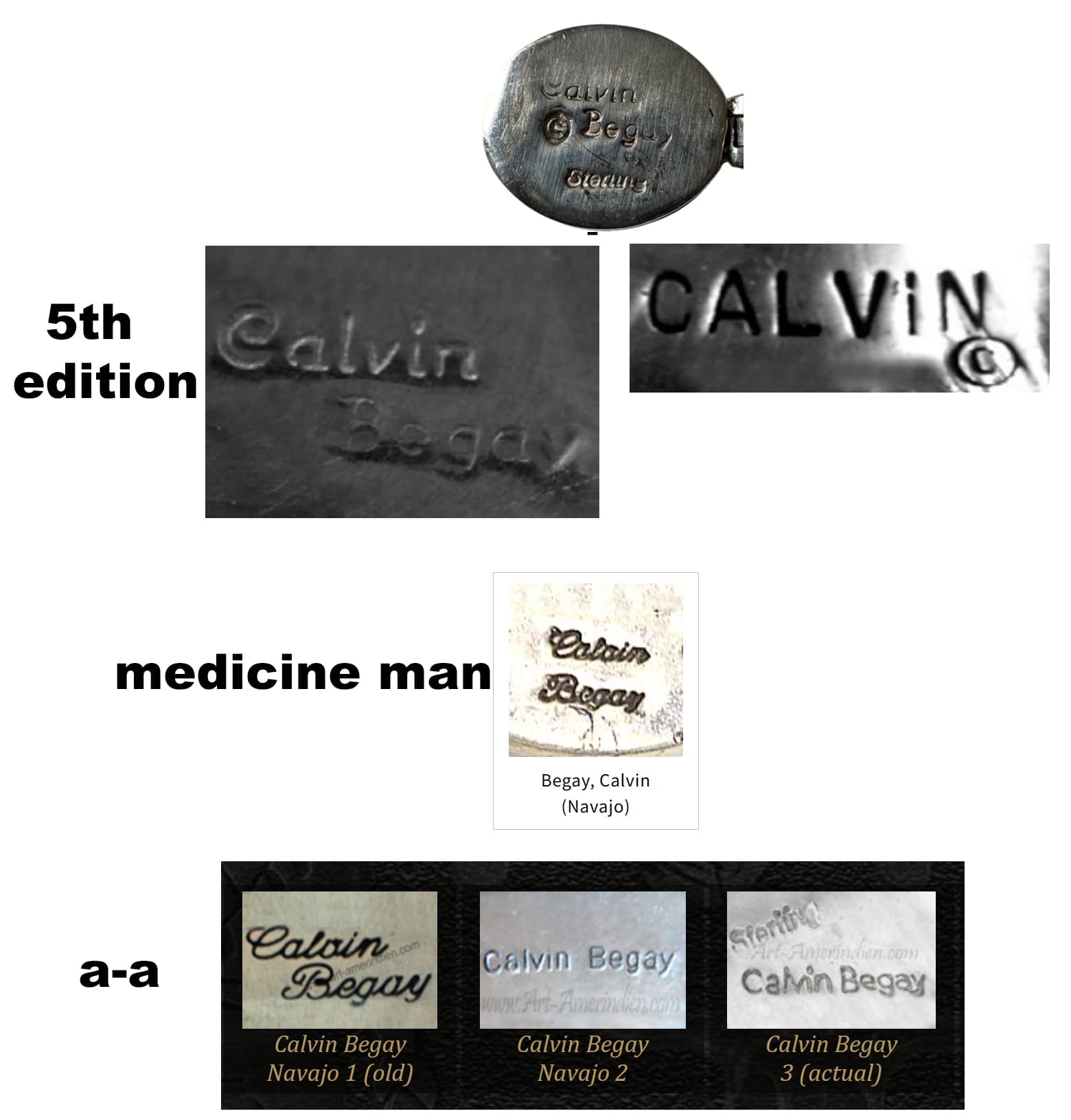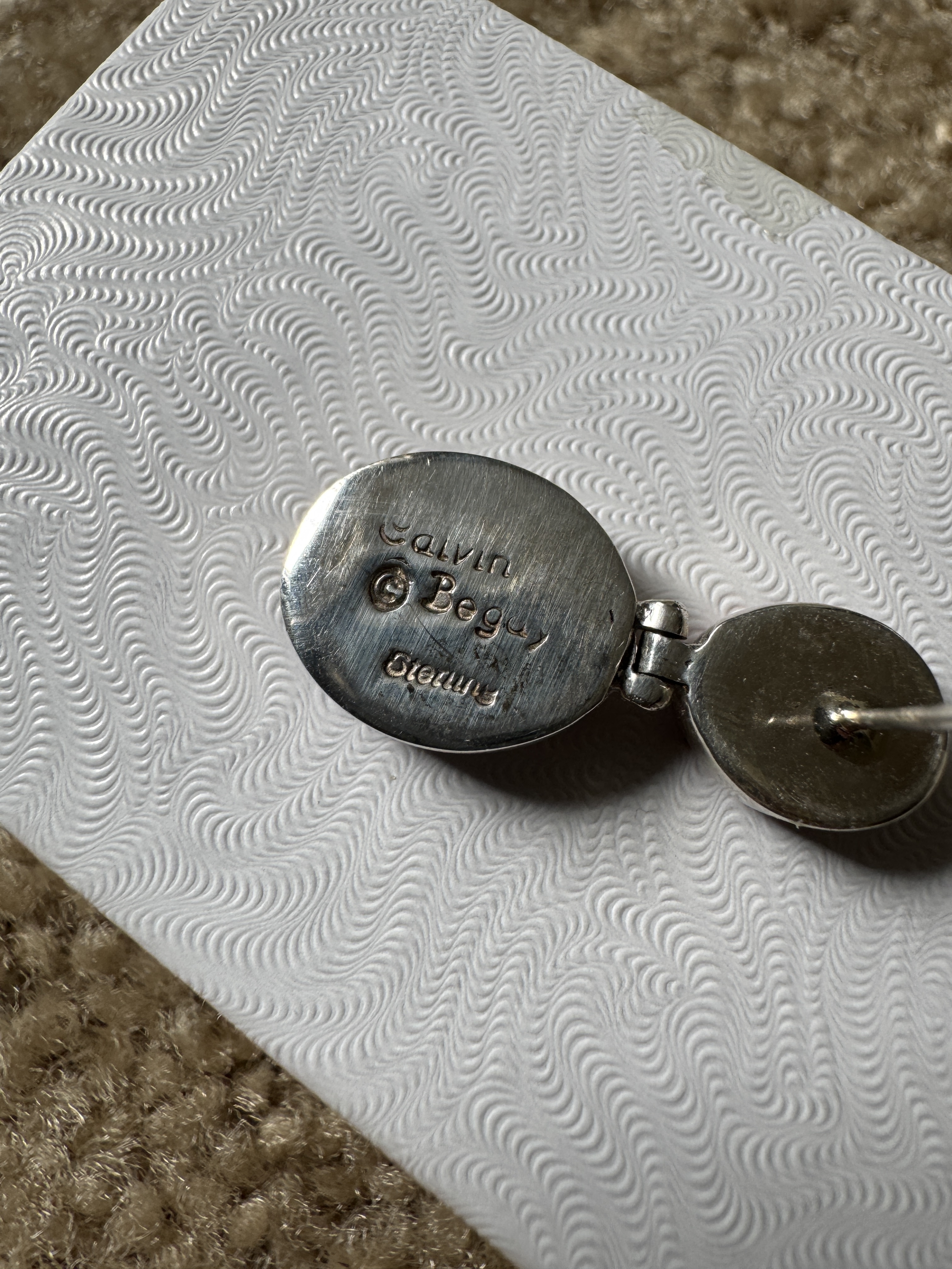 They are both marked Calvin Begay Sterling and the copyright symbol on the back. After I purchased I did a quick search of the forum and found all the posts and comments about questionable Calvin Begay jewelry.