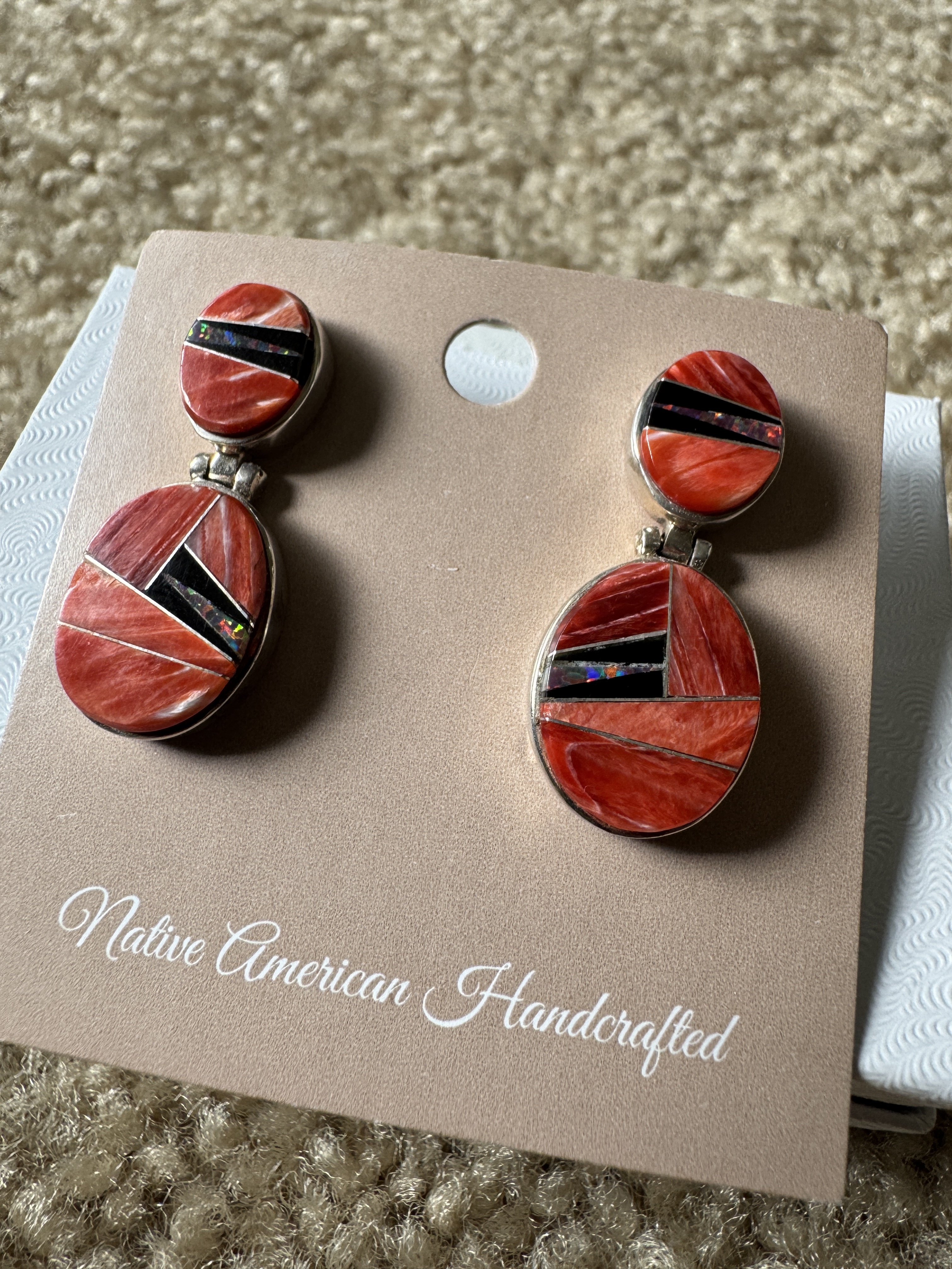 I found these spiny, onyx, and opal inlay earrings for myself. I probably paid too much, but I like them, so who cares.