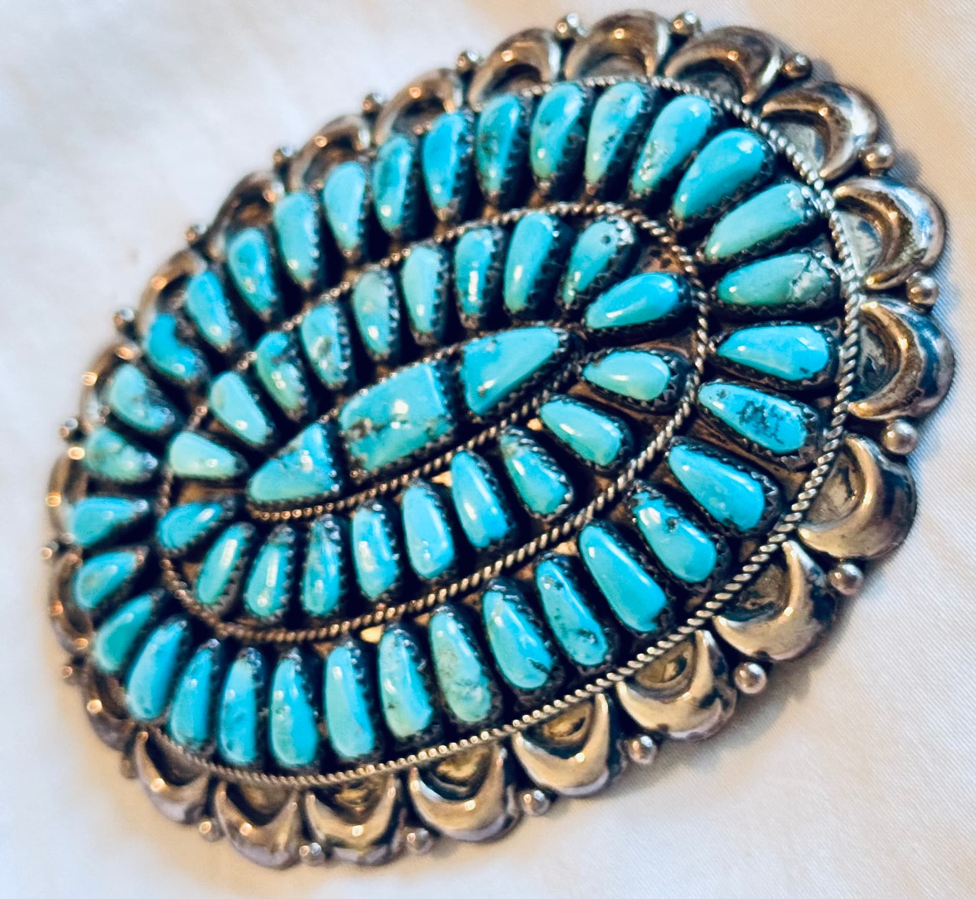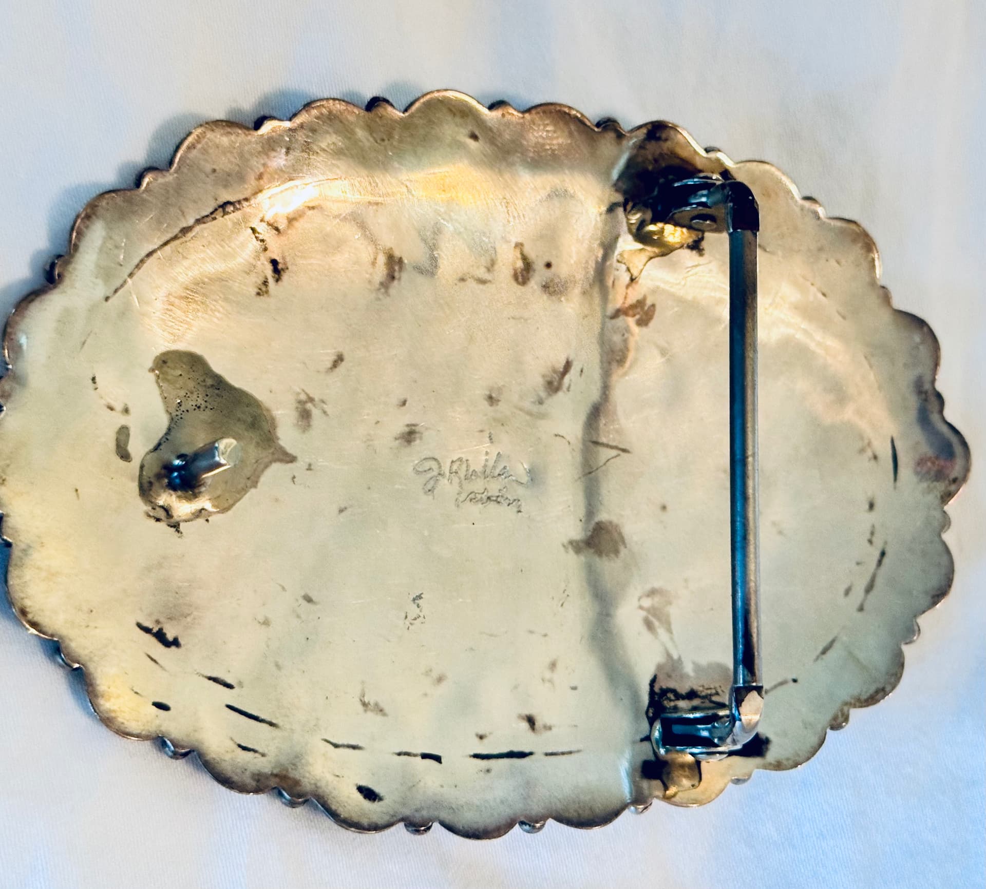 I can’t tell you who made it, Jen. The signature is done with an electric engraver, which is not uncommon with Zuni jewelry. What I can tell you is this looks like genuine Zuni cluster work, and the workmanship and natural stones in this buckle are excellent. It’s a keeper for sure!