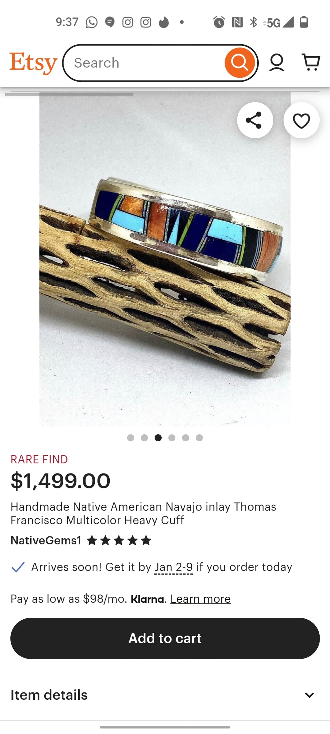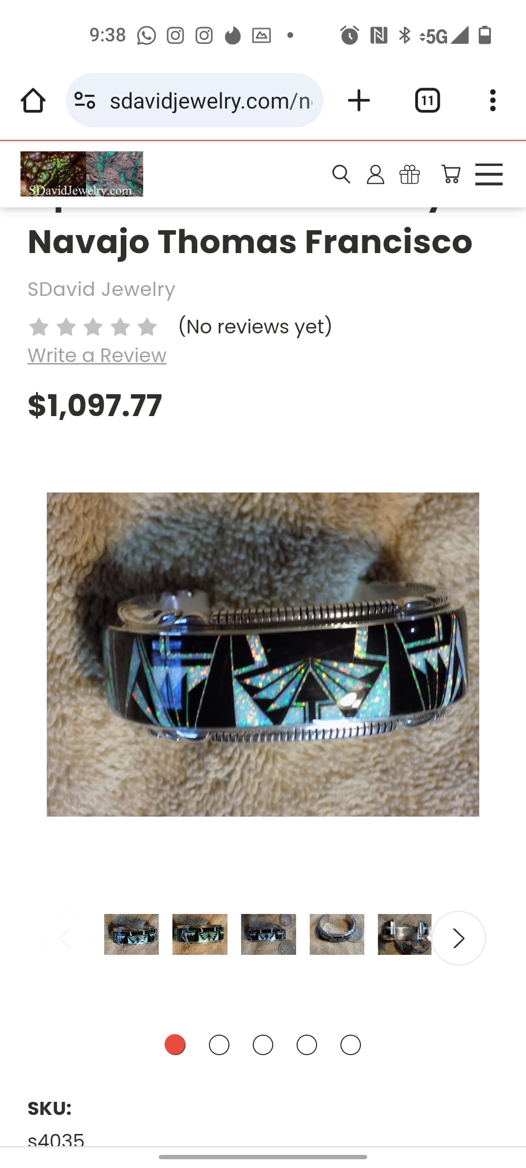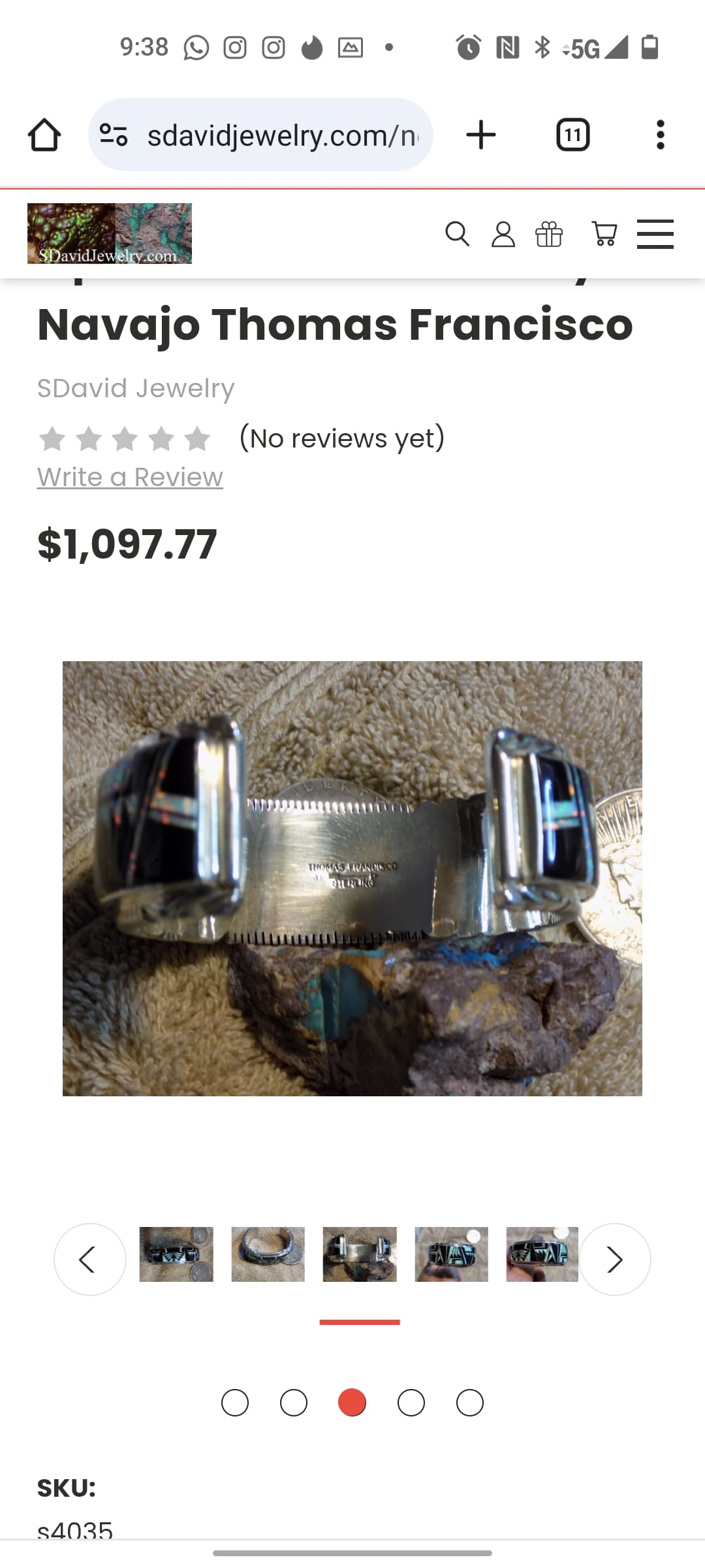 I looked at the Pueblo Direct site. Too bad they don’t show the actual marks so I could compare to my cuff. However, none of his pieces there are multi-gem band inlay; he uses large single stones except in necklaces and squash blossoms. I don’t see any similarity to my cuff .