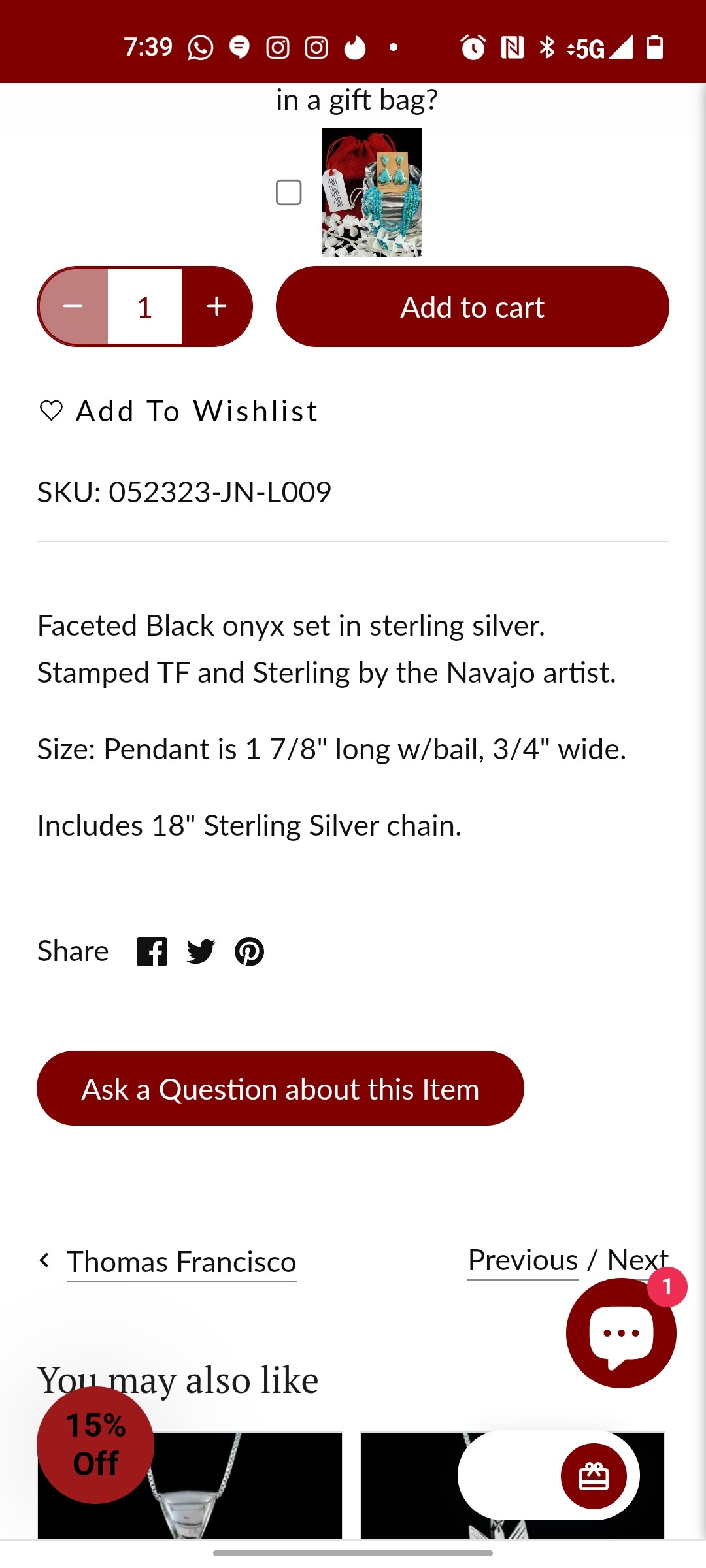 It does seem like Pueblo Direct is suggesting that TF is Thomas Francisco, but we all know things are constantly wrongly attributed (I DO NOT generally trust eBay and Etsy for example). I’m not super familiar with Pueblo Direct, but they do have the Indian Arts and Crafts Association Member logo. But you’re right, TF isn’t listed on the online hallmark sites as his. Weird. If you can’t find him online, maybe try contacting one of the really good stores like Perry Null in Gallup or Garland’s in Sedona?