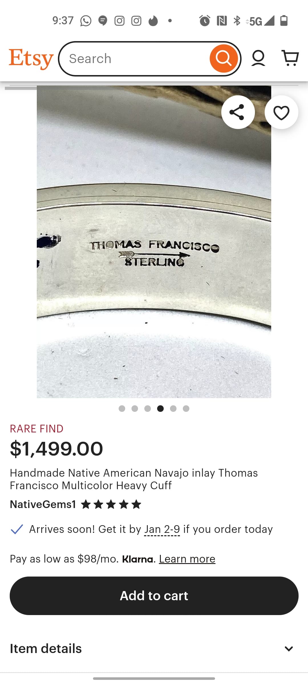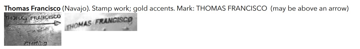 Both the onyx pendant and my cuff have plenty of room for a full Thomas Francisco signature so I’m not convinced that the TF mark is his. Did the Pueblo Direct page say that that the onyx was signed “TF” and did they suggest it was Francisco’s? I’m a bit confused.