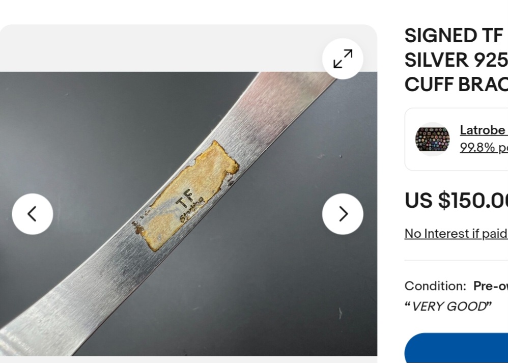 @Juniper Not to add to any confusion but, I came across this cuff on eBay yesterday while researching the “TF” hallmark. While this listing doesn’t identify the maker, the cuff looks very similar to yours and has a TF hallmark. (My personal opinion is that TF isn’t the hallmark for Thomas Francisco.)