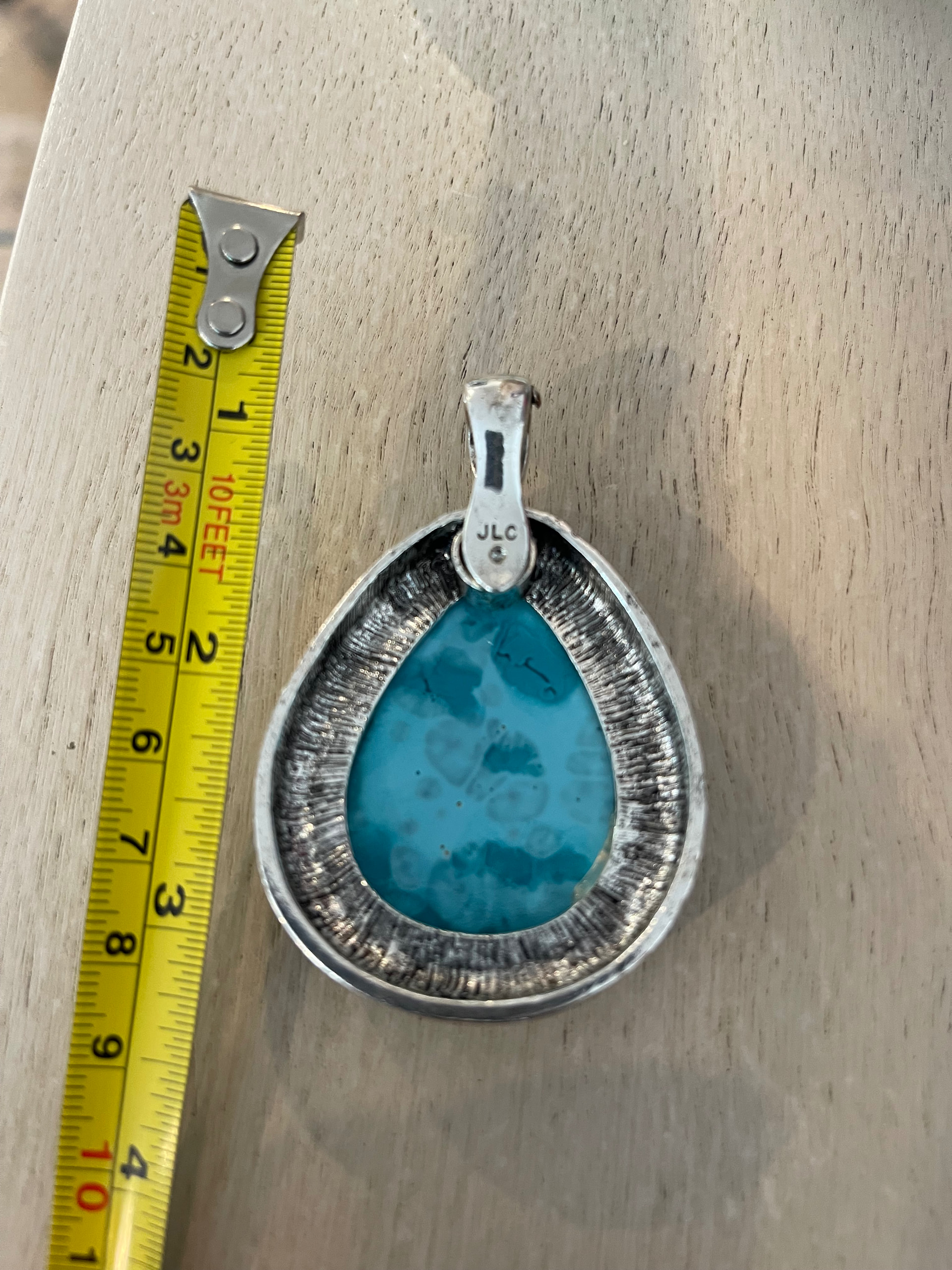 pendant is most likely an import silver tone metal faked turquoise