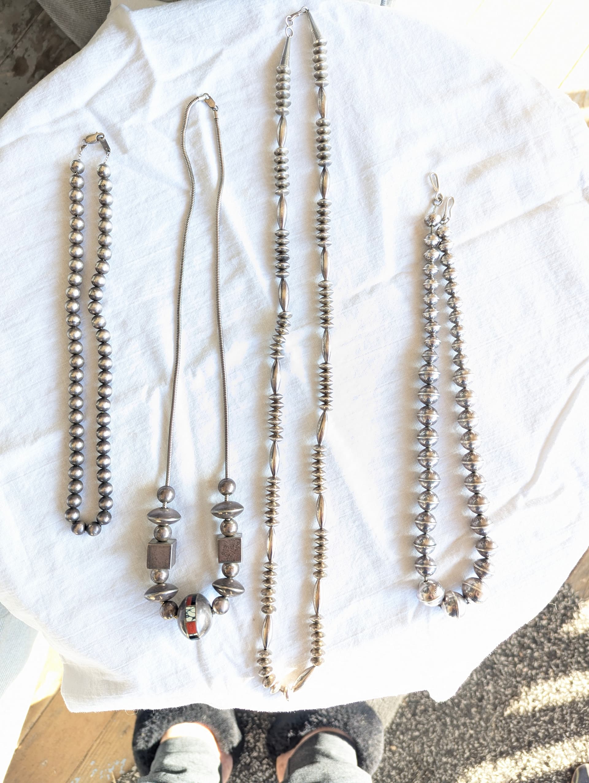 I hope someone more knowledgeable jumps in, because Navajo beads can confuse me. But I agree with you on necklace #1 partly due to the unusual clasp. I don’t know on #2 (what a cool necklace!), but I would guess #3 is handmade - love that one!! I would also wear it a lot. #4 maybe is machine made (or partly machine made)? The pronounced seam makes me think that. But I could of course be completely wrong!