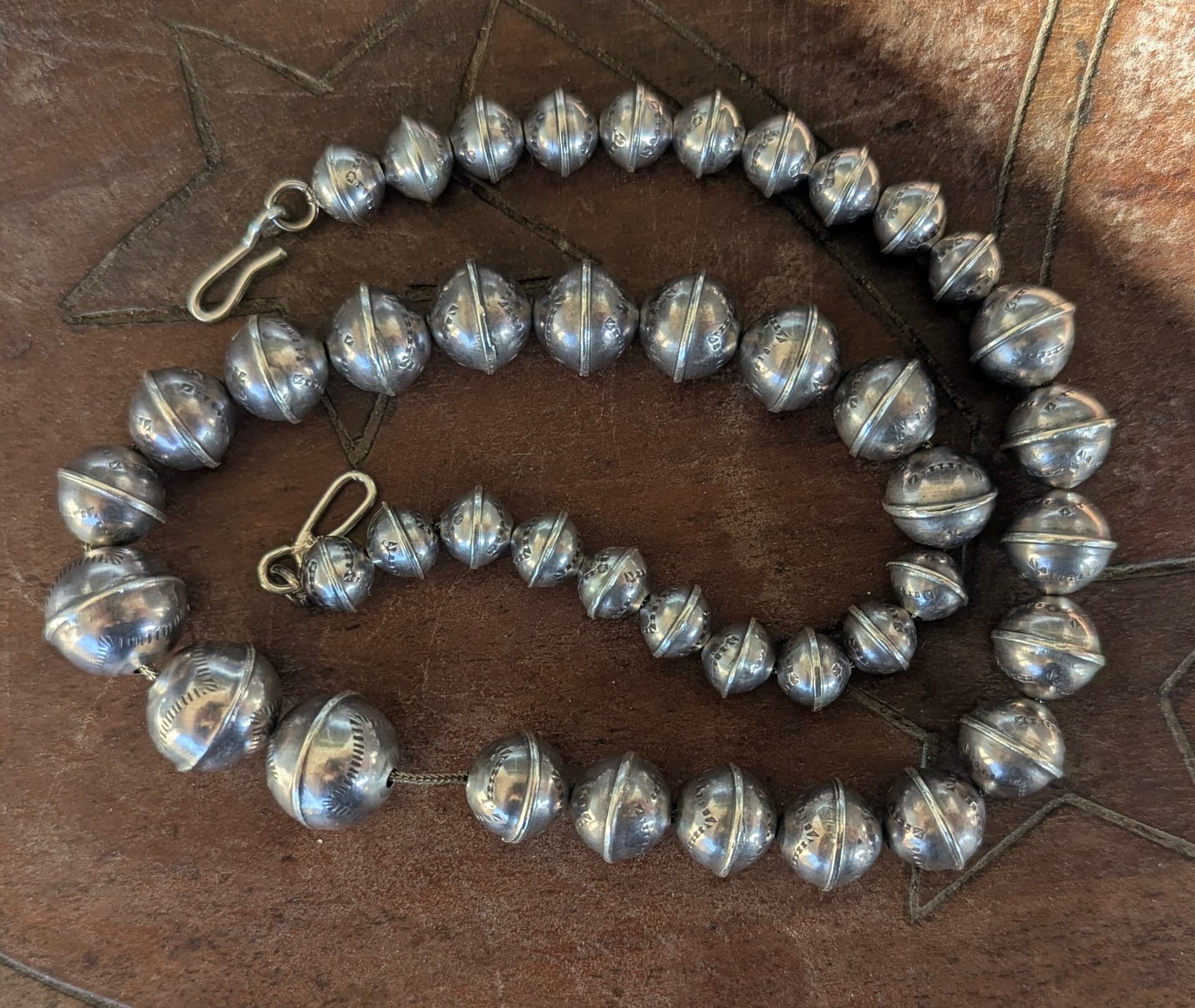I would like to add that in the thread I linked I posted a couple of mine, and I now believe they both are handmade. When I looked with a magnifying glass I was able to find file small file marks all around the seams. That is something that has been helpful to me. But we are looking forward to seeing your Navajo beads!
