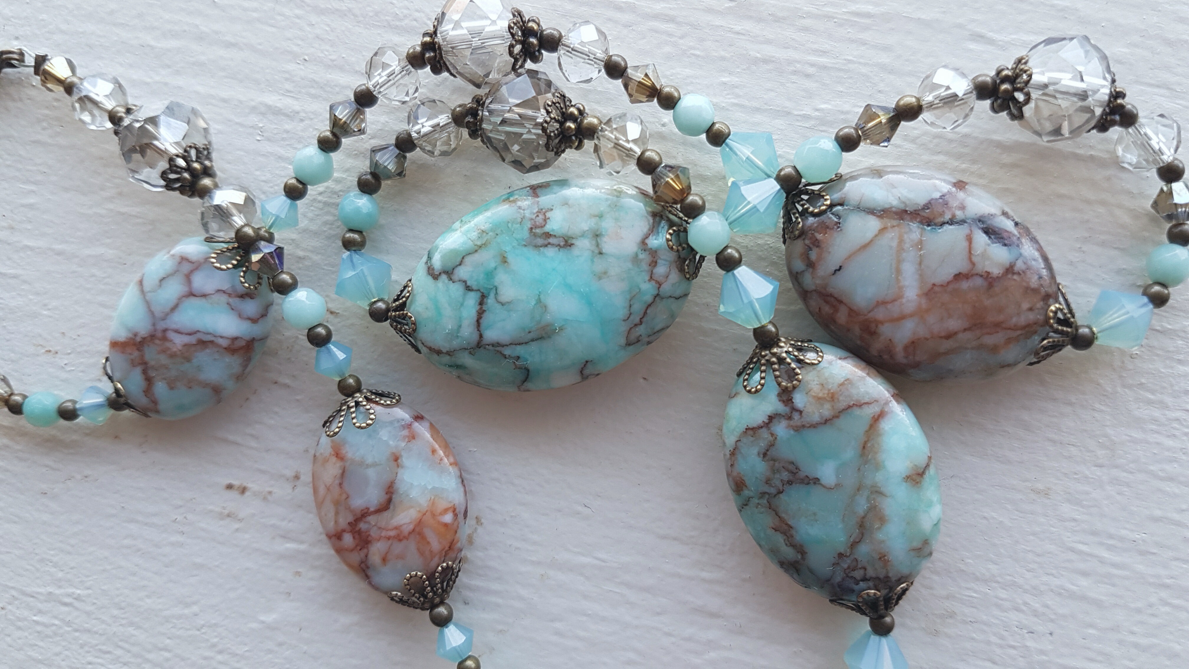 I’ve had friends look at it, one said it’s dyed howlite (however, she called my actual dyed howlite earrings ‘Real turquoise’), another friend said it is real turquoise, it just has a lot of flaws.