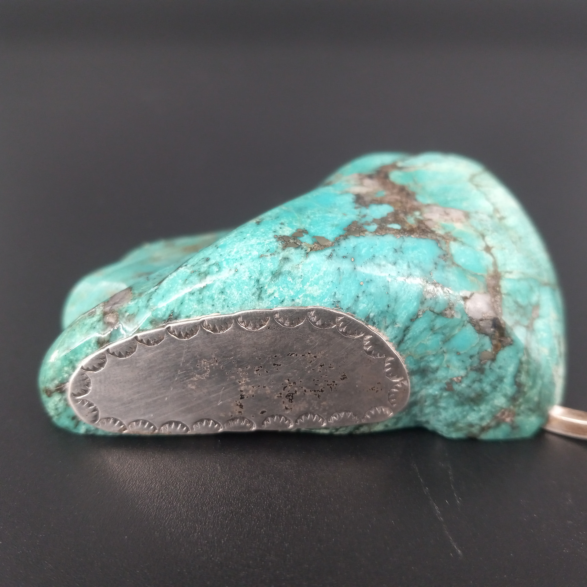 It looks like it might be bit it’s not easy to be sure with one picture. If it is turquoise odds are it is stabilized. It has a good look from a decorative standpoint.