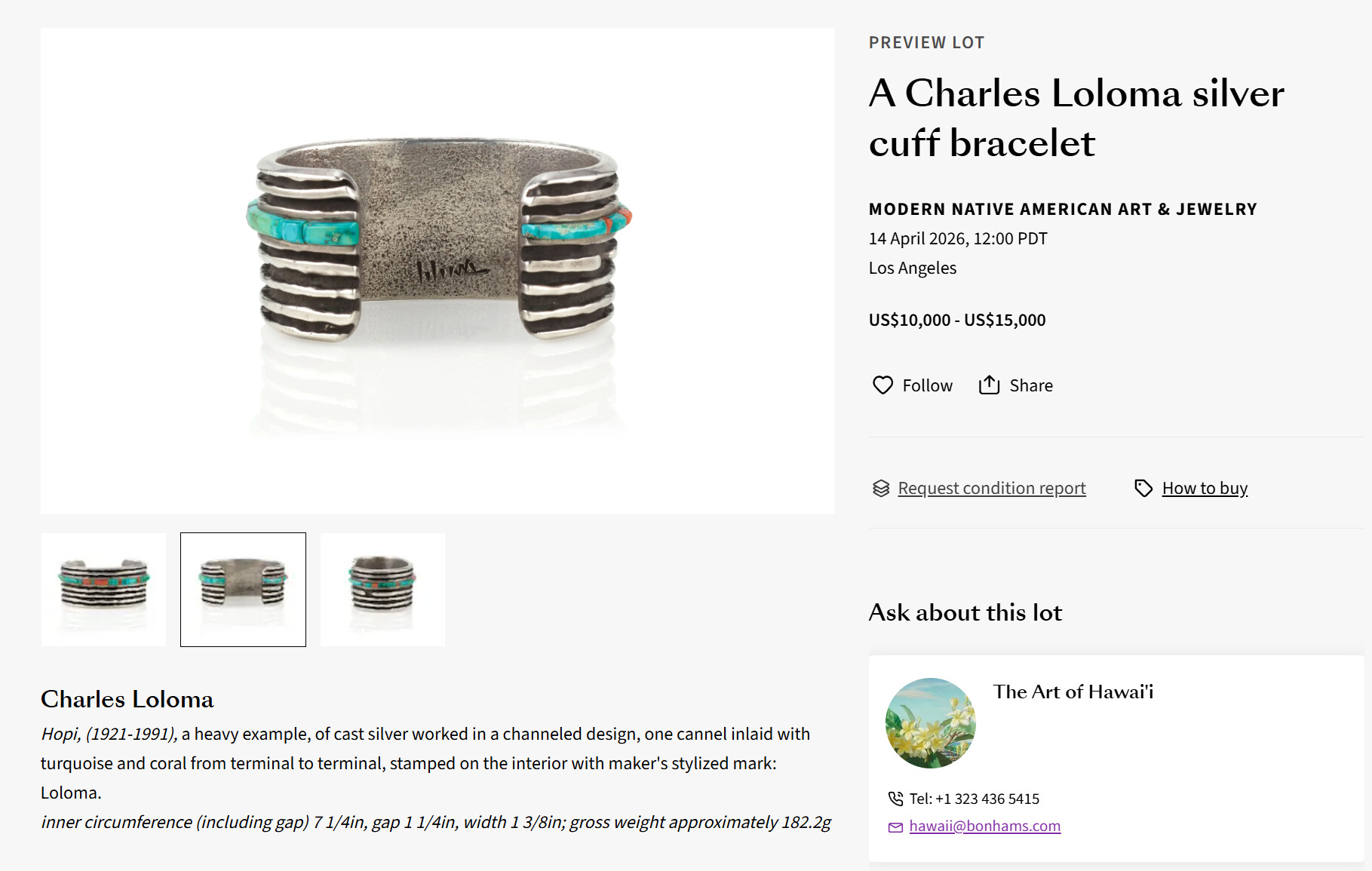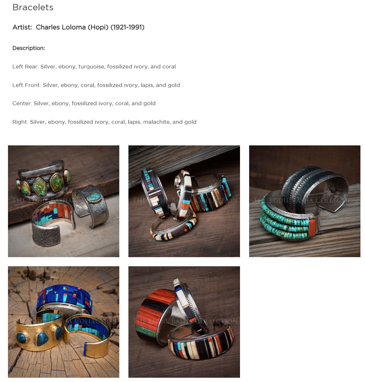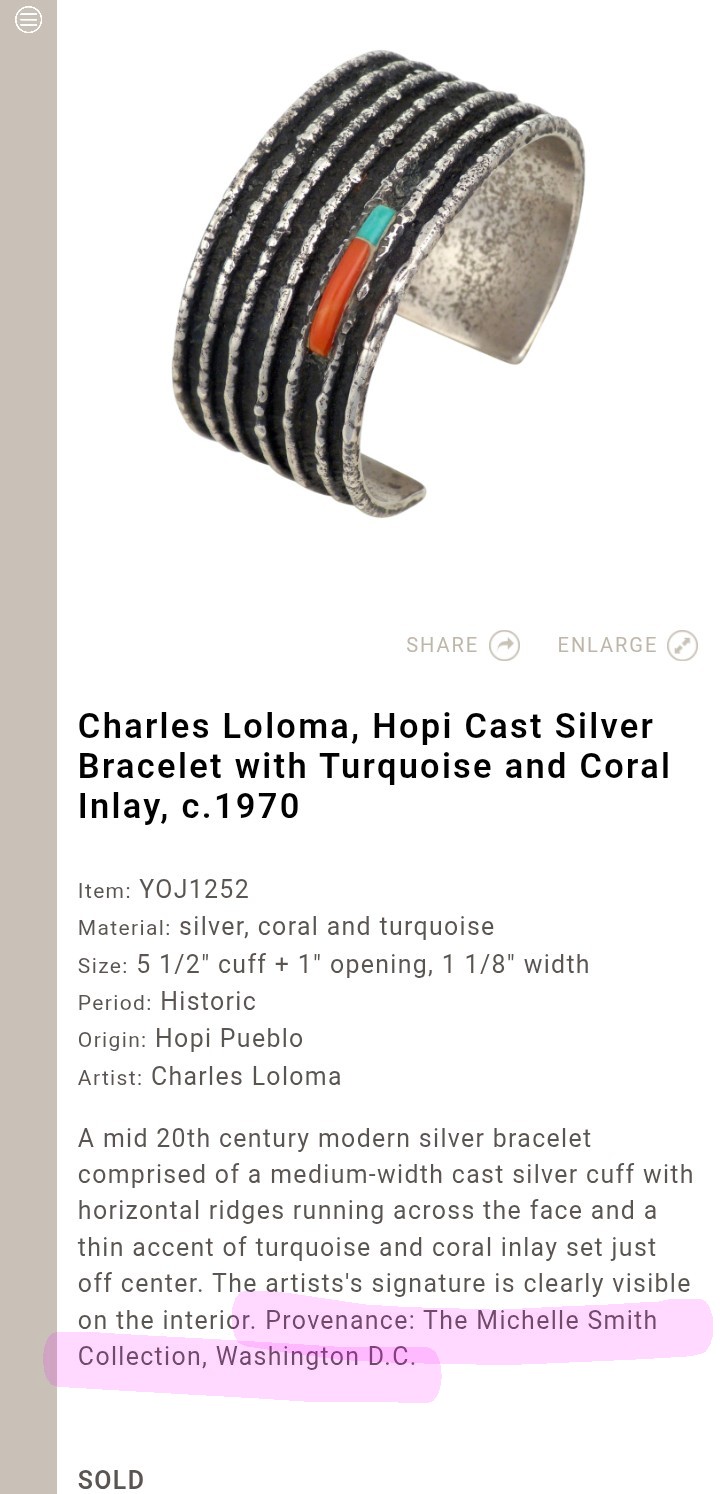 I realize that I’m looking only at photos, and I haven’t seen authenticated Loloma jewelry in person but, these pieces from the Basha collection are works of immense superior quality, imo. You can see it. The cuff coming up for auction doesn’t match that caliber, imo.