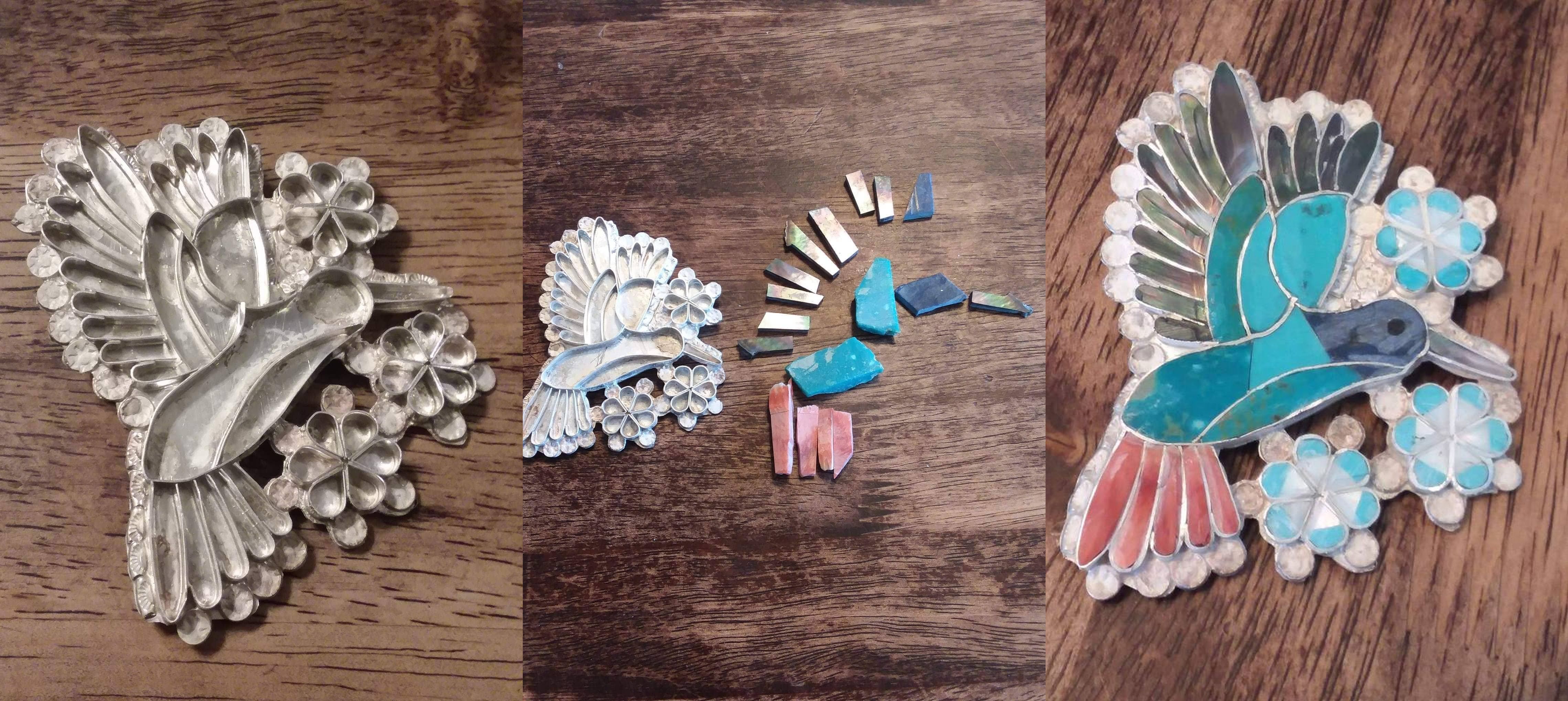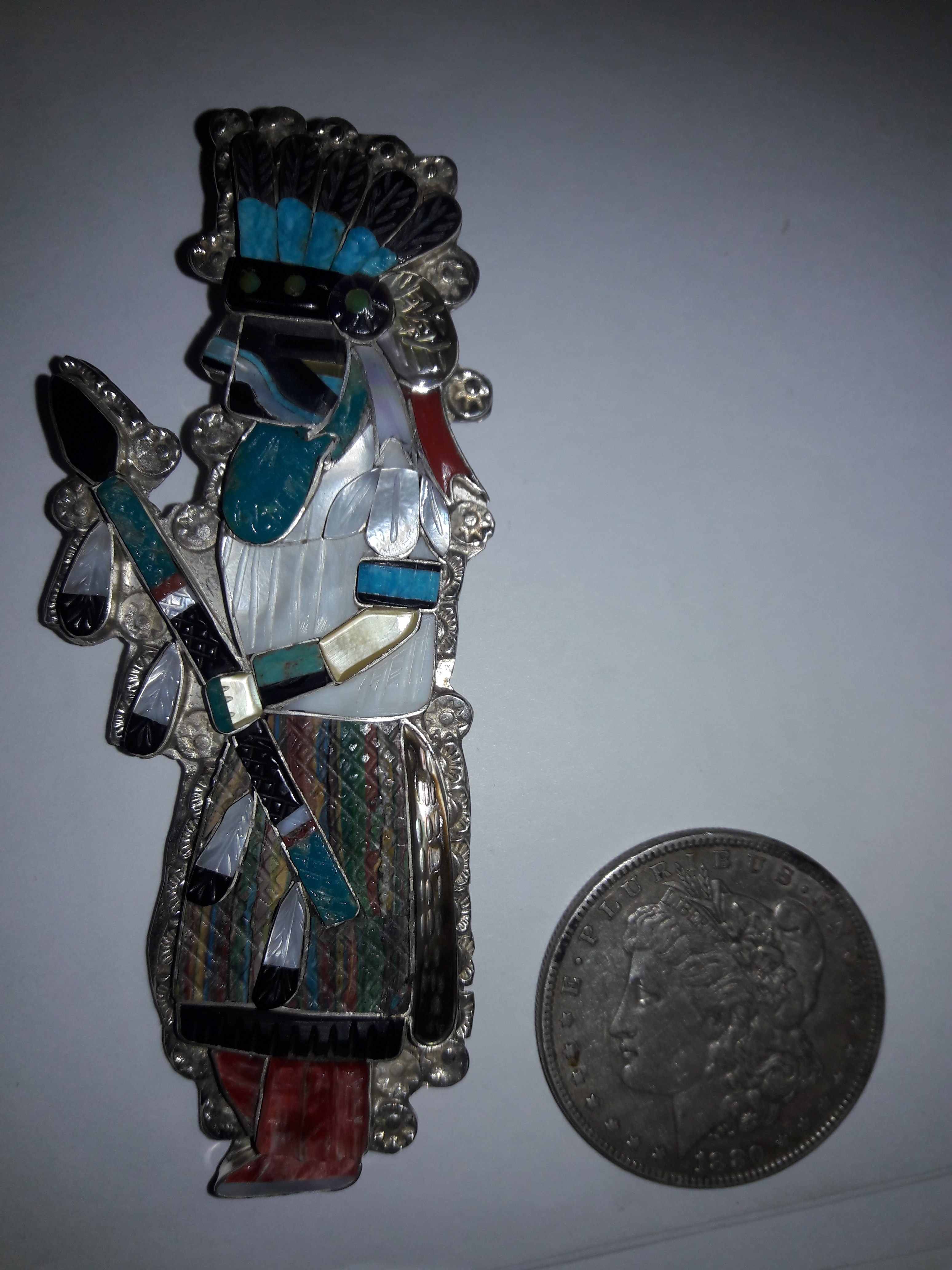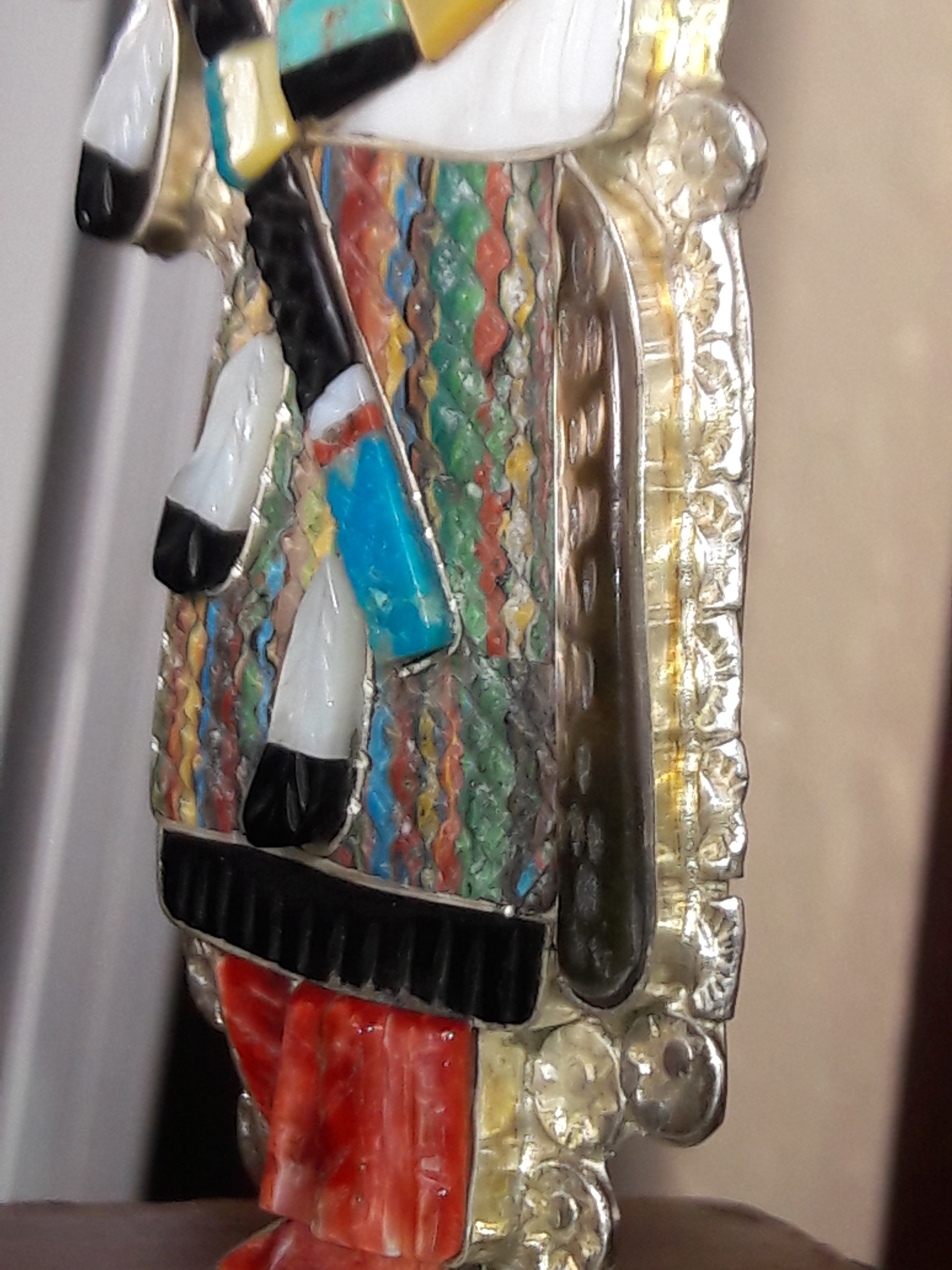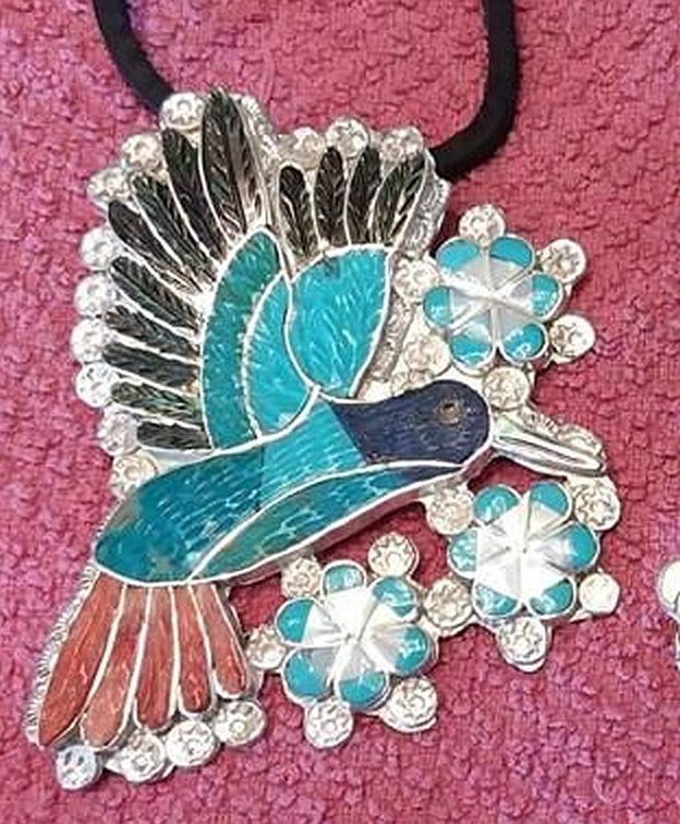 The hummingbird pendant/brooch and the eagle dancer bolo were both done for us in 2019. The eagle is 6" and they are both just awesome but don’t hold a candle to what Eldred’s granddaughter was wearing at the UNM PowWow this past May.