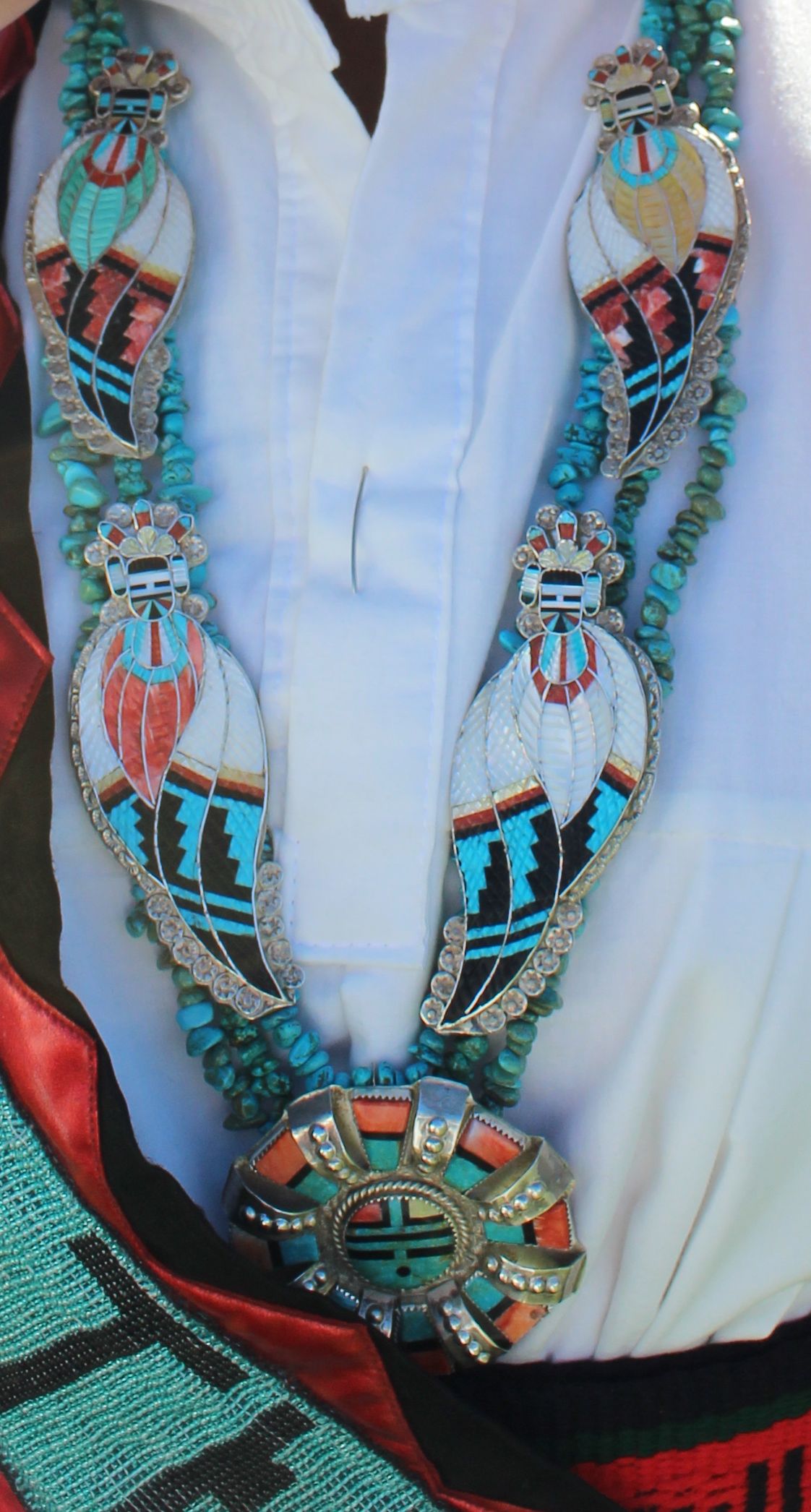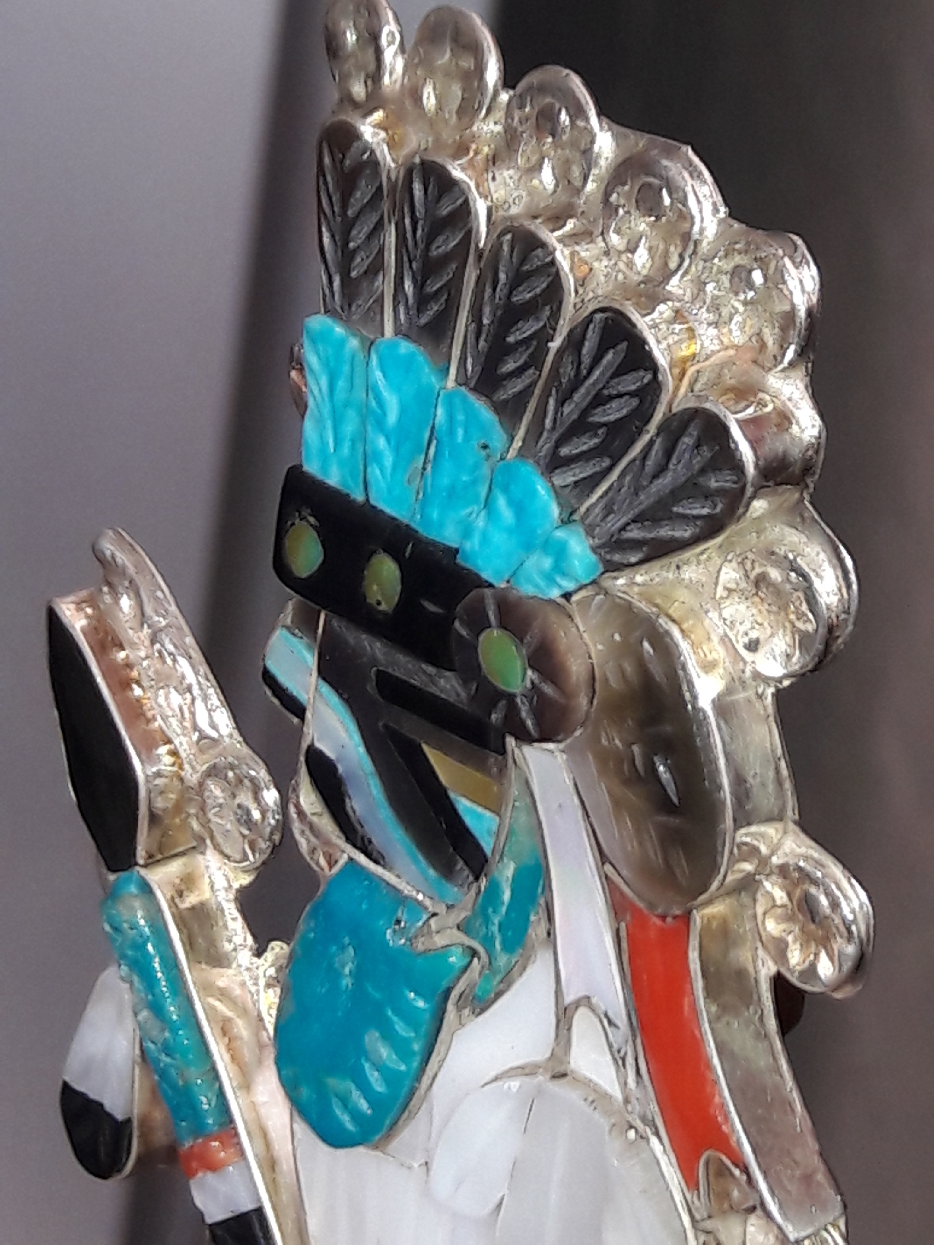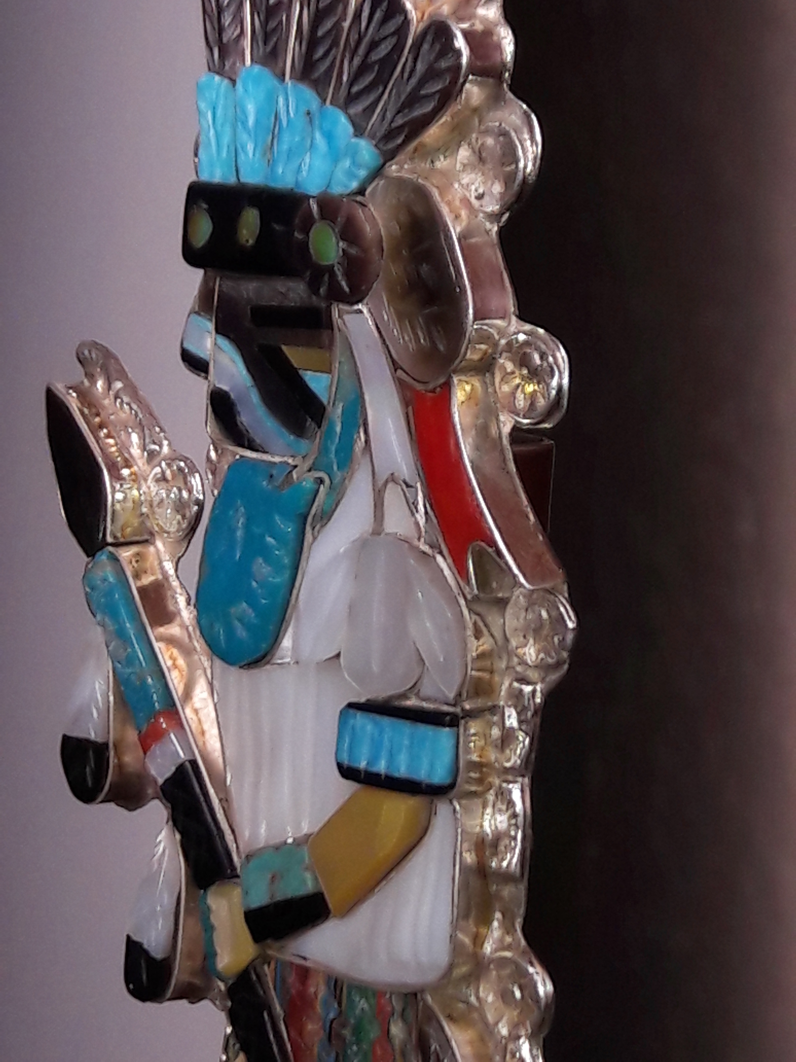 The hummingbird pendant/brooch and the eagle dancer bolo were both done for us in 2019. The eagle is 6" and they are both just awesome but don’t hold a candle to what Eldred’s granddaughter was wearing at the UNM PowWow this past May.