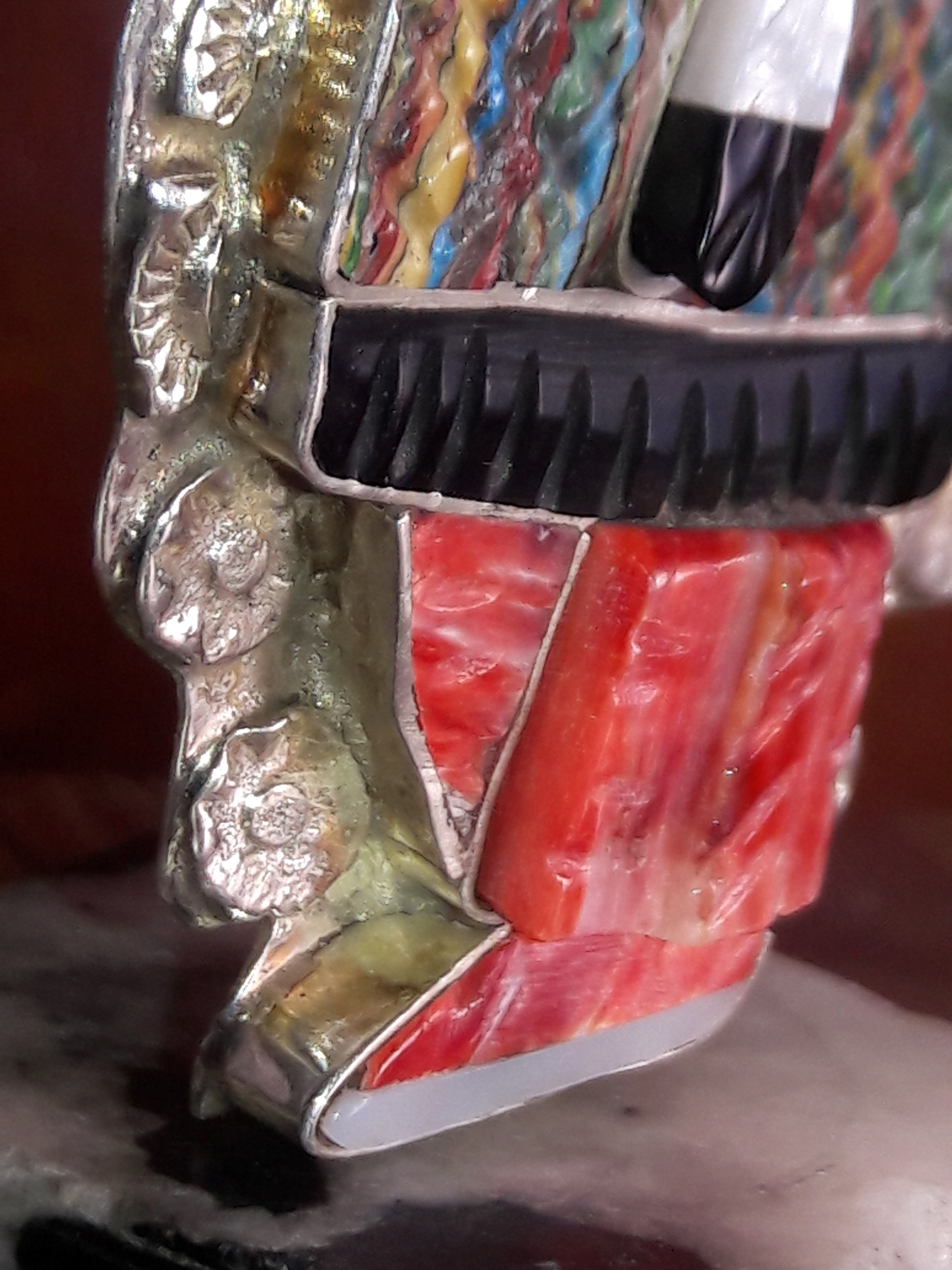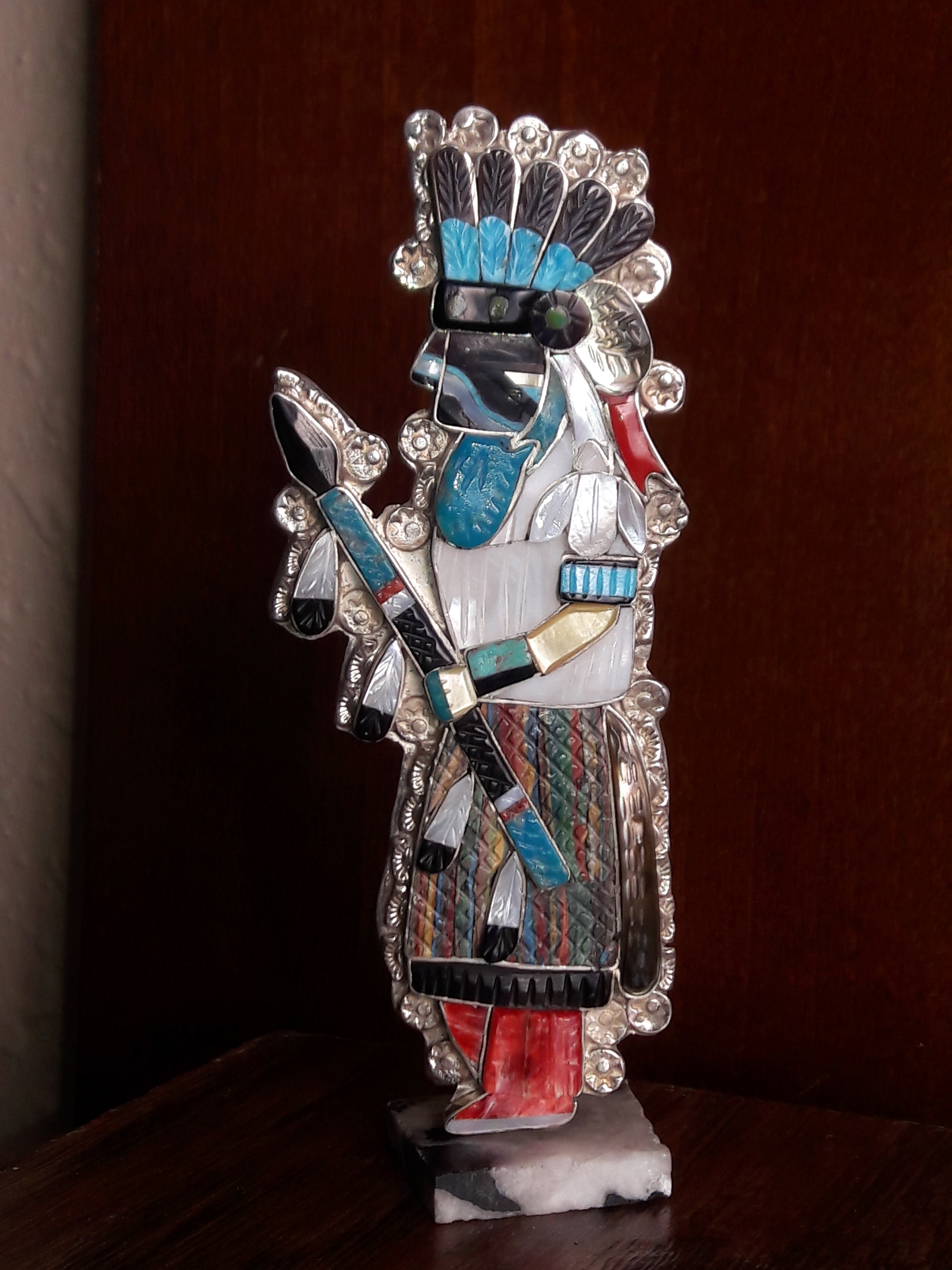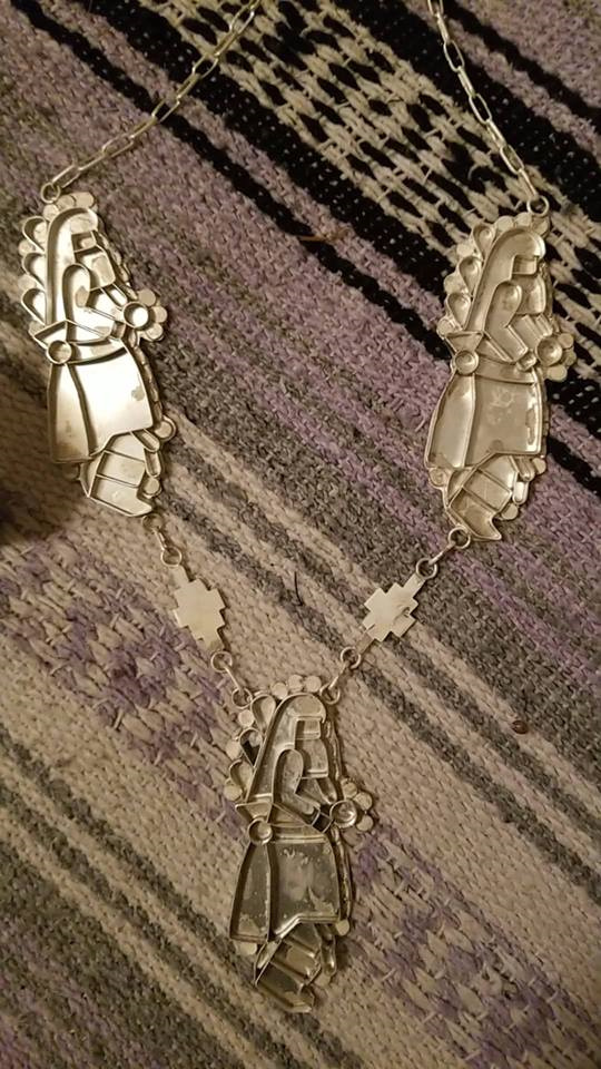 Awesome pieces you have there! I purchased my first Eldred piece, the Comanche dancer, via online auction from a third party. I was so impressed by the work that I looked and was able to find Eldred’s Facebook page and order from him via his granddaughter who runs the page. I got the rain dancer set with necklace, cuff and earrings. I see in your picture of her, she is wearing the matching ring to the set I have on her pointer finger. I need that ring!!! Lol The coolest thing was that they sent me pictures of the pieces in production which I treasure also.