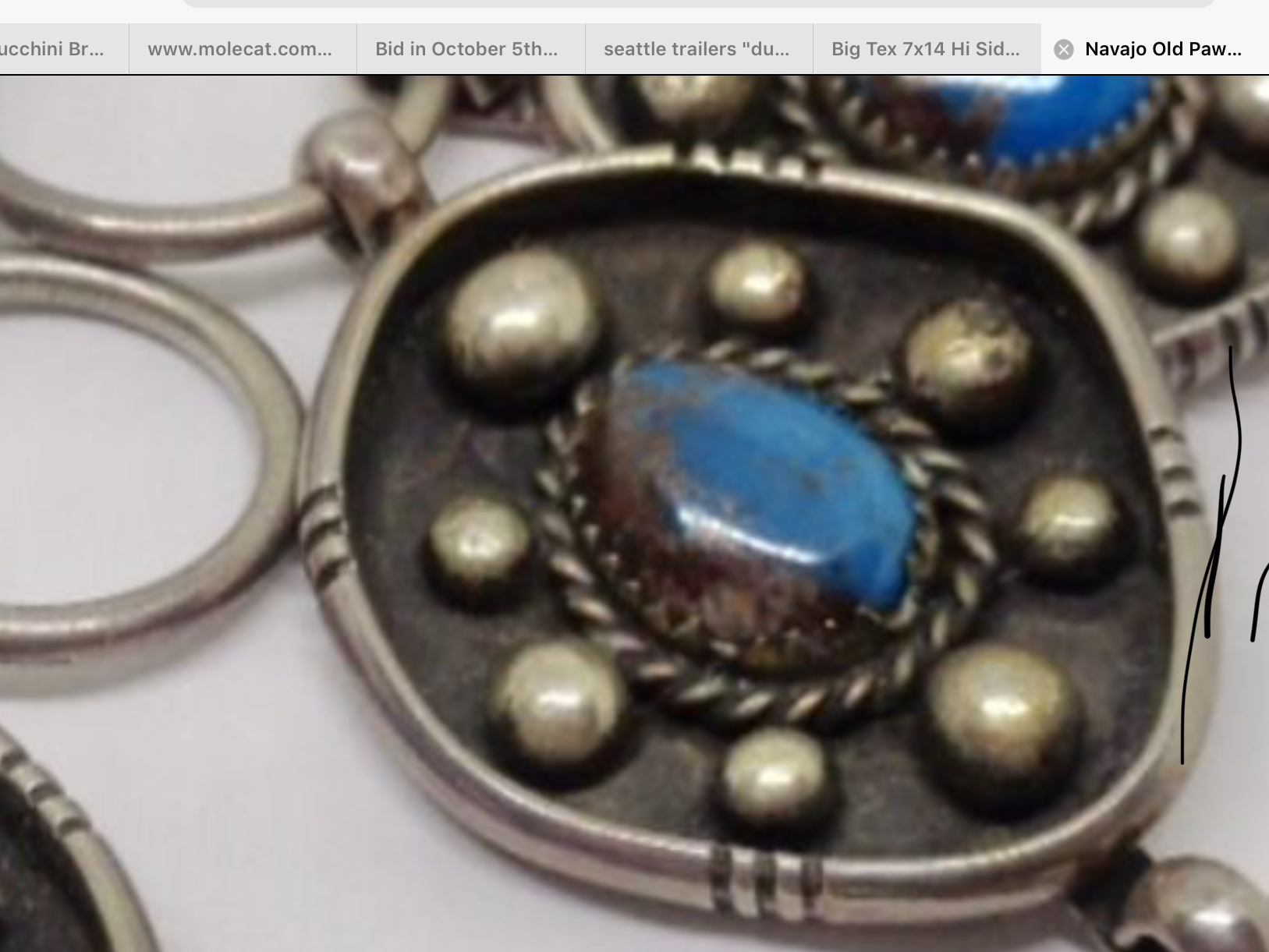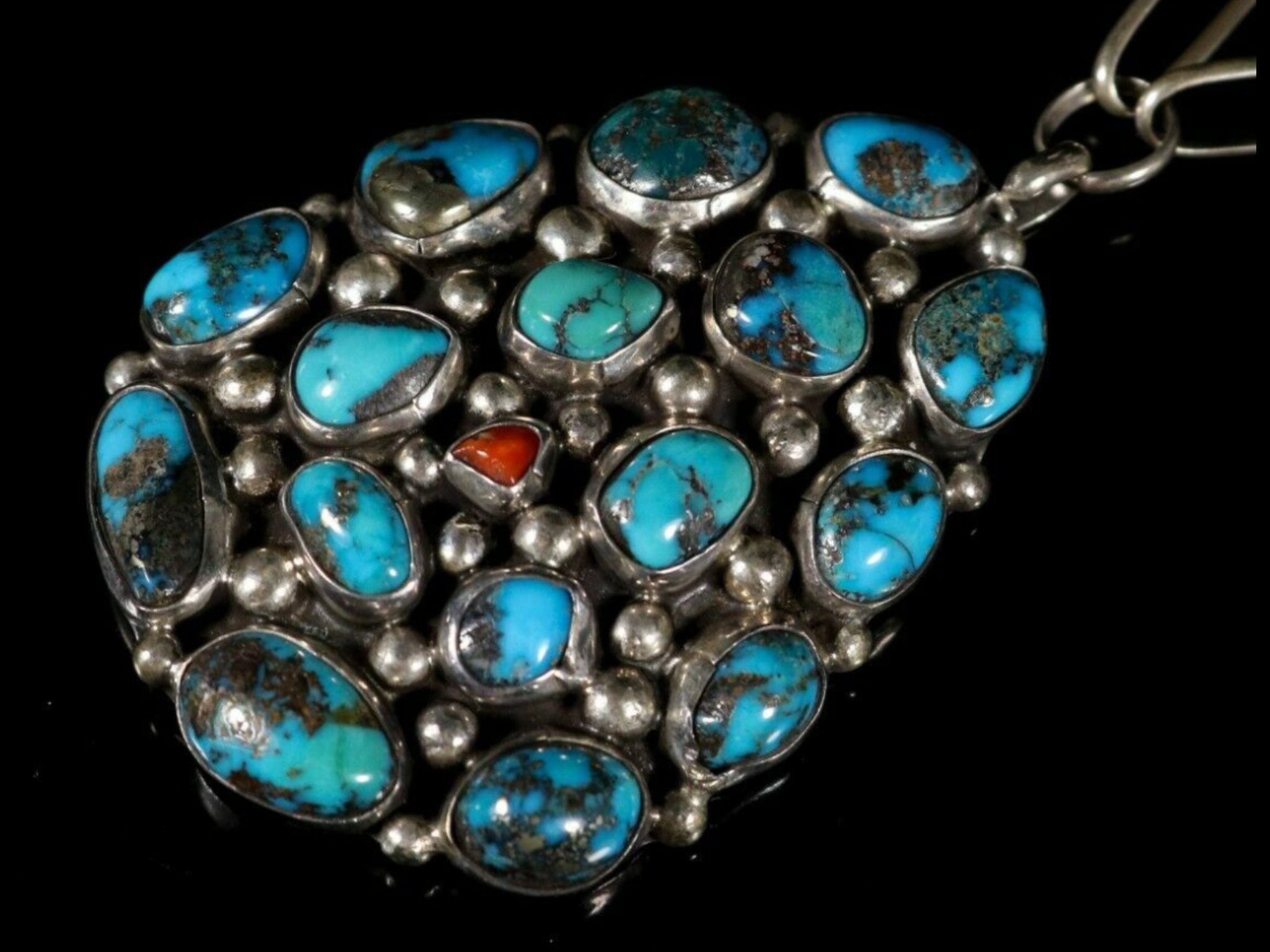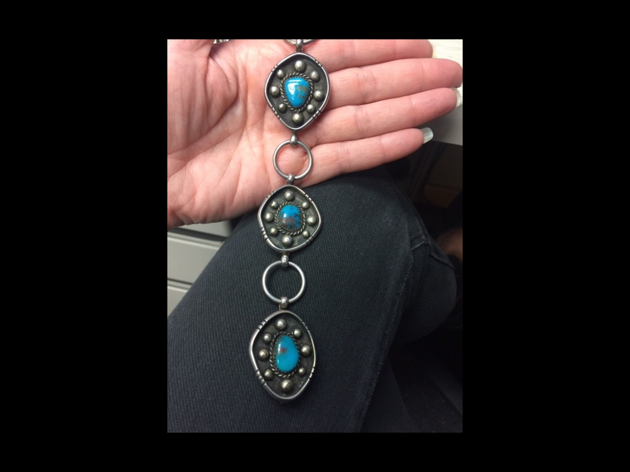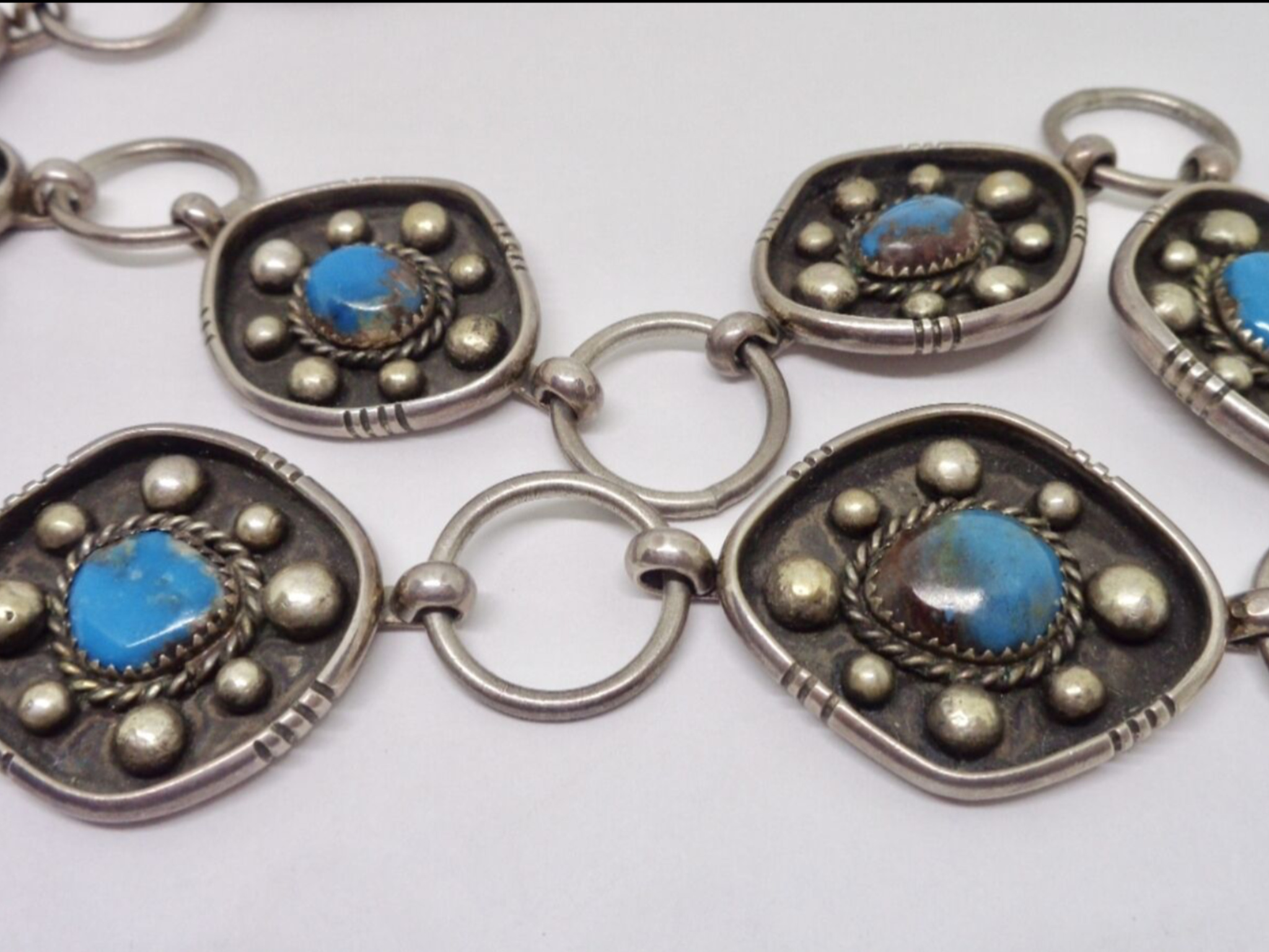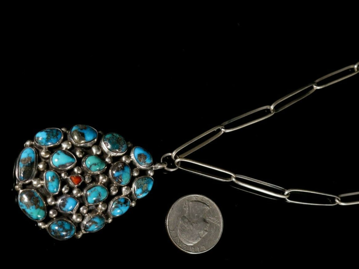 @Jason thanks for confirming the Turquoise as Bisbee. Below is what most of the stones resemble. I am attaching another pendant that I have that was sold as Bisbee but this one I’m not very confident actually is. It is hallmarked with what appears to be two capital TT’s but I couldn’t find anything on it. If you have any input on this pendant that would be great. How do you tell if the chain is handmade? Sorry couldn’t get the pictures to load in correct order.
