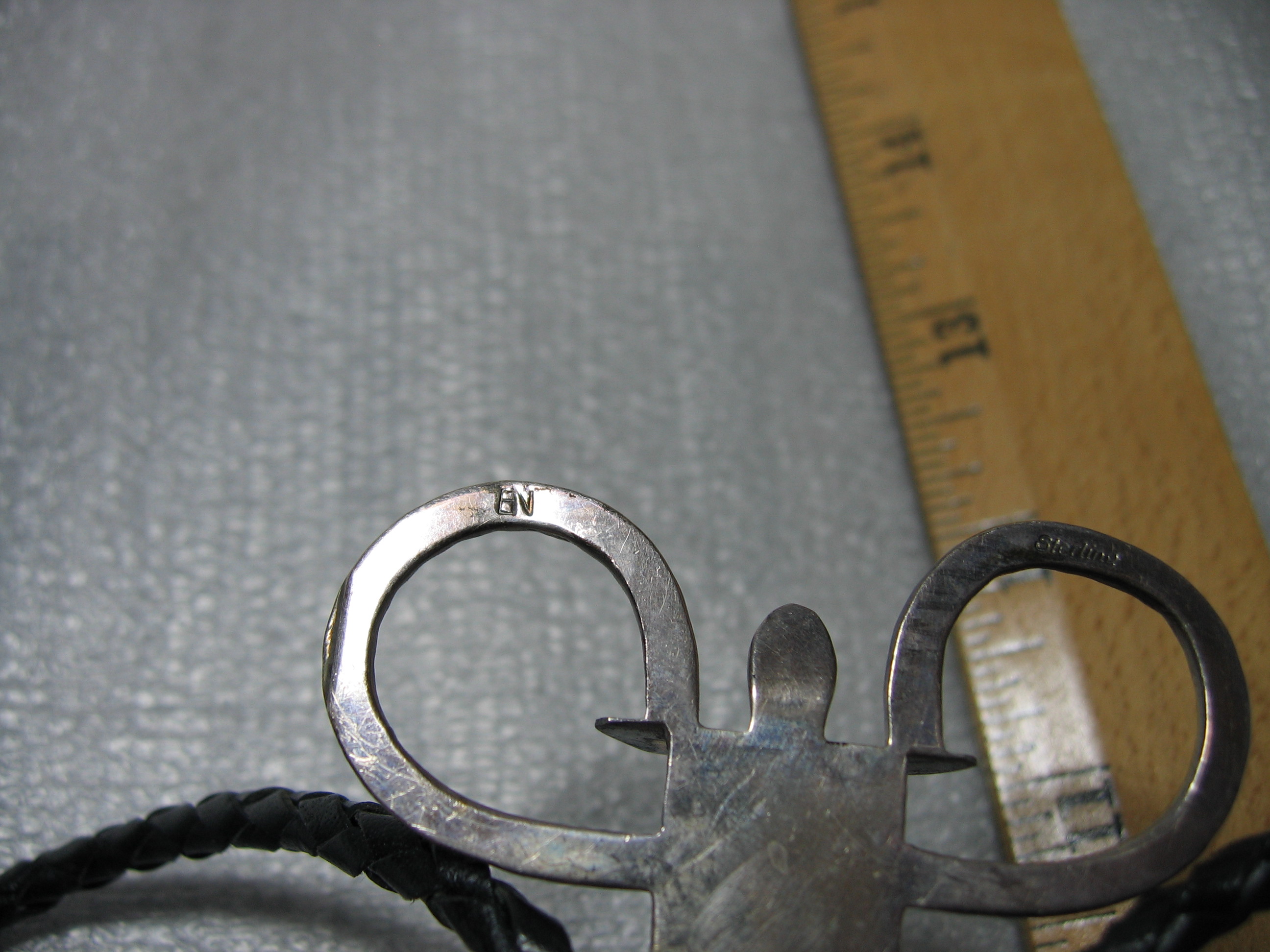I looked through one of the hallmark books for EN. Came across a name Ervin Nakai and did a google search. https://www.ebay.com/itm/Navajo-Old-Pawn-Sterling-Silver-Kachina-Mask-Eagle-BOLO-TIE-Native-Made-in-USA-/292764505263?oid=382560716420 Not sure what I think. The listing doesn’t give a name but the styles are similar. It was a dead end here.