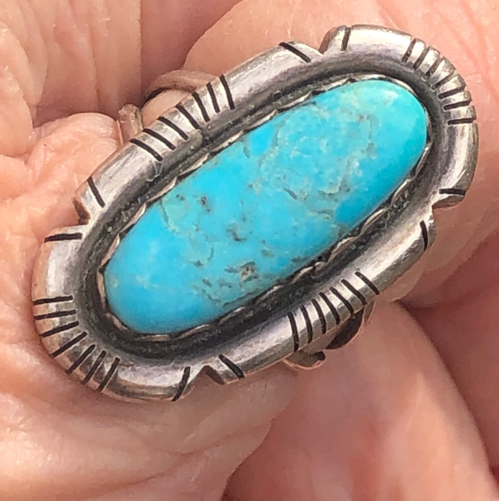 Wondering about this pale turquoise stone (ideas on mine?) and hallmark MB on this older ring. From Hougarts resource looks like maybe Milton Burnside or Marco Begaye. Leaning Burnside because of the B being larger. Ideas?