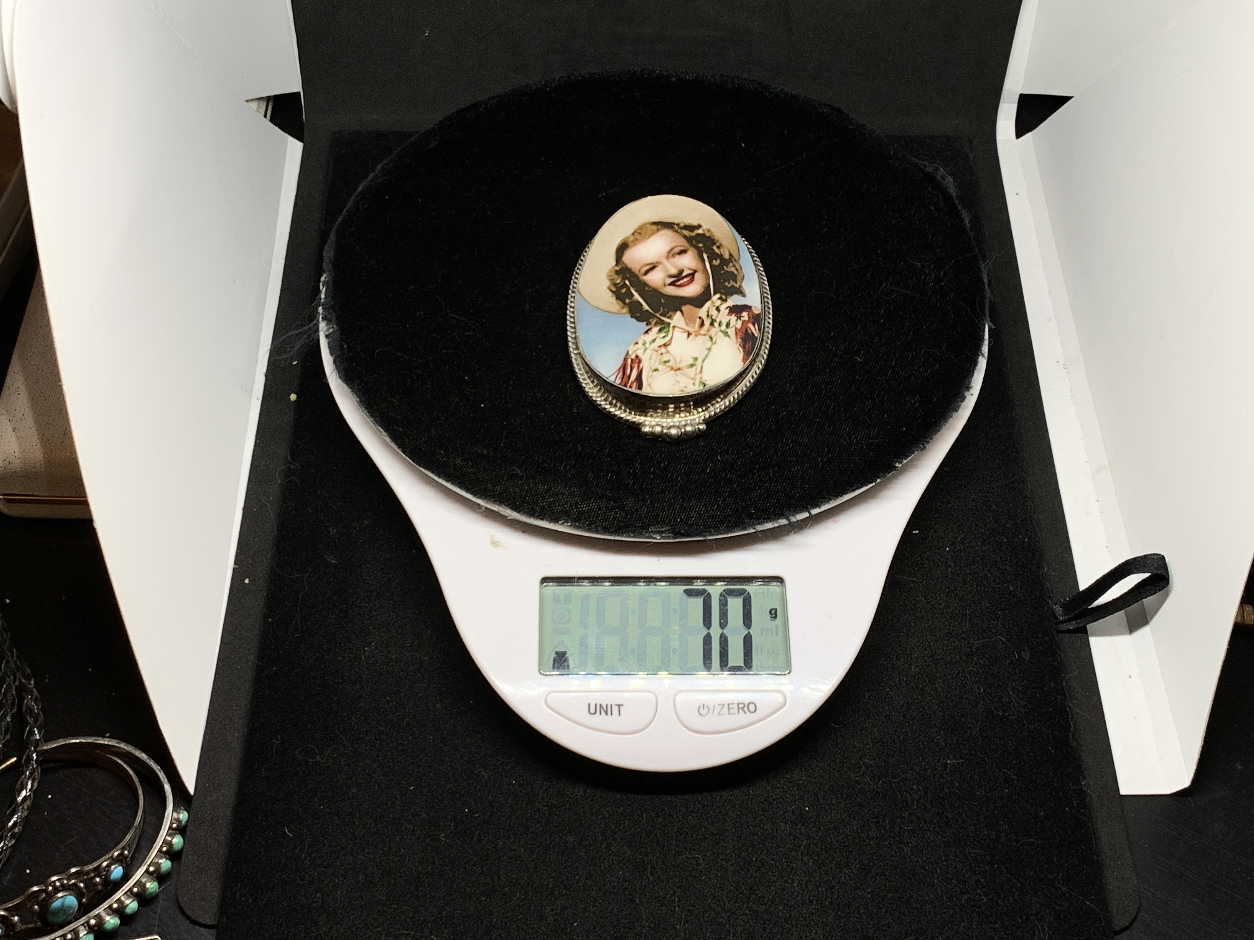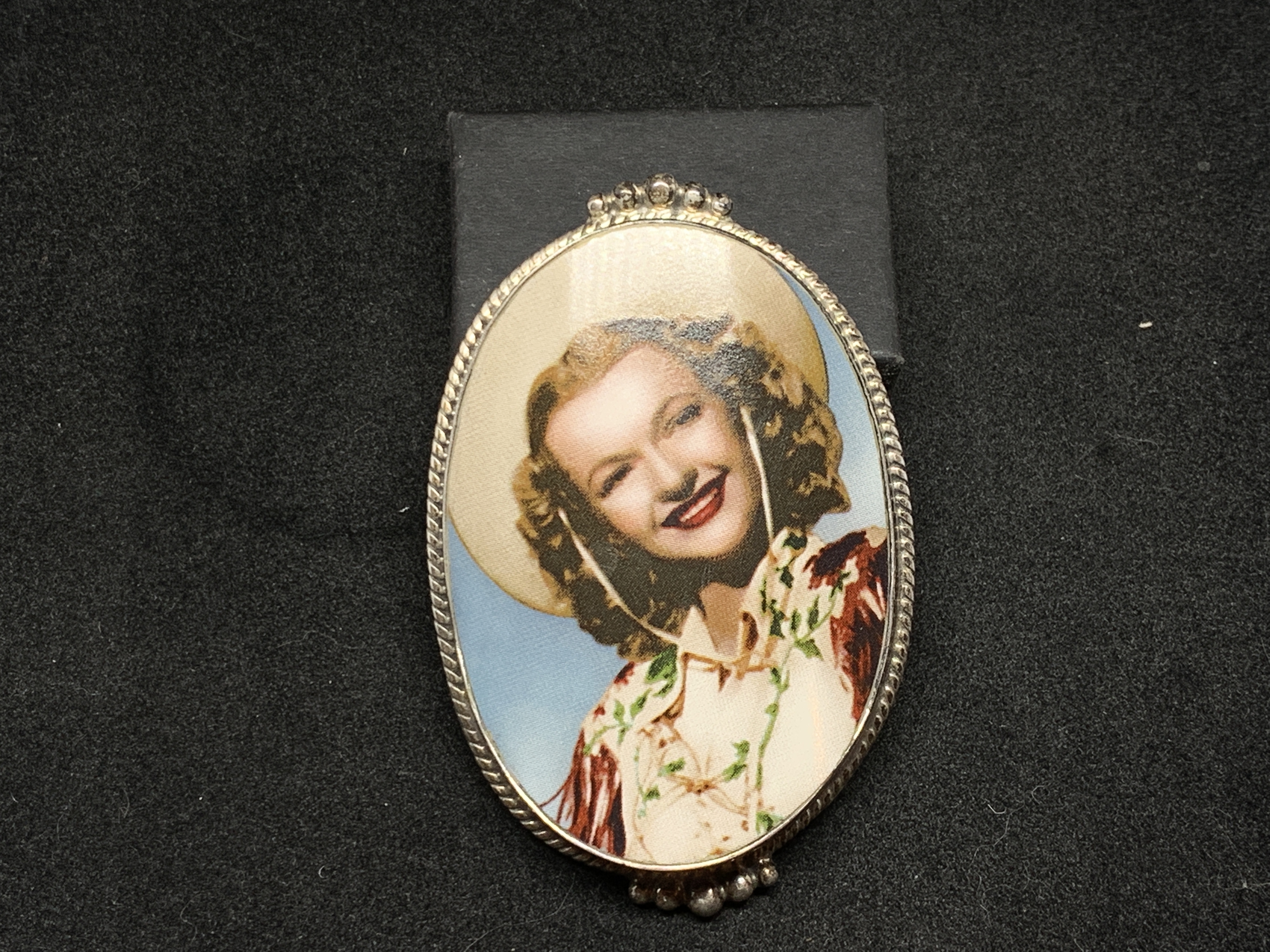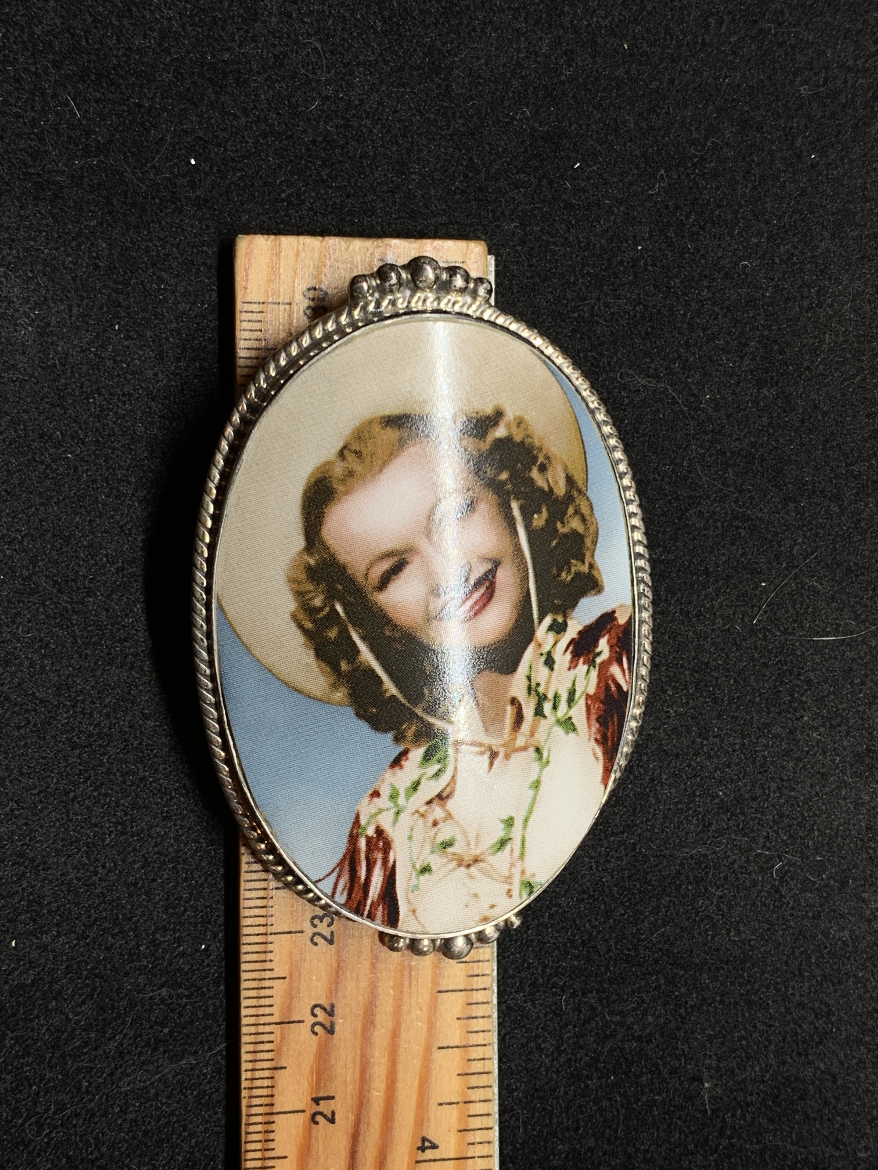 The crown and cross stamp really has the look that it came from “the other side of the pond” and my best guess is underneath Dales photo will be a Queen of England or some kind of royal occasion commemorative portrait.