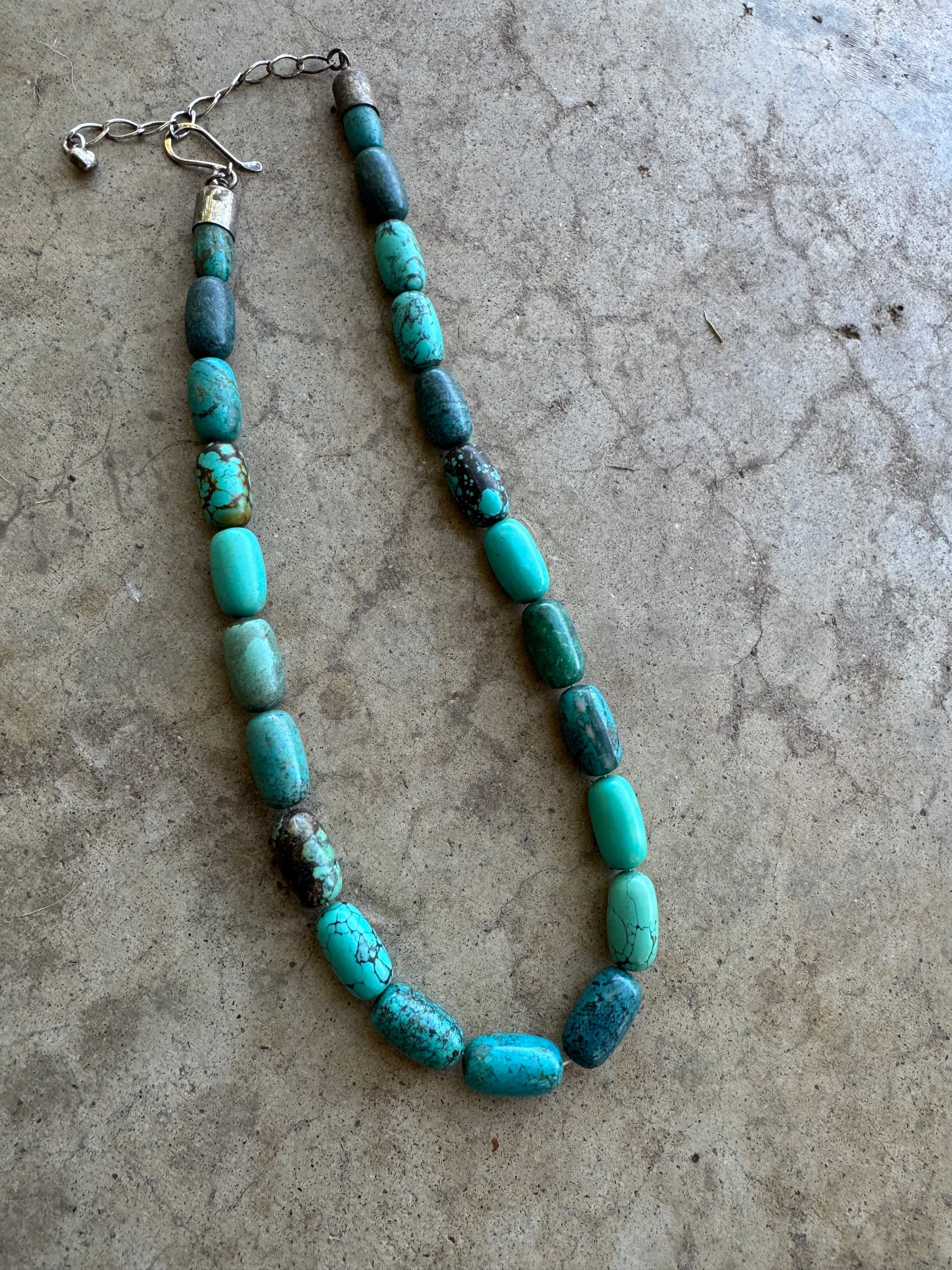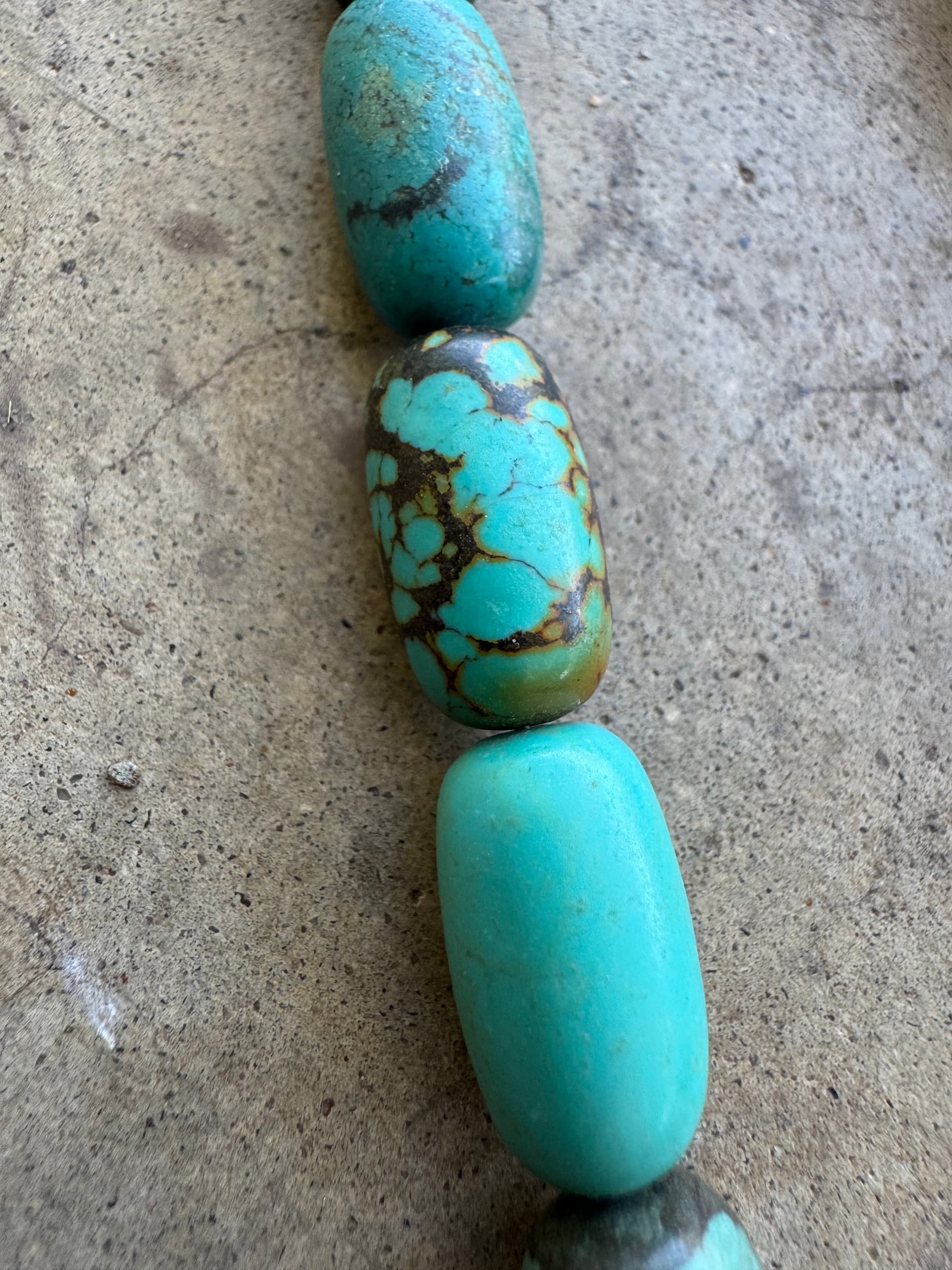 Hi! I was trying to learn more about the turquoise in this necklace. When I googled this company it suggested that the turquoise might be natural, dyed or completely synthetic. It is heavy and to me it looks like some Chinese turquoise that I have seen. But you guys are the experts! Any thoughts or comments are appreciated. Thanks!