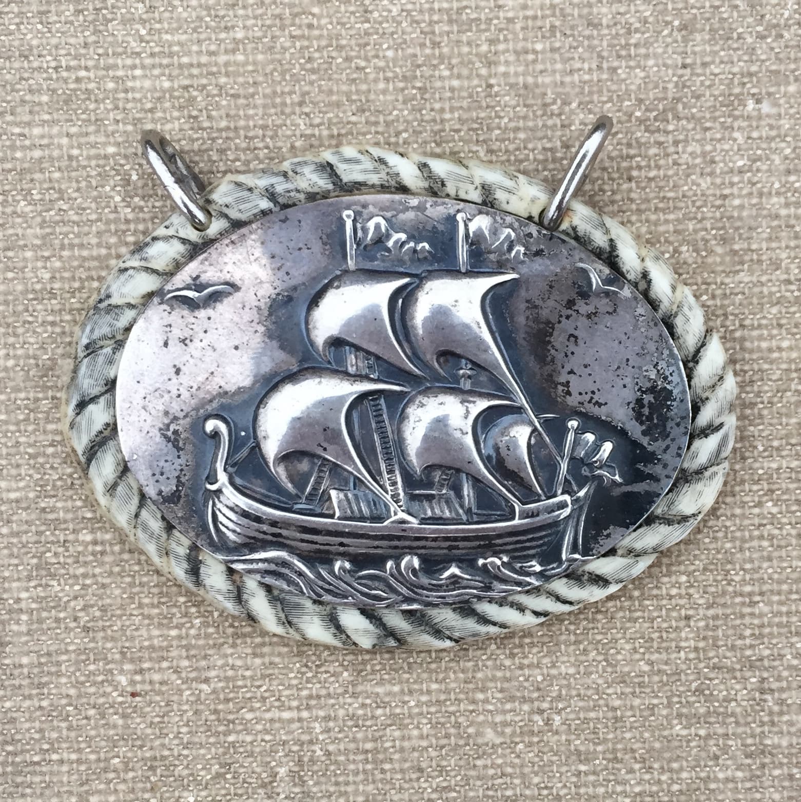 I think i found one the other day, was included in a lot that i bought. Didn’t know anything about scrimshaw until today but i’m quite fascinated by it. It tests for silver and the carved backplate seems to be whale tooth ivory.