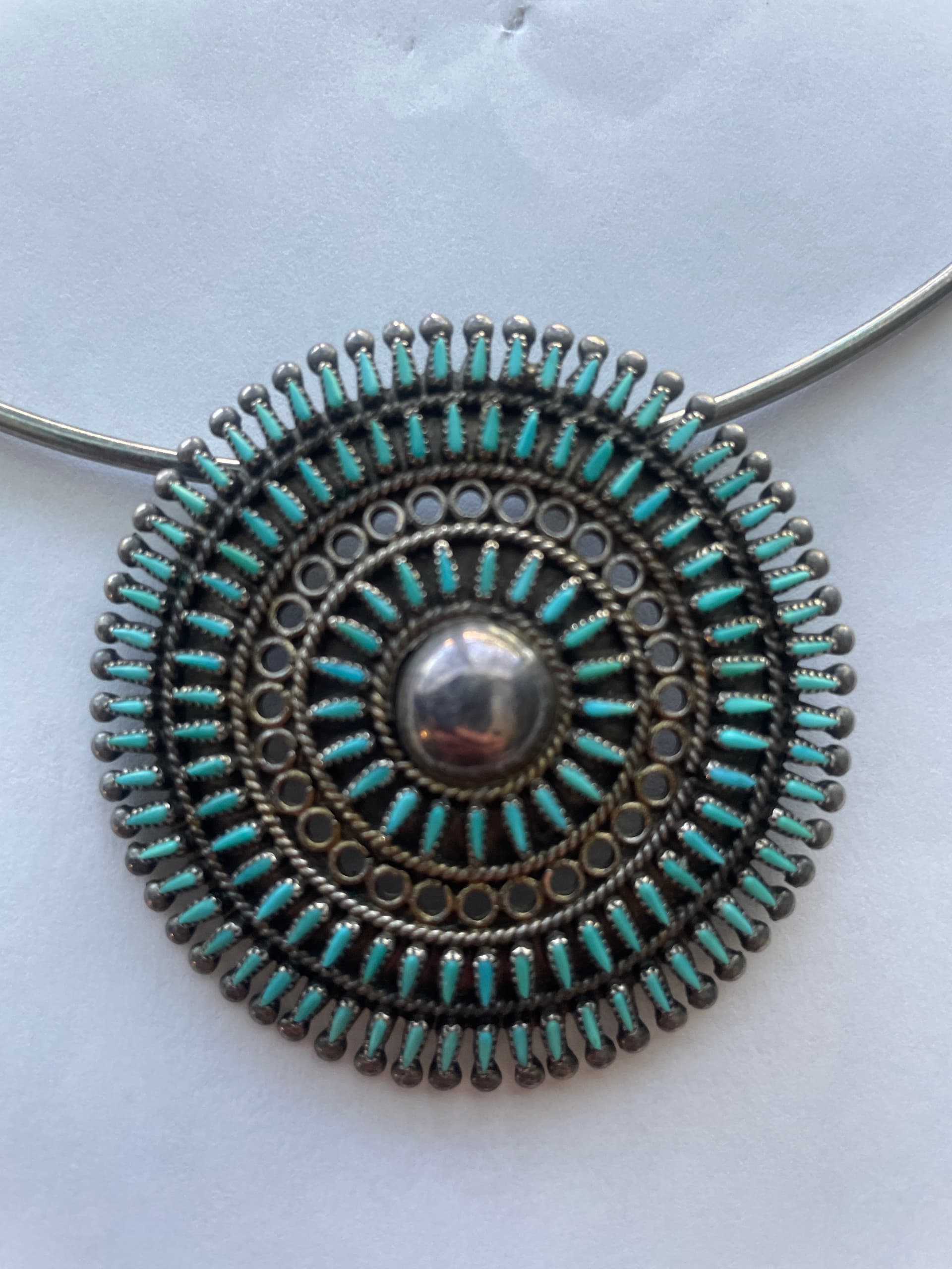 It’s a Zuni needlepoint pin/pendant, very nice quality. Here’s a thread with info on the makers; look for the post by @OrbitOrange.