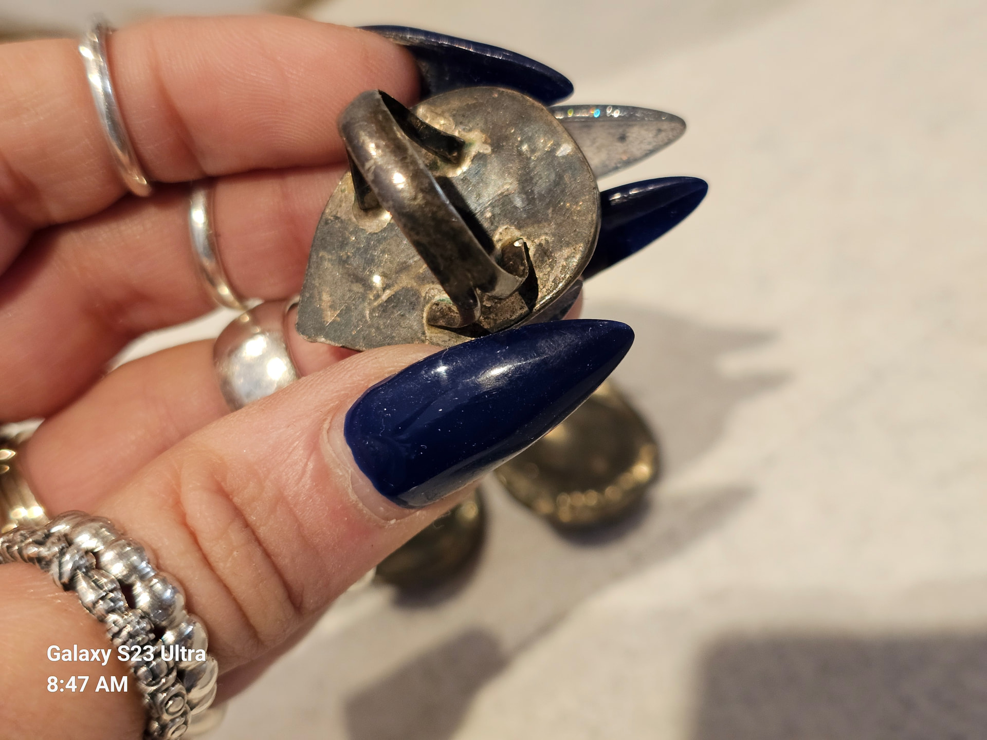 I recieved these from my mother and can’t got the life of me find any markings, I can’t even tell if it is real silver or what the turtles are made of. If anyone had any ideas, I would be grateful to learn more. Thank you. I know the pics are bad, I’m sorry.