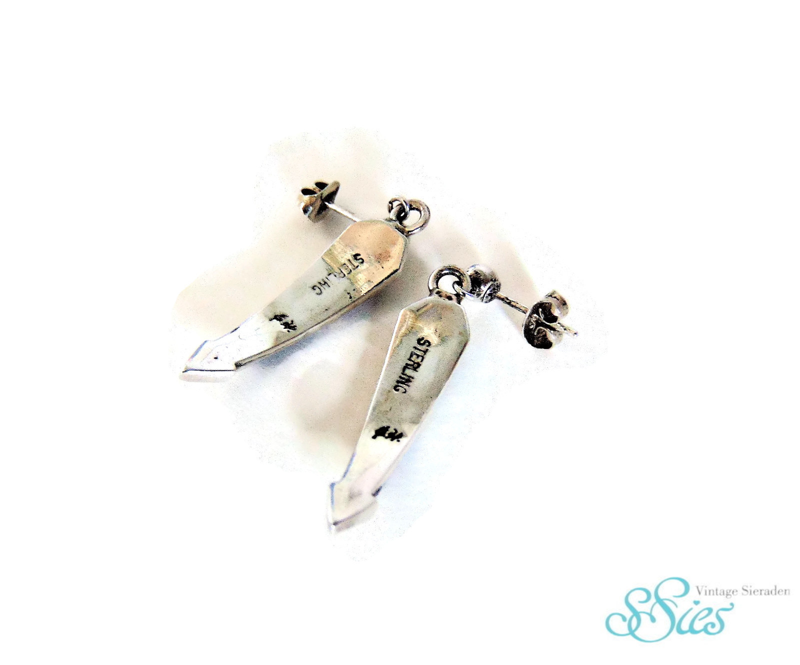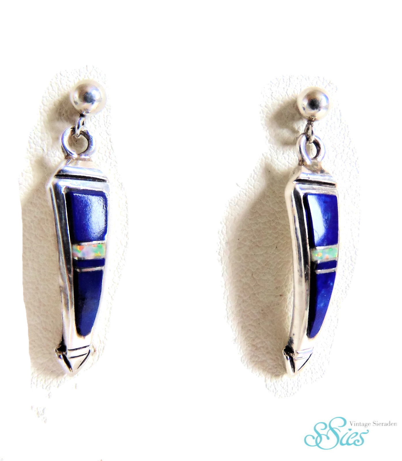 They are Navajo made and inlaid by Ervin Hoskie. I did a google search, https://www.google.com/search?biw=1680&bih=887&tbm=isch&sa=1&ei=fMLbWsr3CeKYjwTMi6WoAQ&q=ervin+hoskie+navajo&oq=ervin+hoskie+navajo&gs_l=psy-ab.3..0i24k1.734540.738086.0.738400.19.11.0.8.8.0.143.1238.0j11.11.0....0...1c.1.64.psy-ab..0.19.1402...0j0i67k1j0i30k1j0i5i30k1j0i8i30k1.0.bsT7OyfiaXE#imgrc=o5aGKNnaJX_YGM: you might come across the earrings.